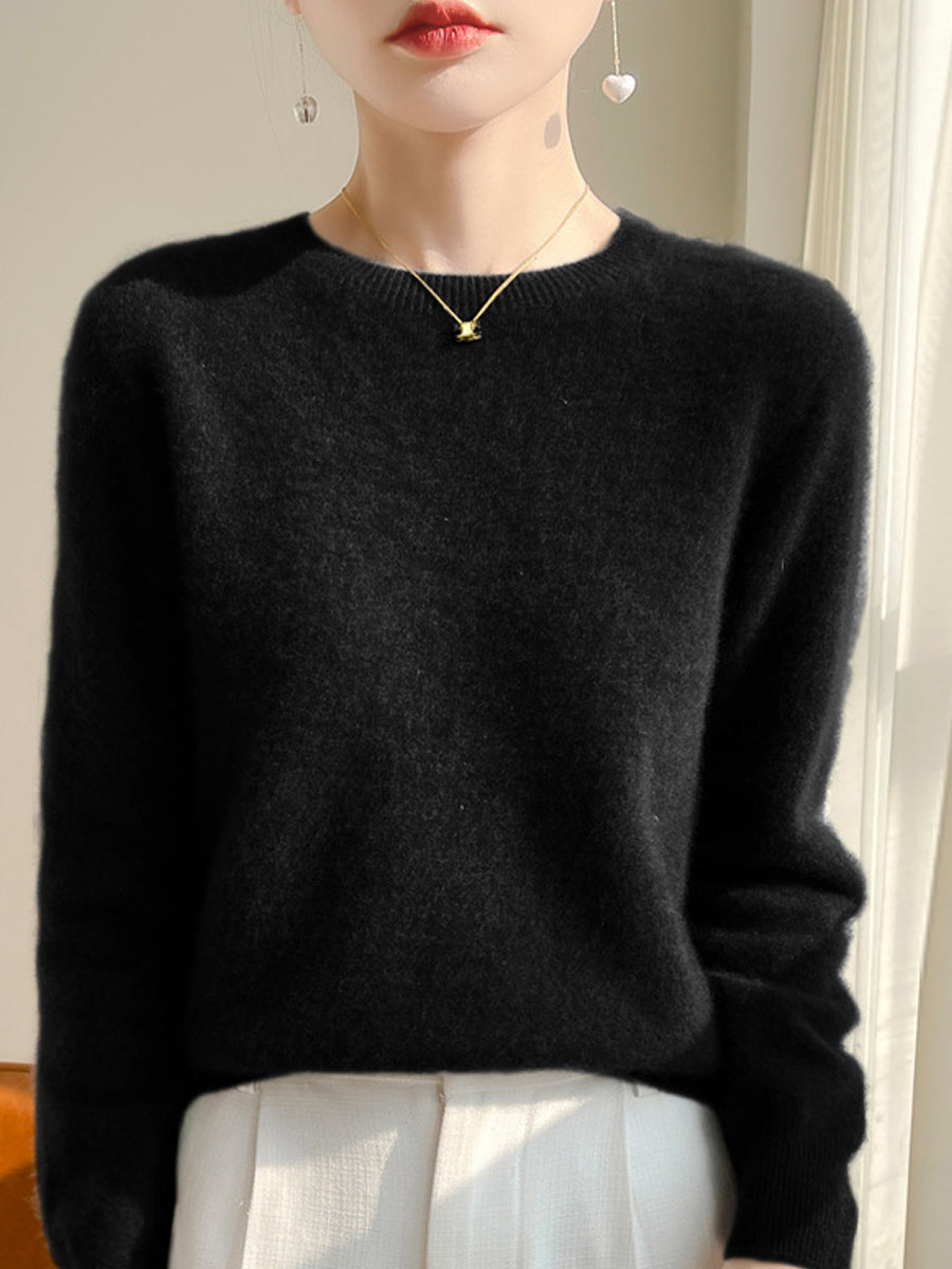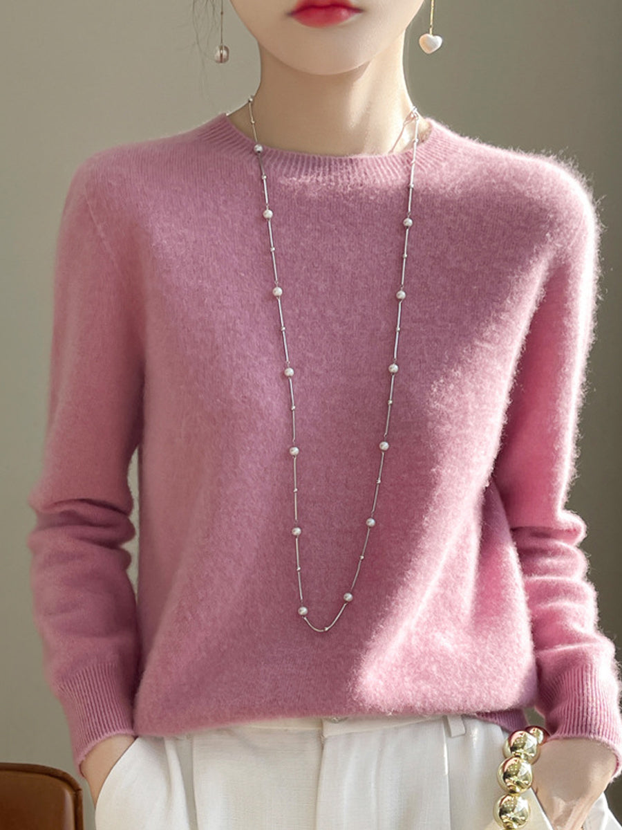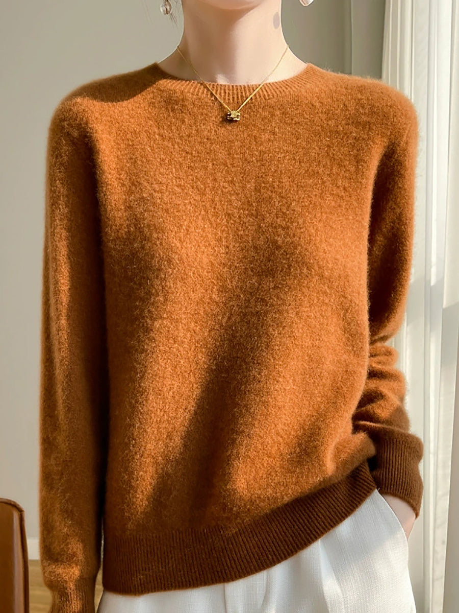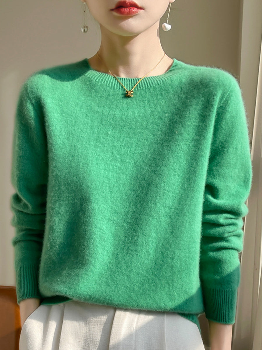 Suéter casual de otoño con cuello redondo y color puro para mujer
