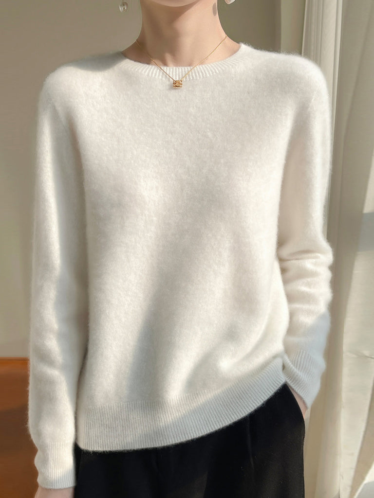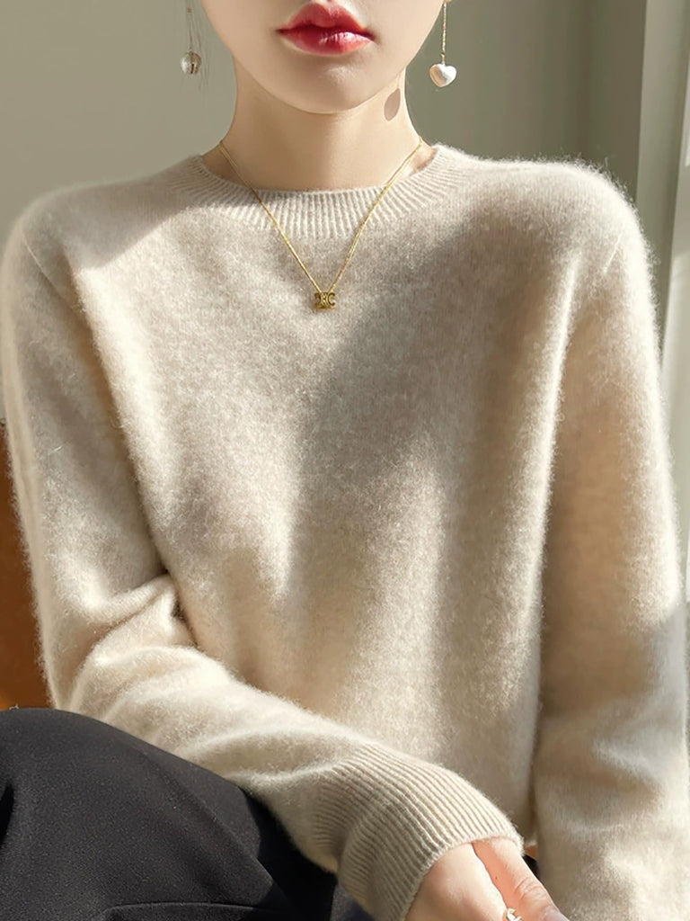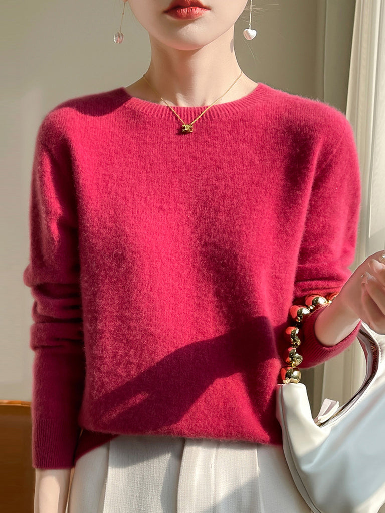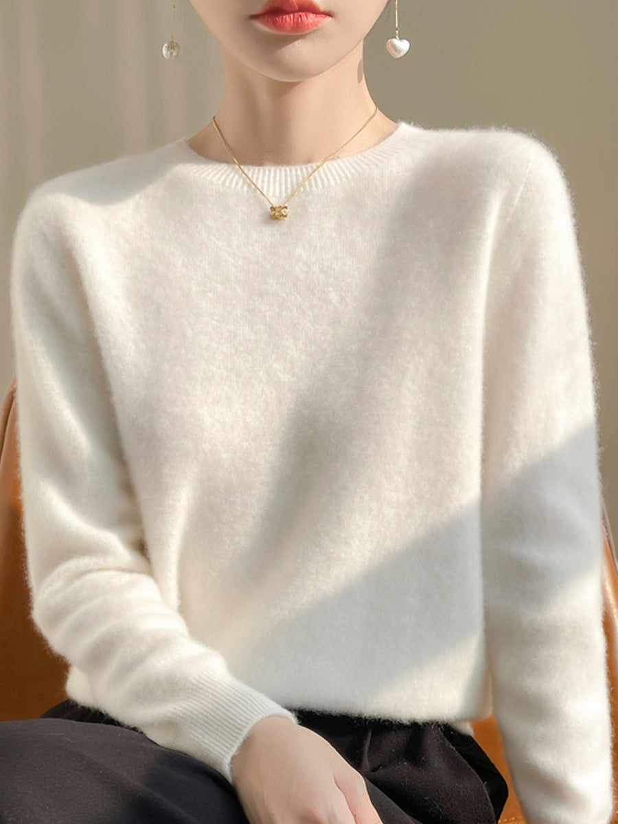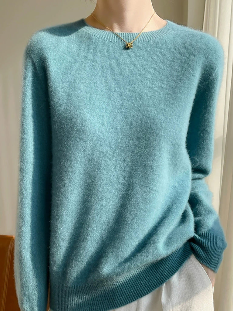 Suéter casual de otoño con cuello redondo y color puro para mujer
