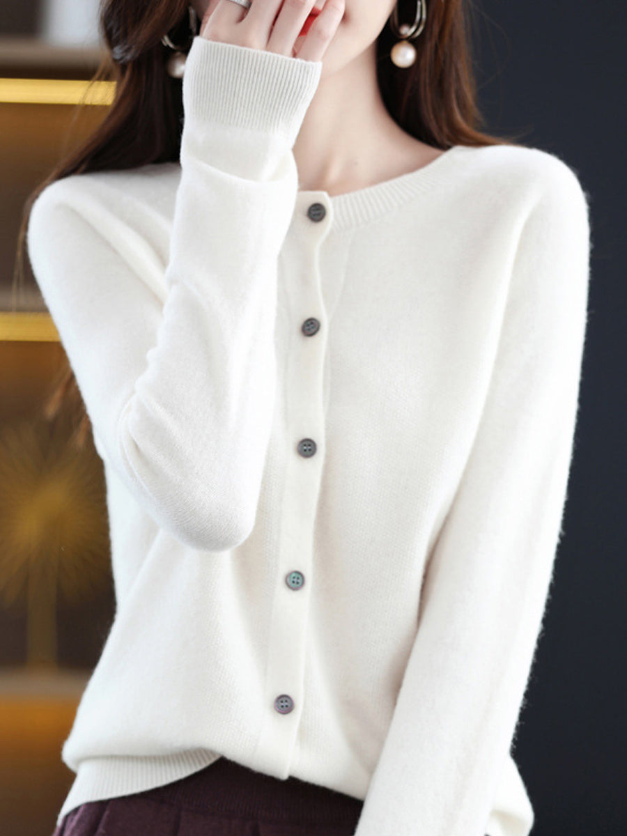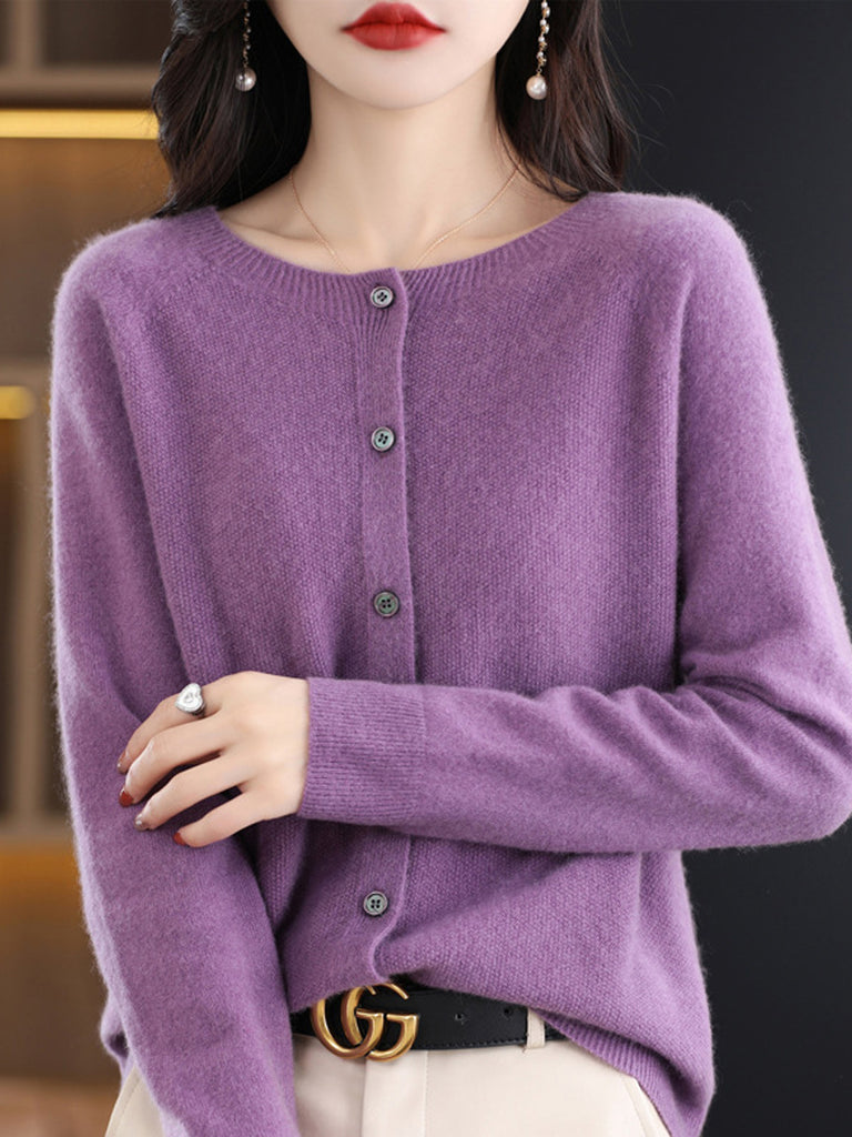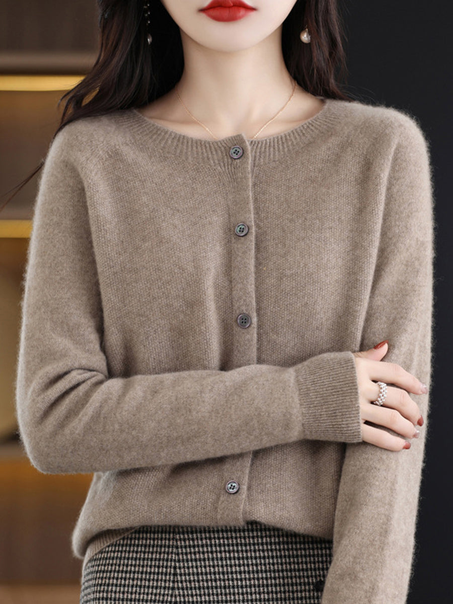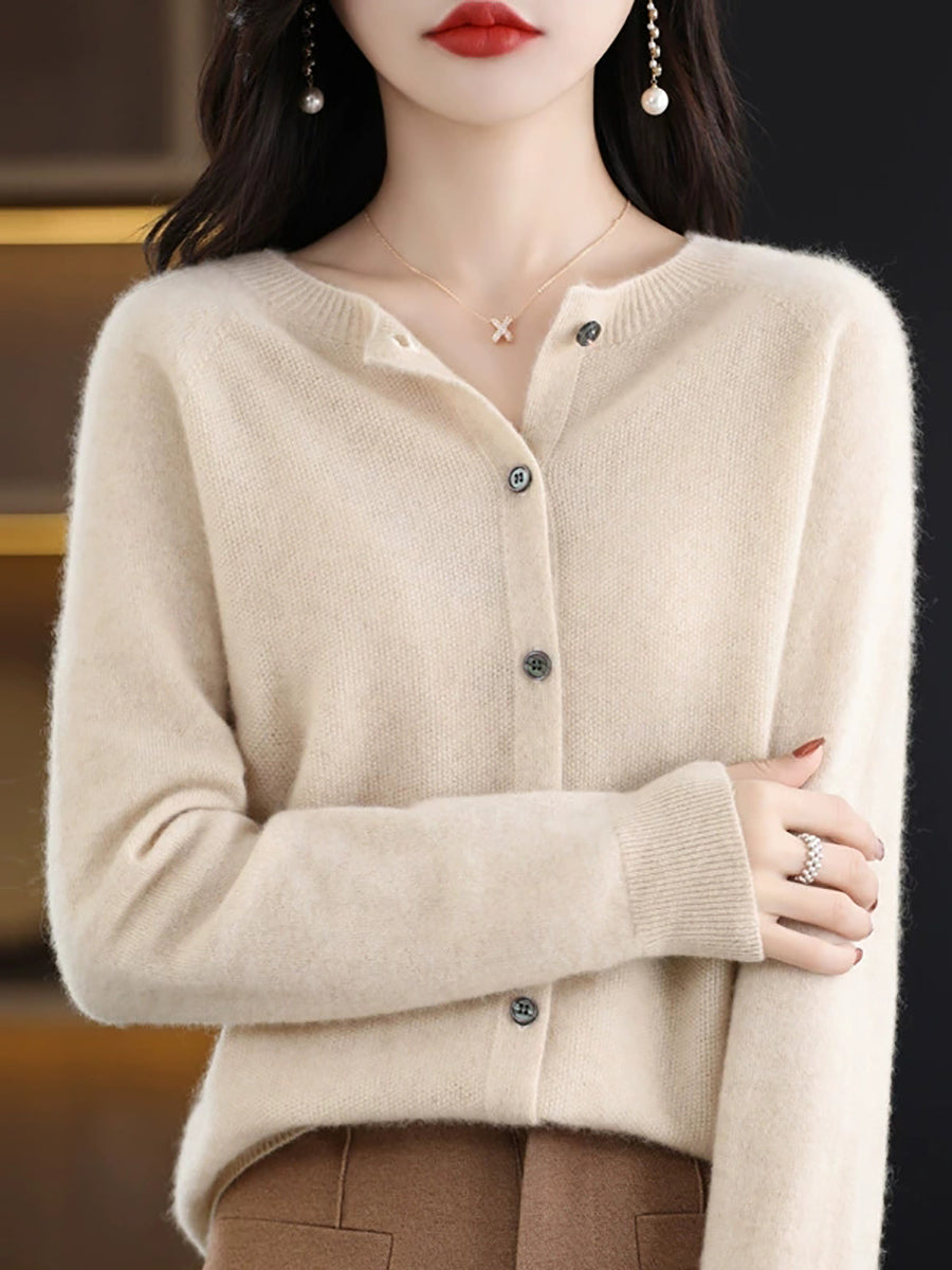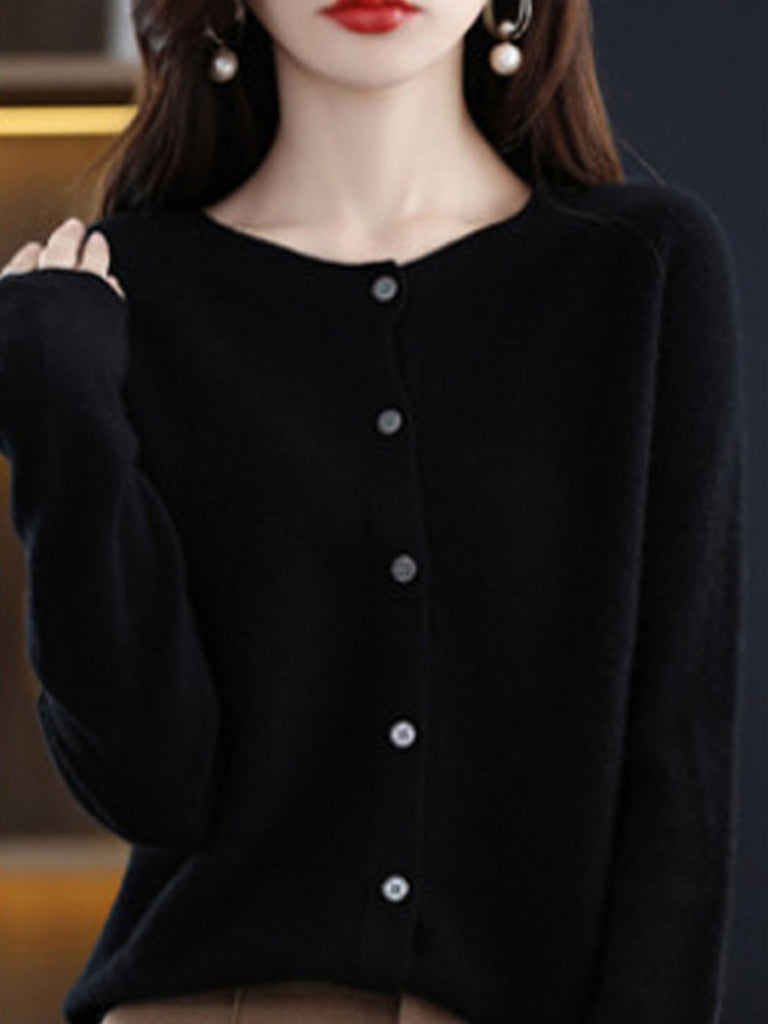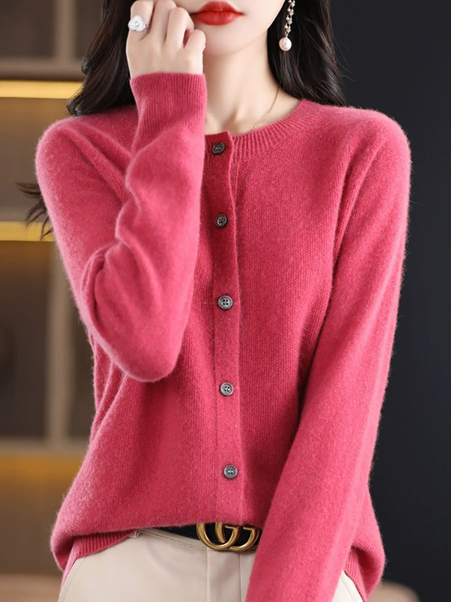 Suéter de lana de cuello redondo de color liso para mujer, estilo casual de otoño