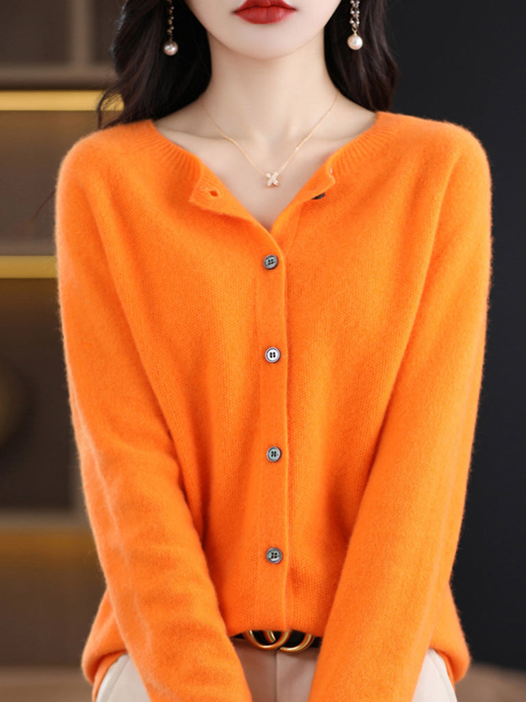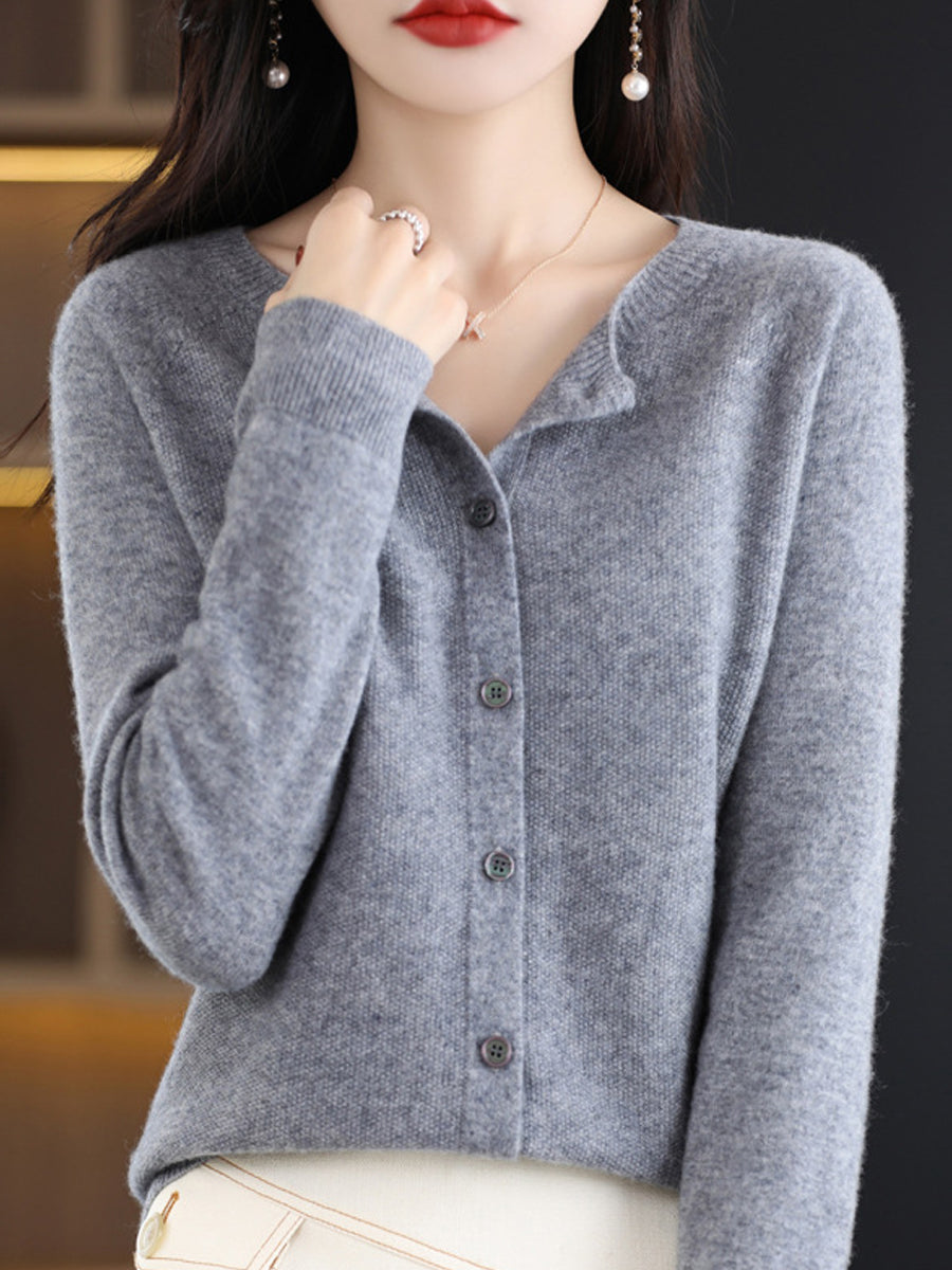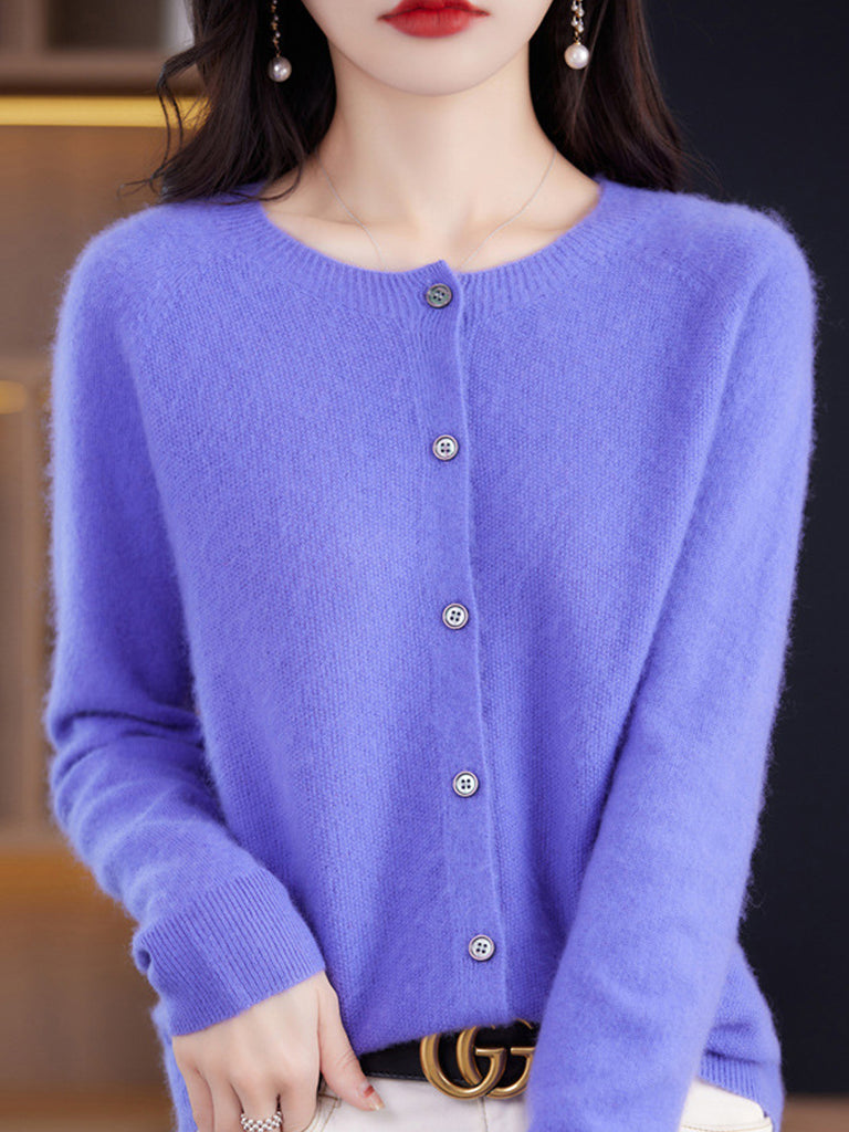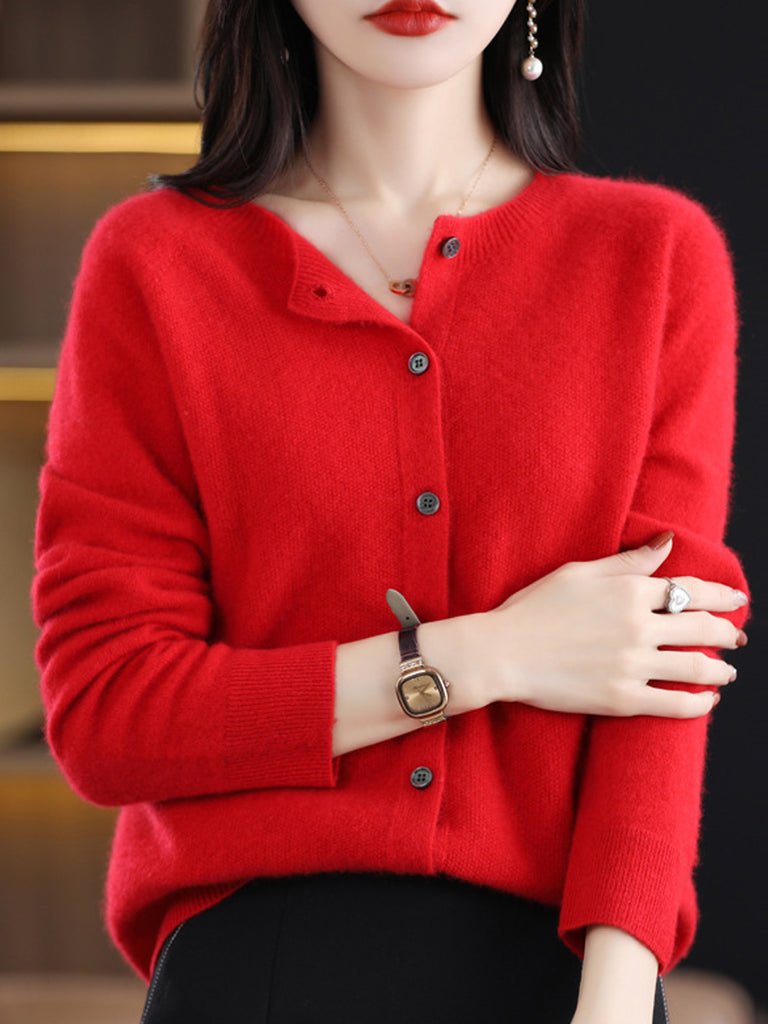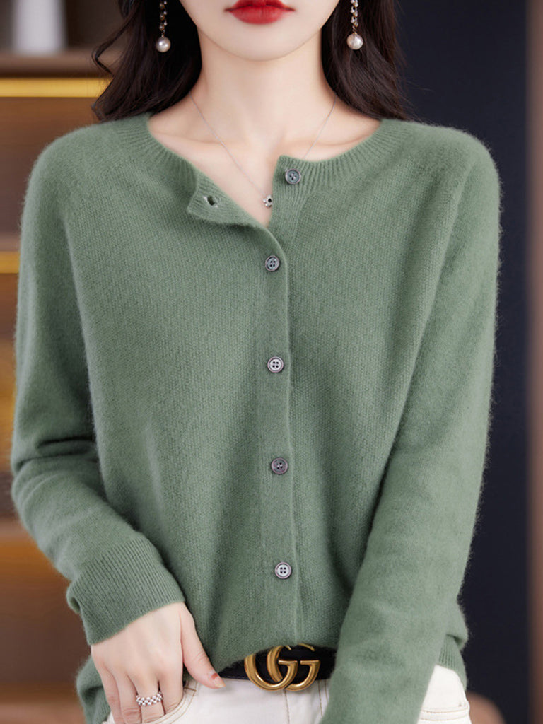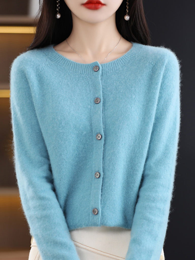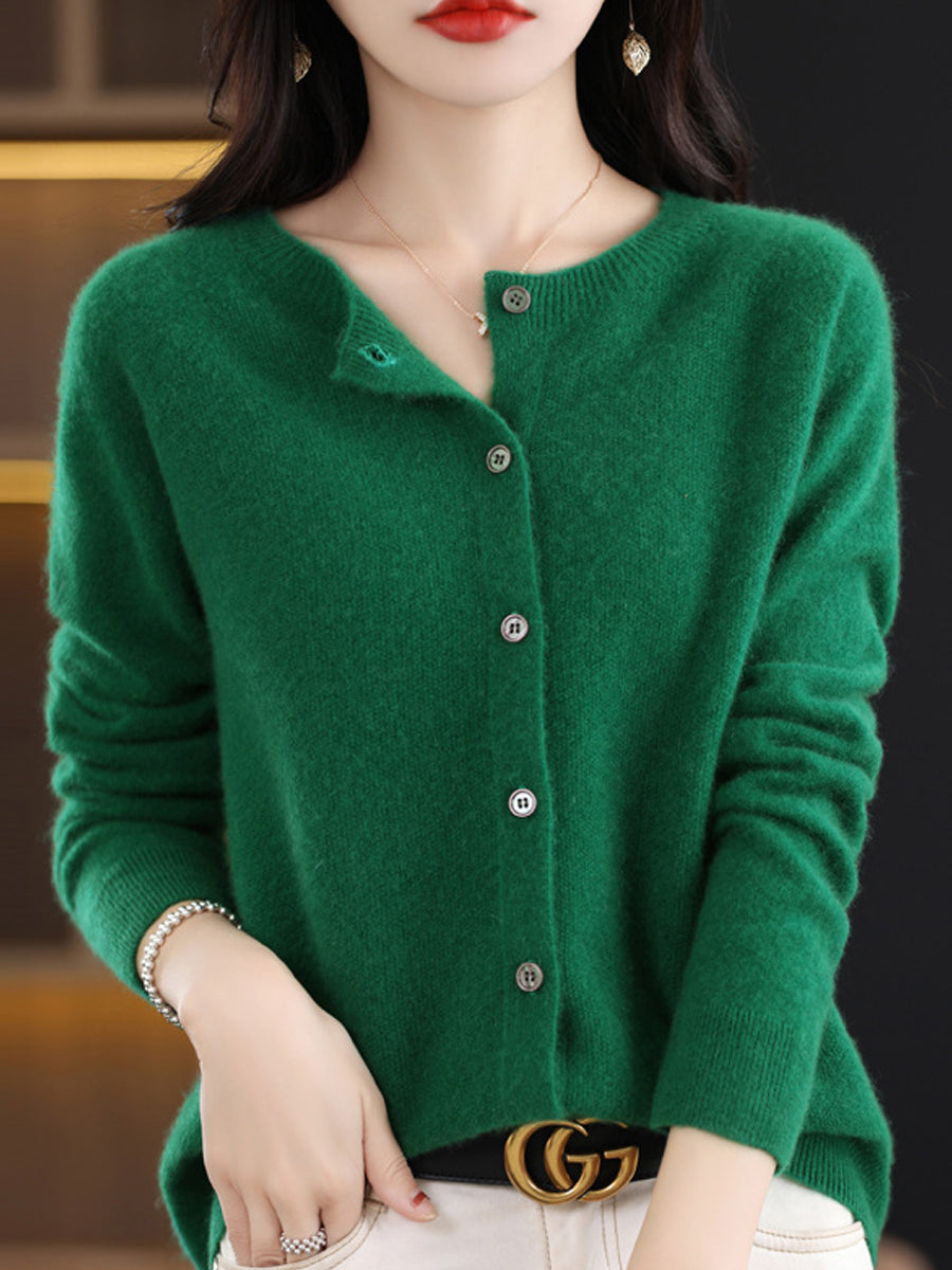 Suéter de lana de cuello redondo de color liso para mujer, estilo casual de otoño