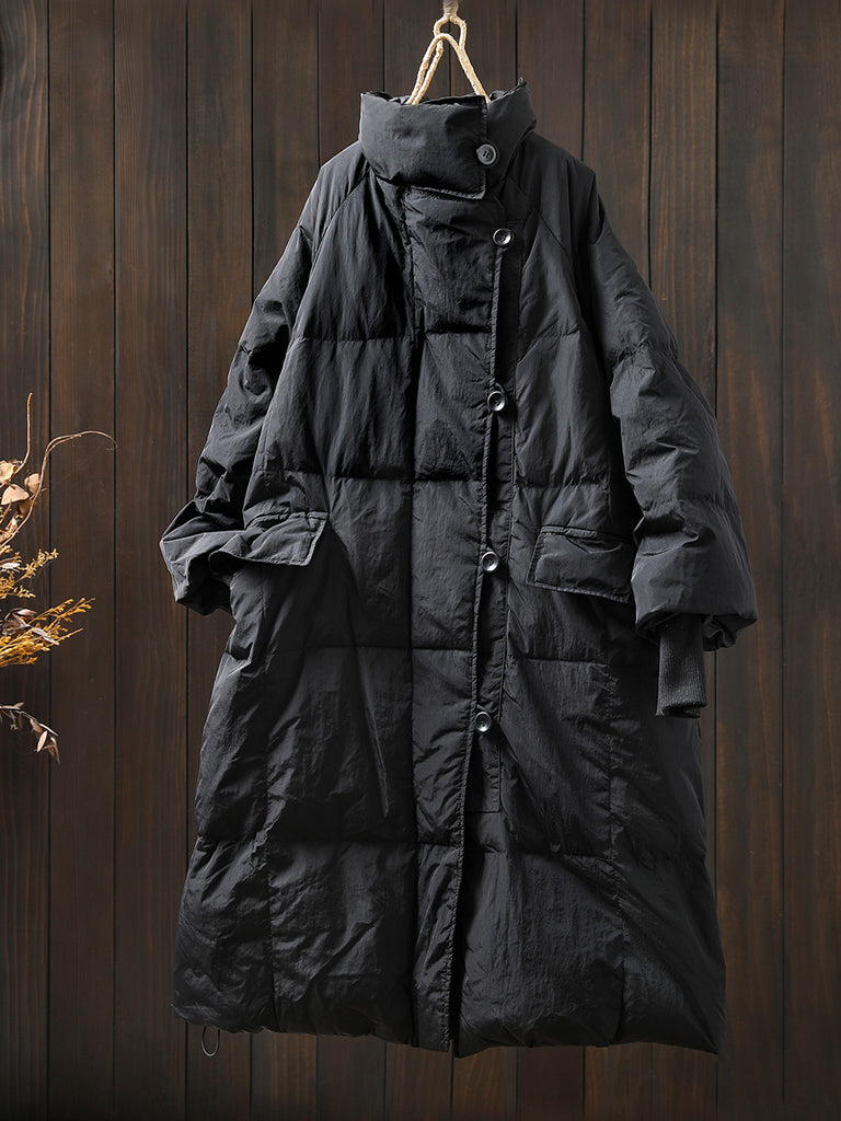 Abrigo de plumón con cuello alto de color puro informal de otoño para mujer