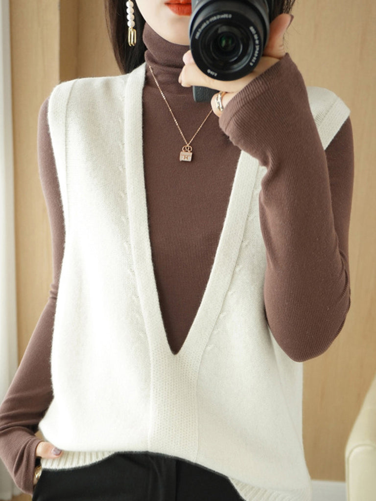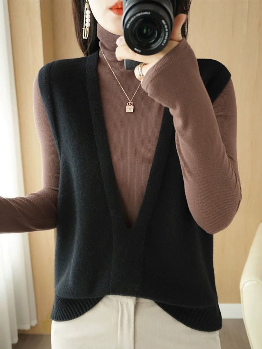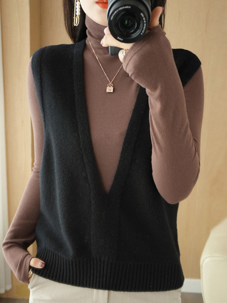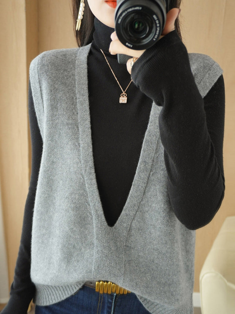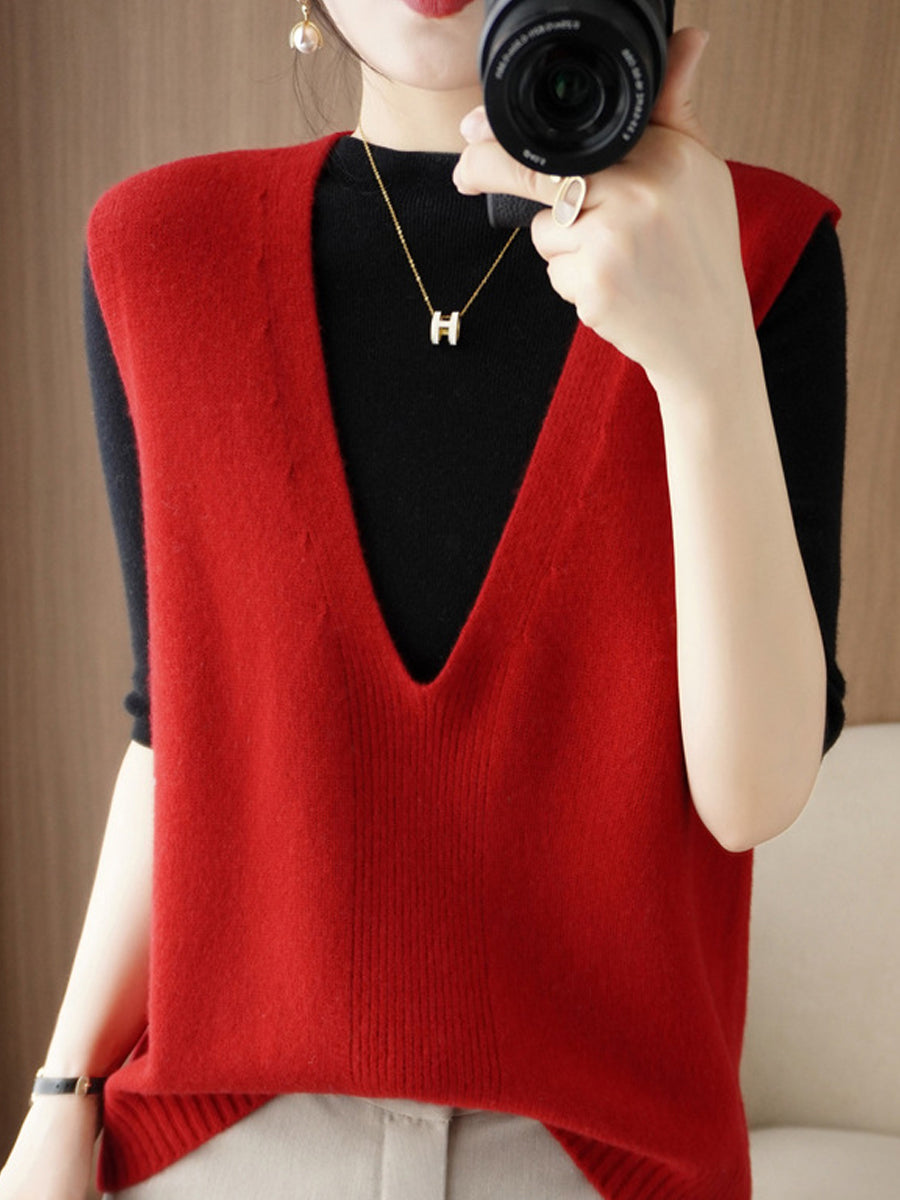 Chaleco de punto con cuello en V de color puro informal de otoño para mujer