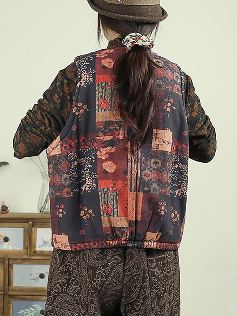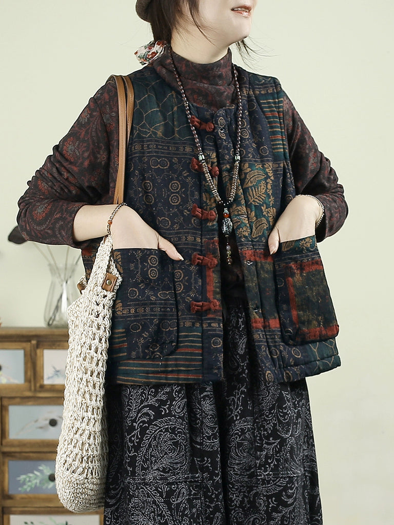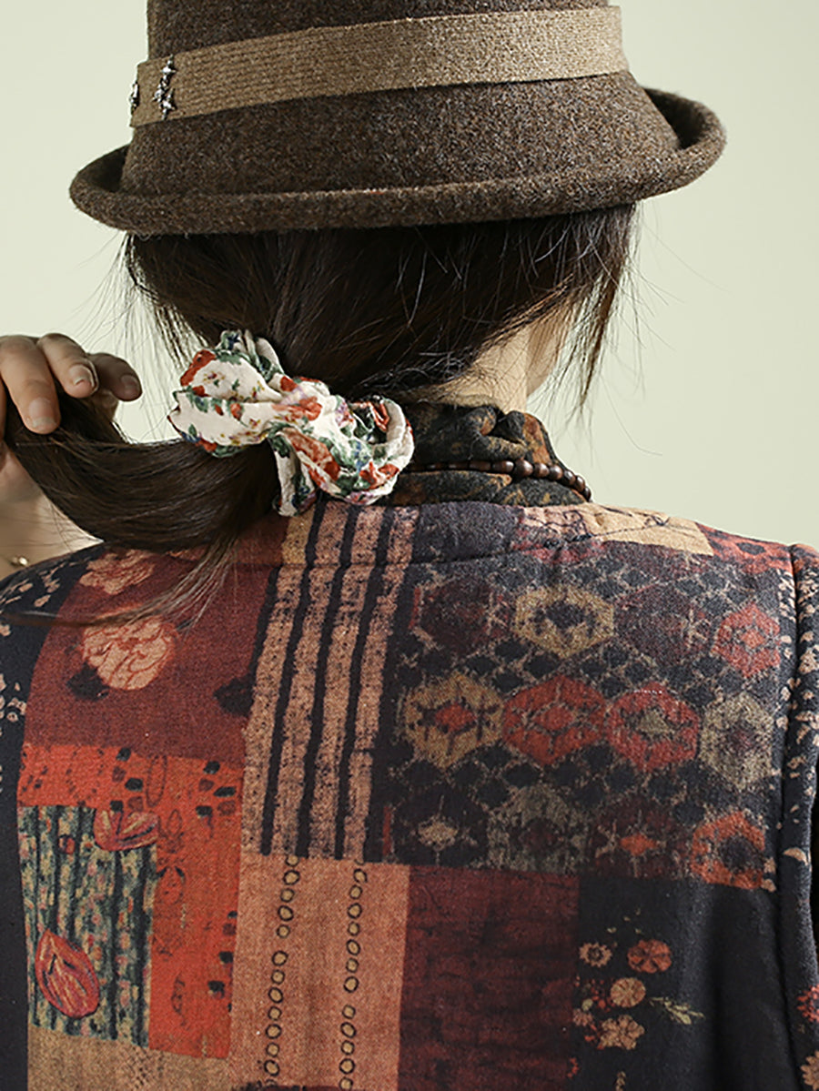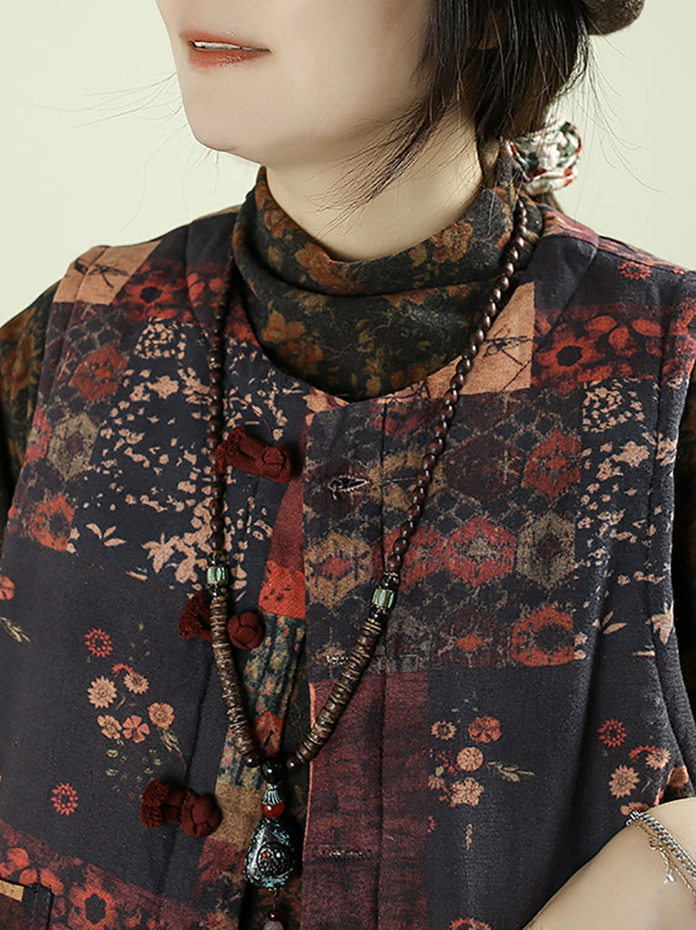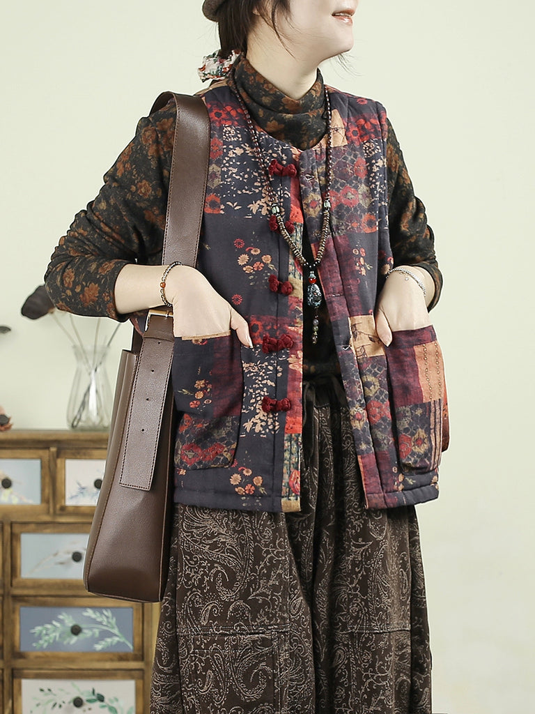 Chaleco acolchado con patchwork de flores étnicas de otoño para mujer