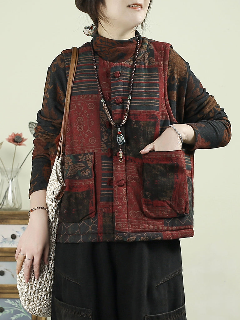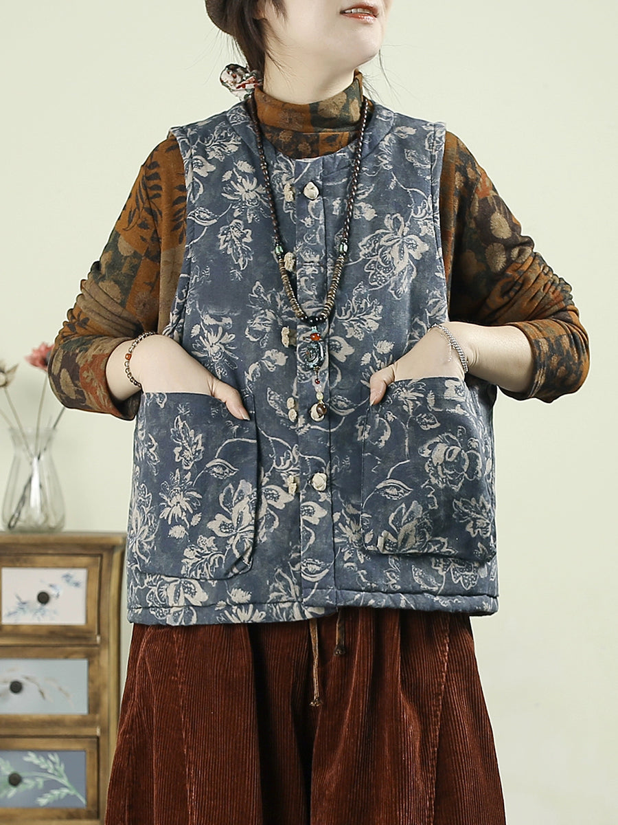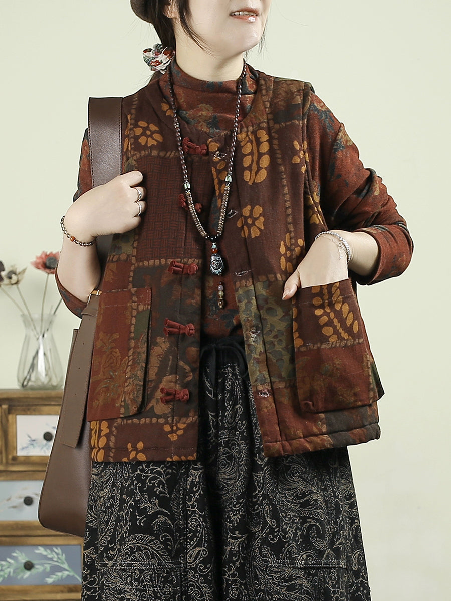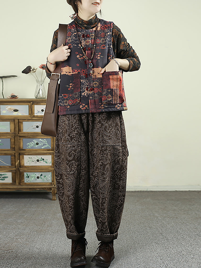 Chaleco acolchado con patchwork de flores étnicas de otoño para mujer