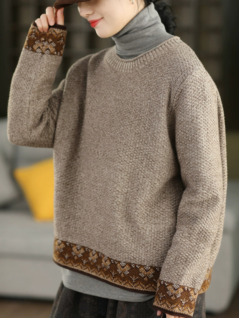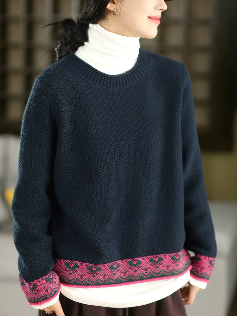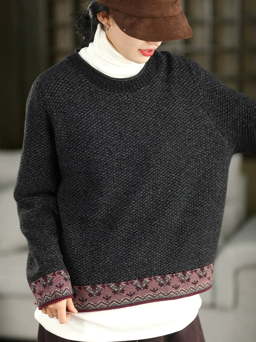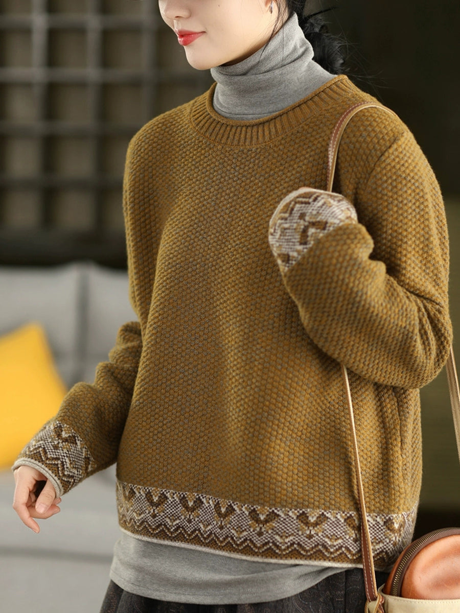 Suéter étnico de jacquard con cuello redondo para mujer