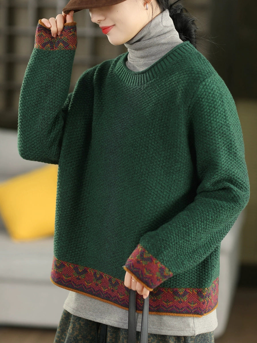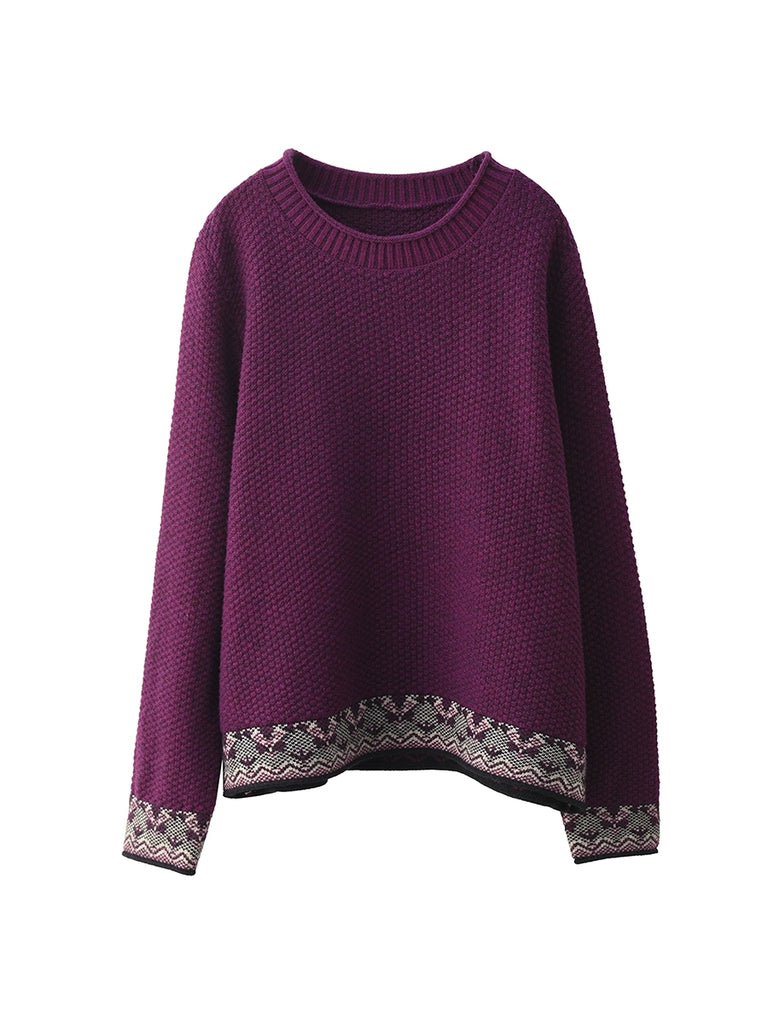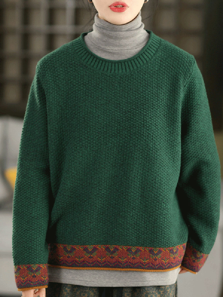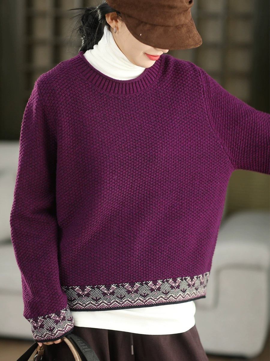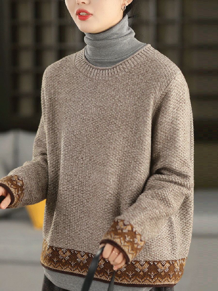 Suéter étnico de jacquard con cuello redondo para mujer