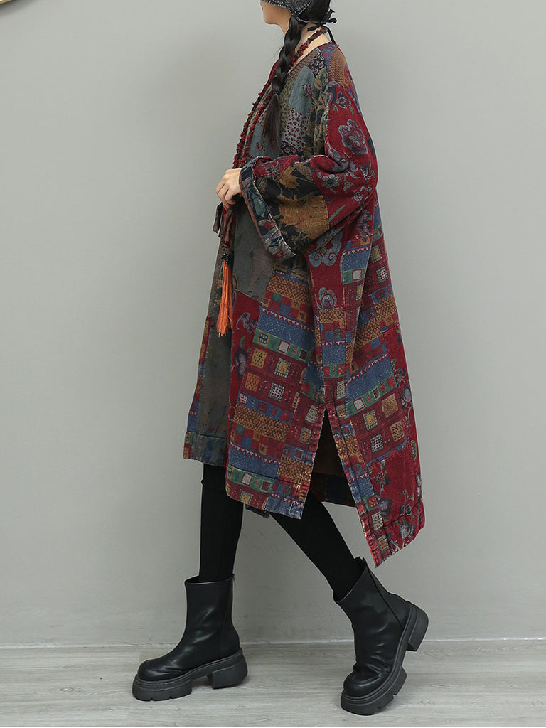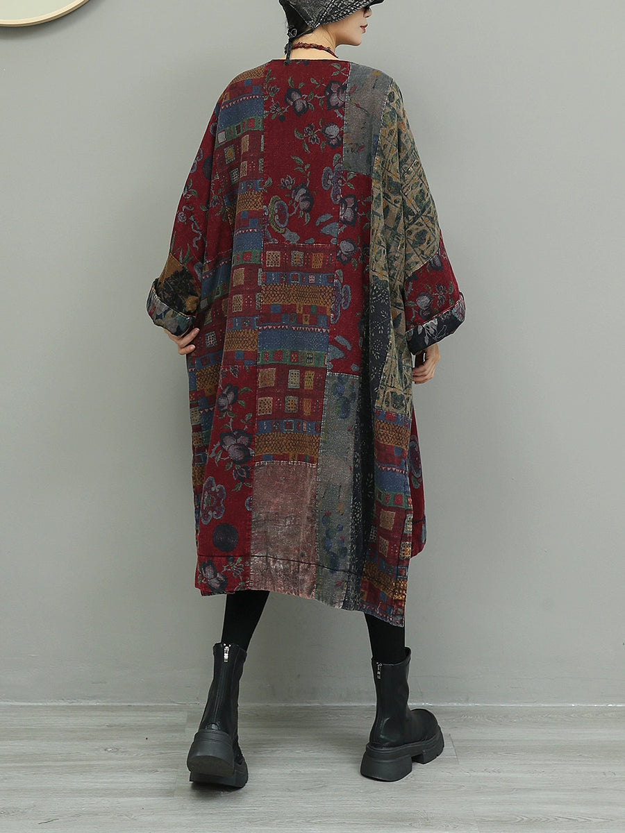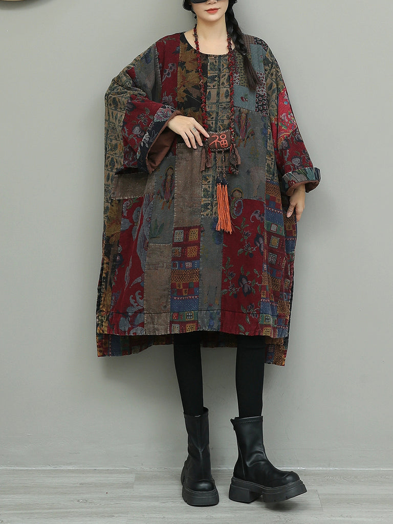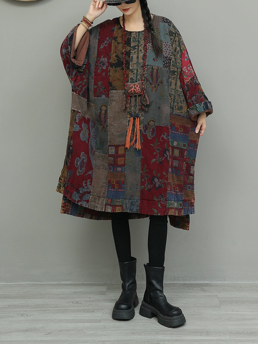 Vestido de algodón con patchwork y flores de otoño para mujer