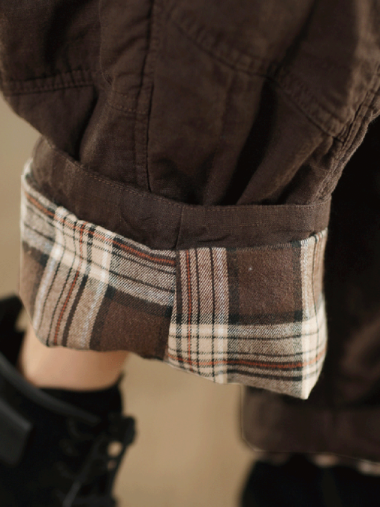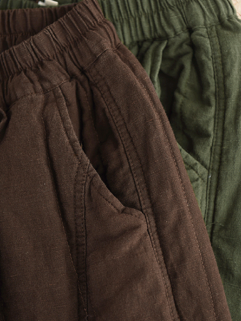 Pantalones rectos acolchados de lino 100 % de color puro para mujer de otoño