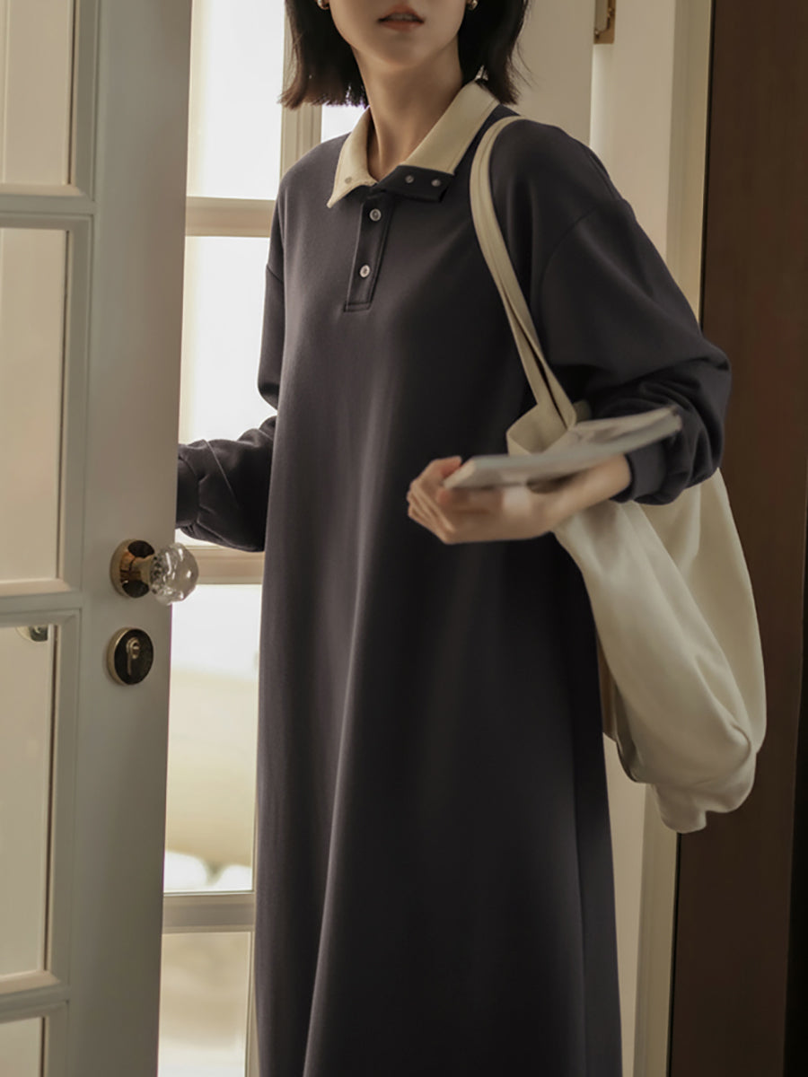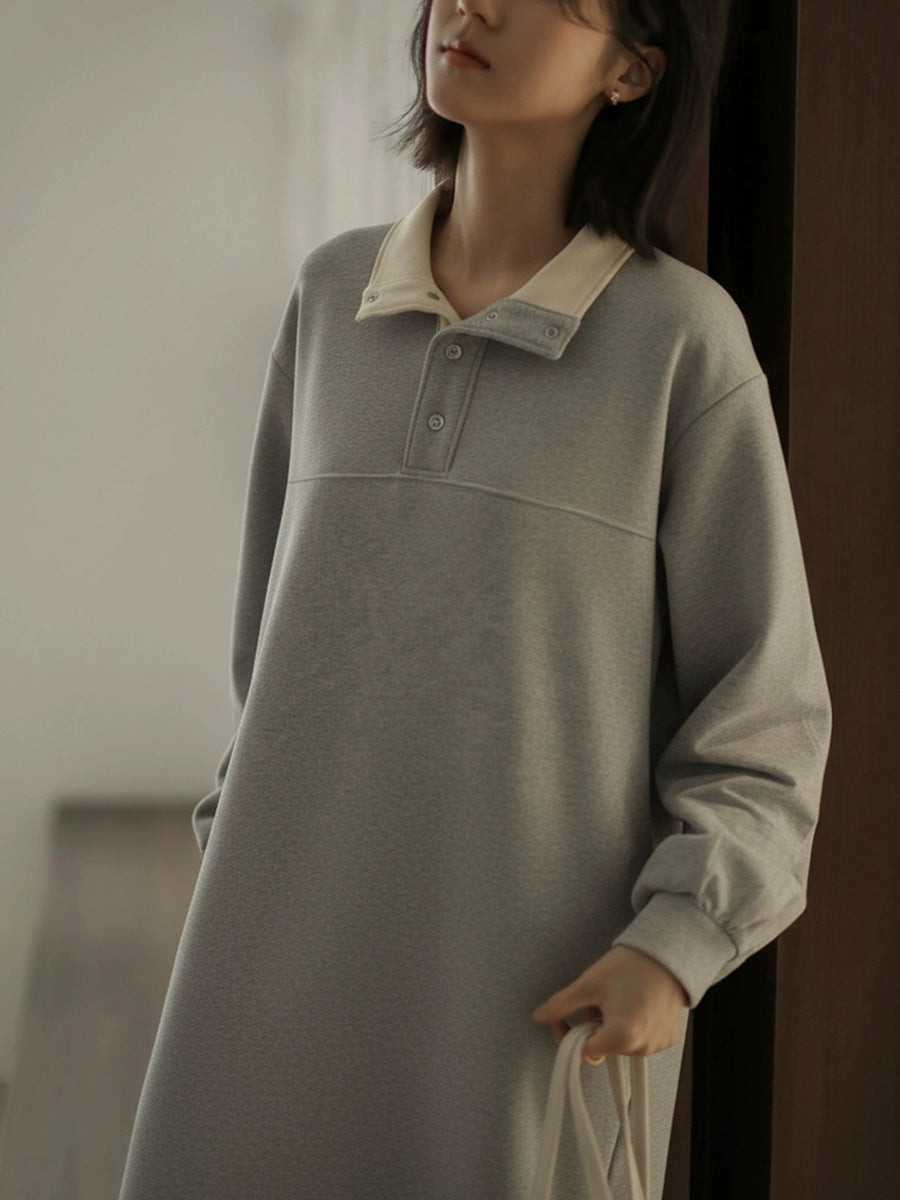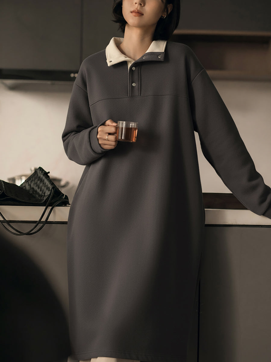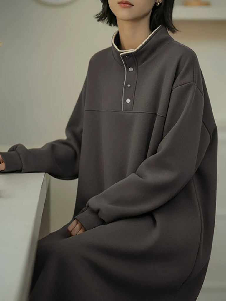 Vestido de otoño para mujer con cuello alto y forro polar de color puro