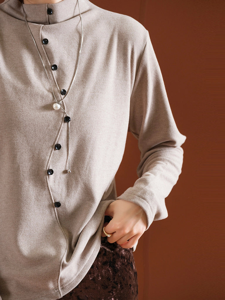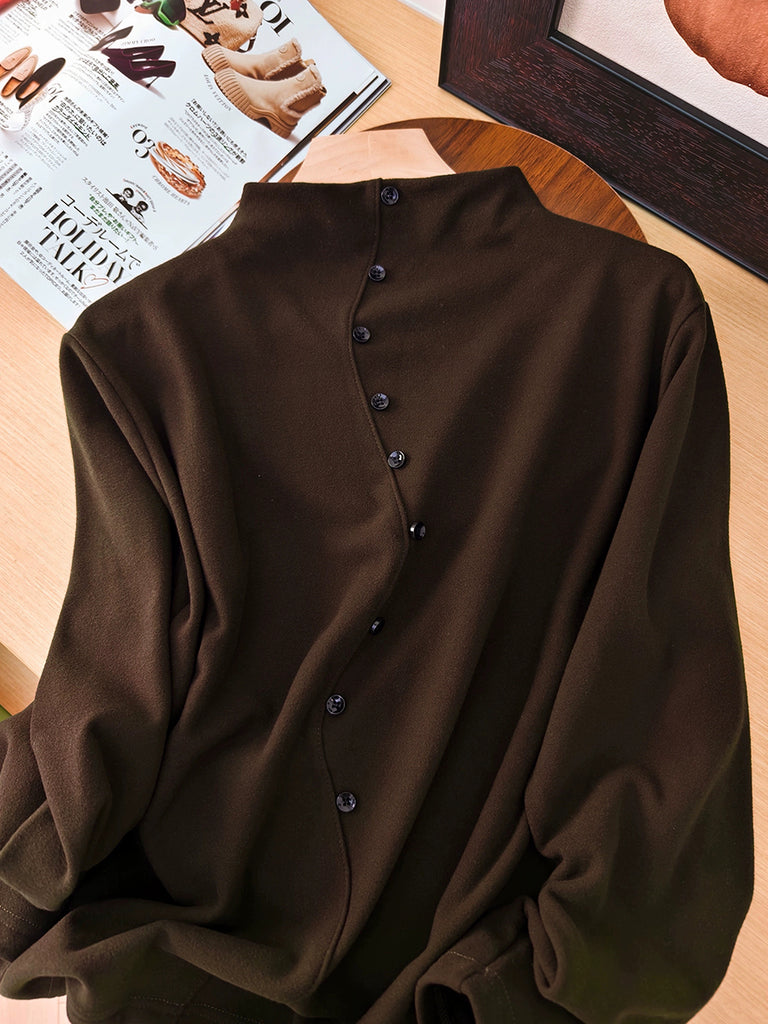 Blusa de cuello alto de color liso para mujer, ideal para otoño