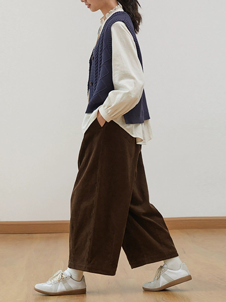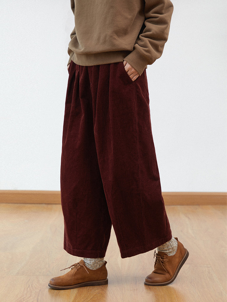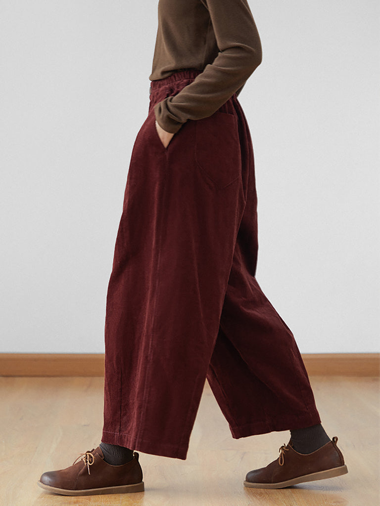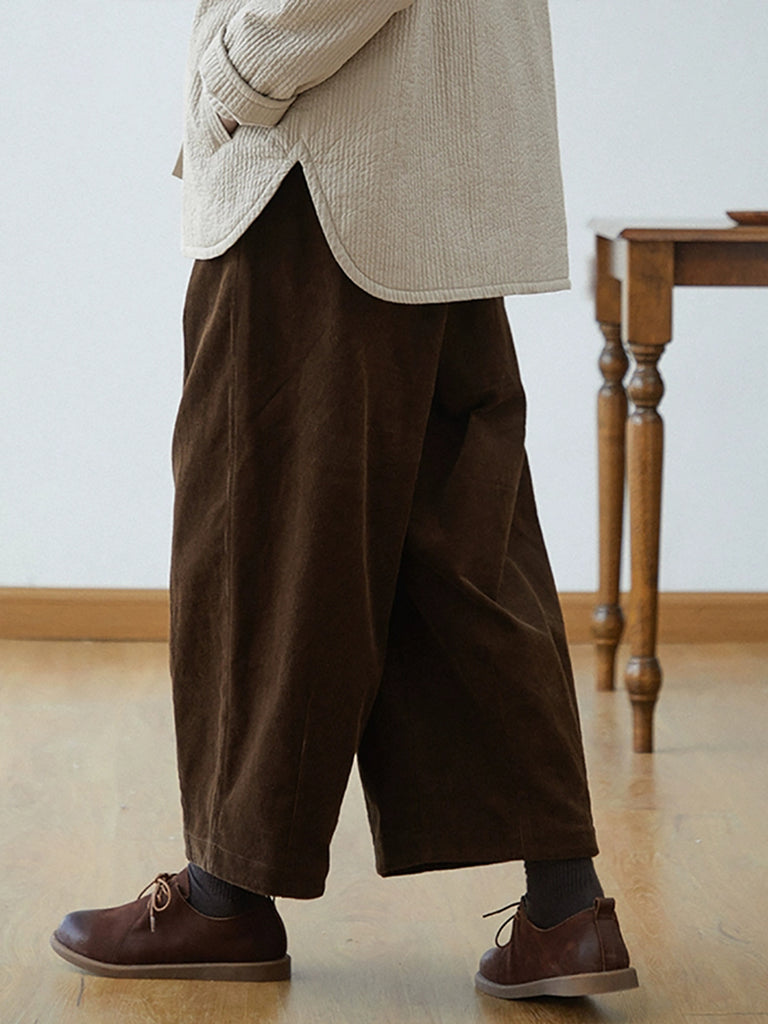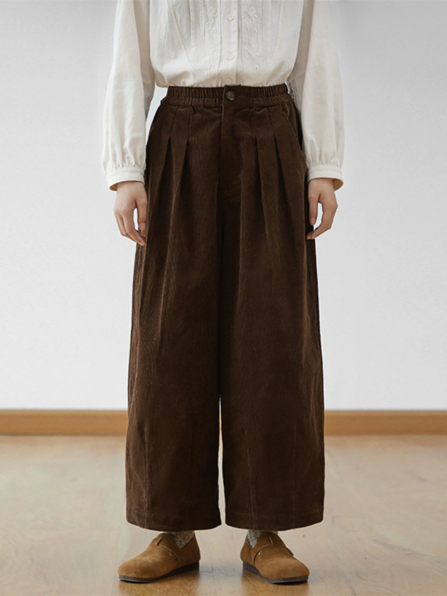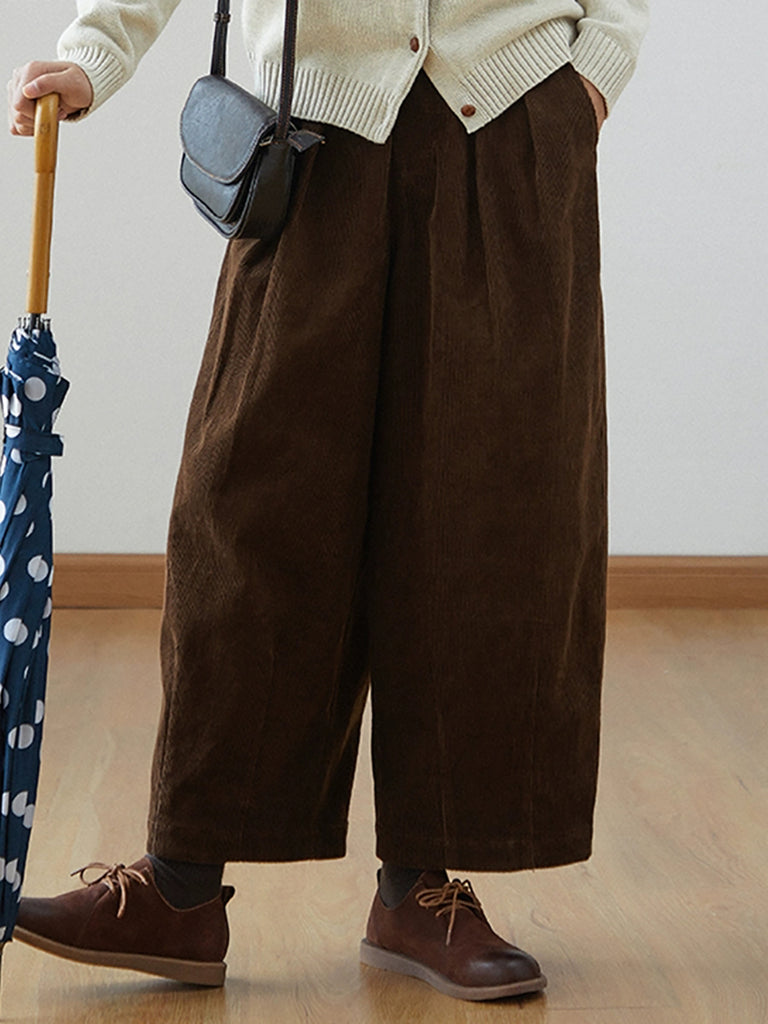 Pantalones de pana retro de pierna ancha para mujer, estilo otoño