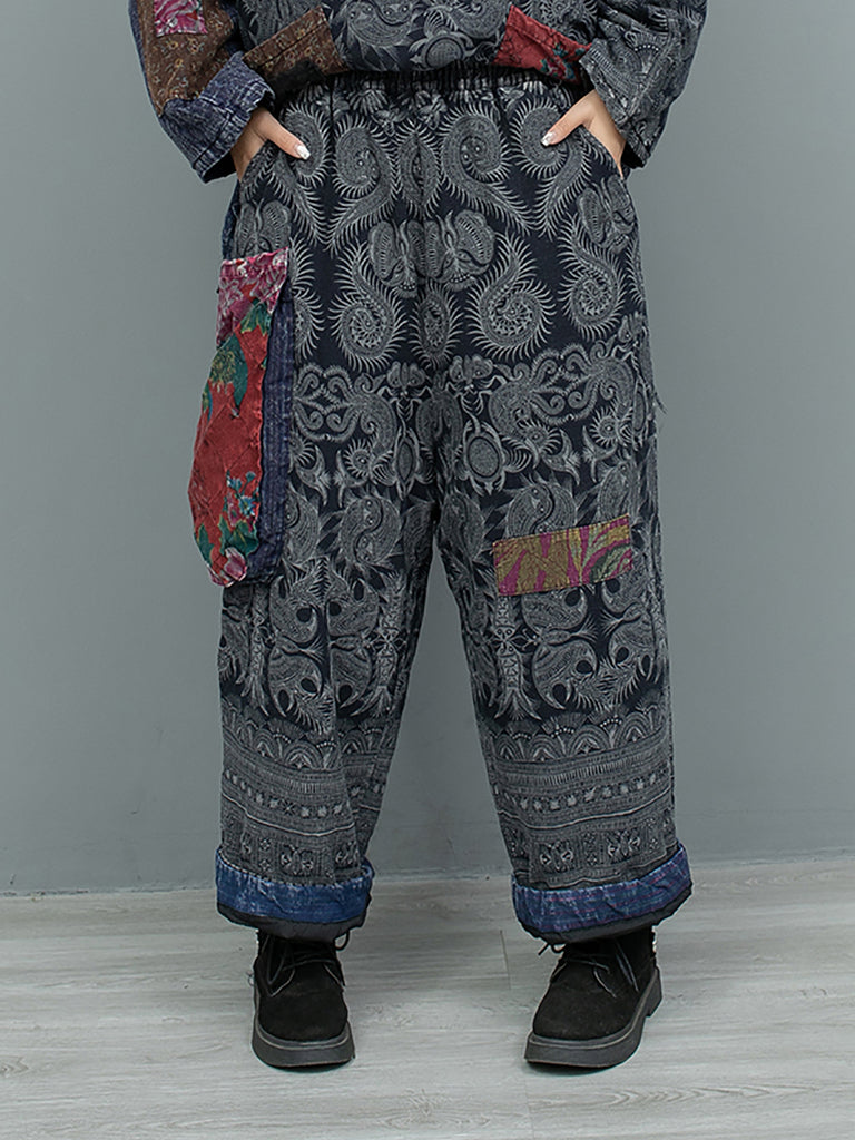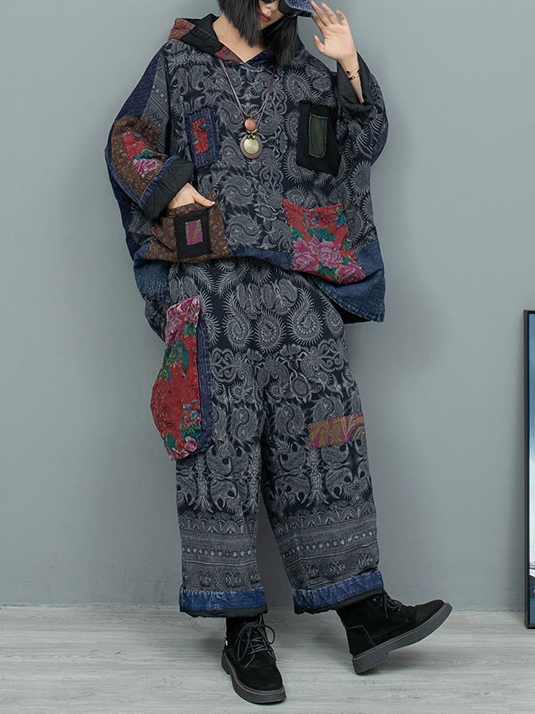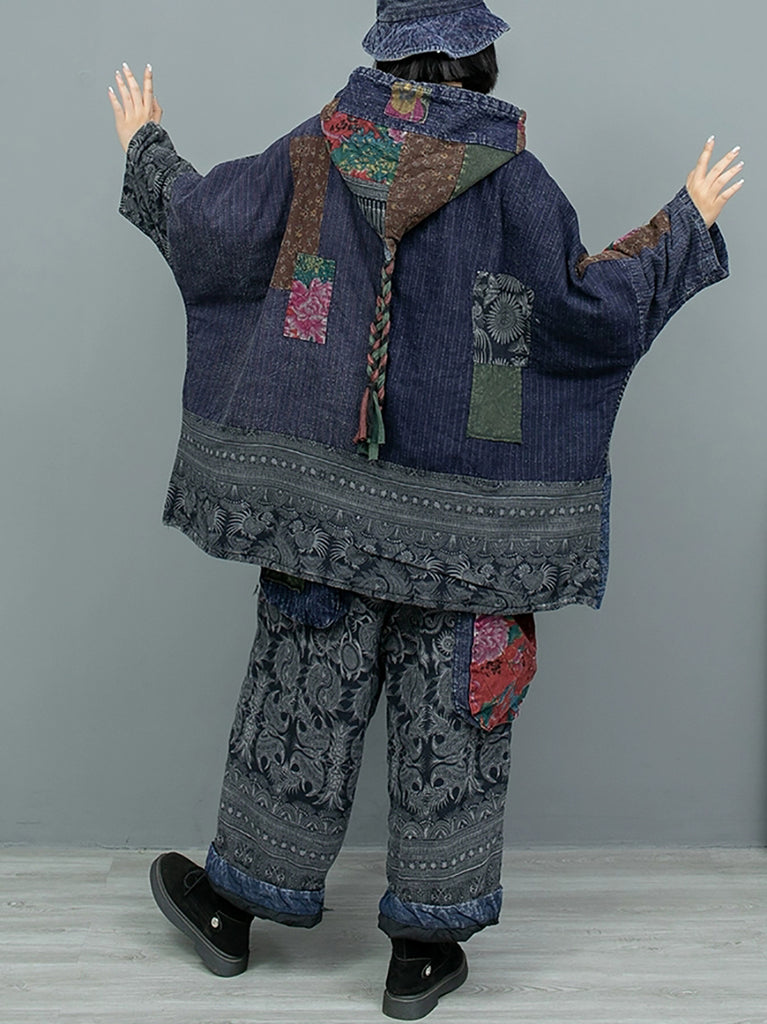 Trajes acolchados de lino con patchwork retro de otoño para mujer