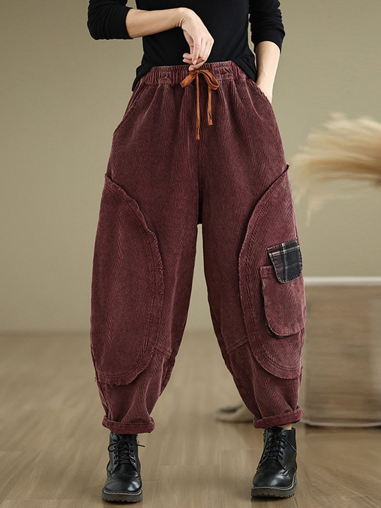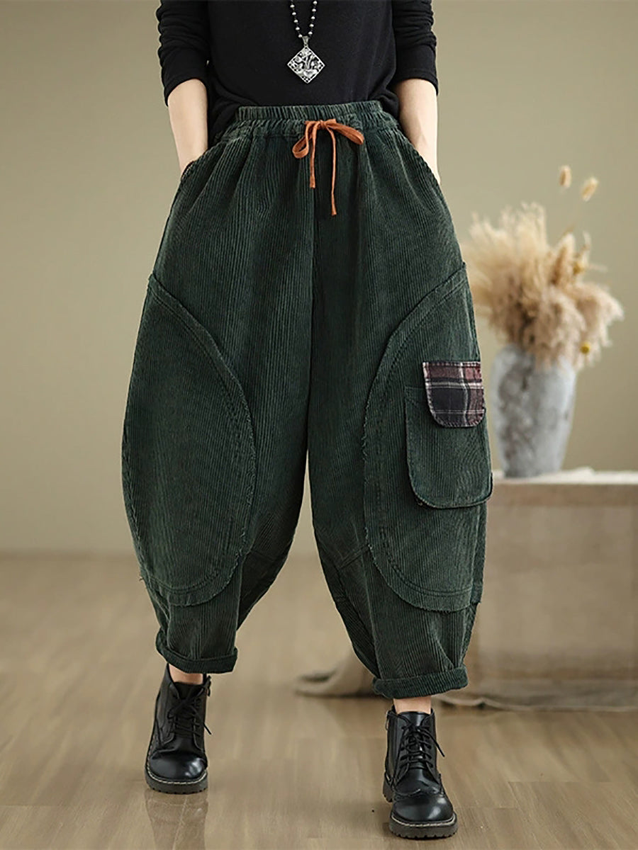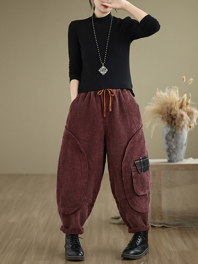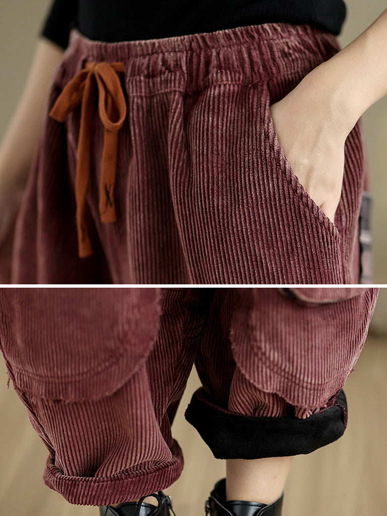 Pantalones harén de pana de color puro retro de otoño para mujer