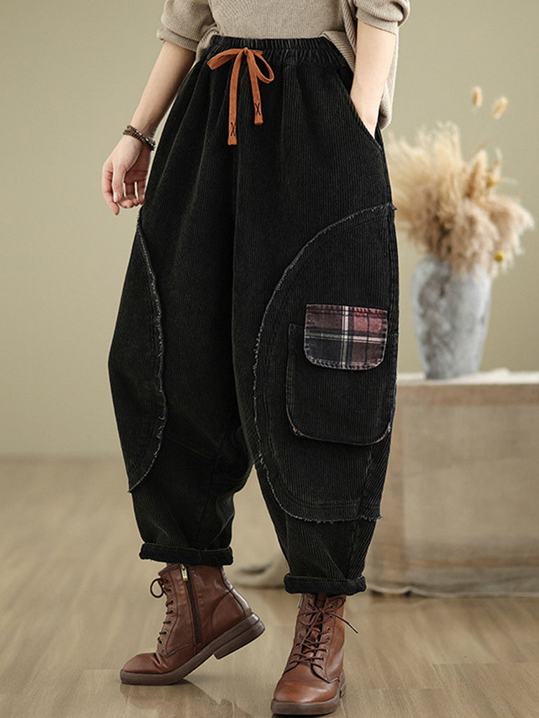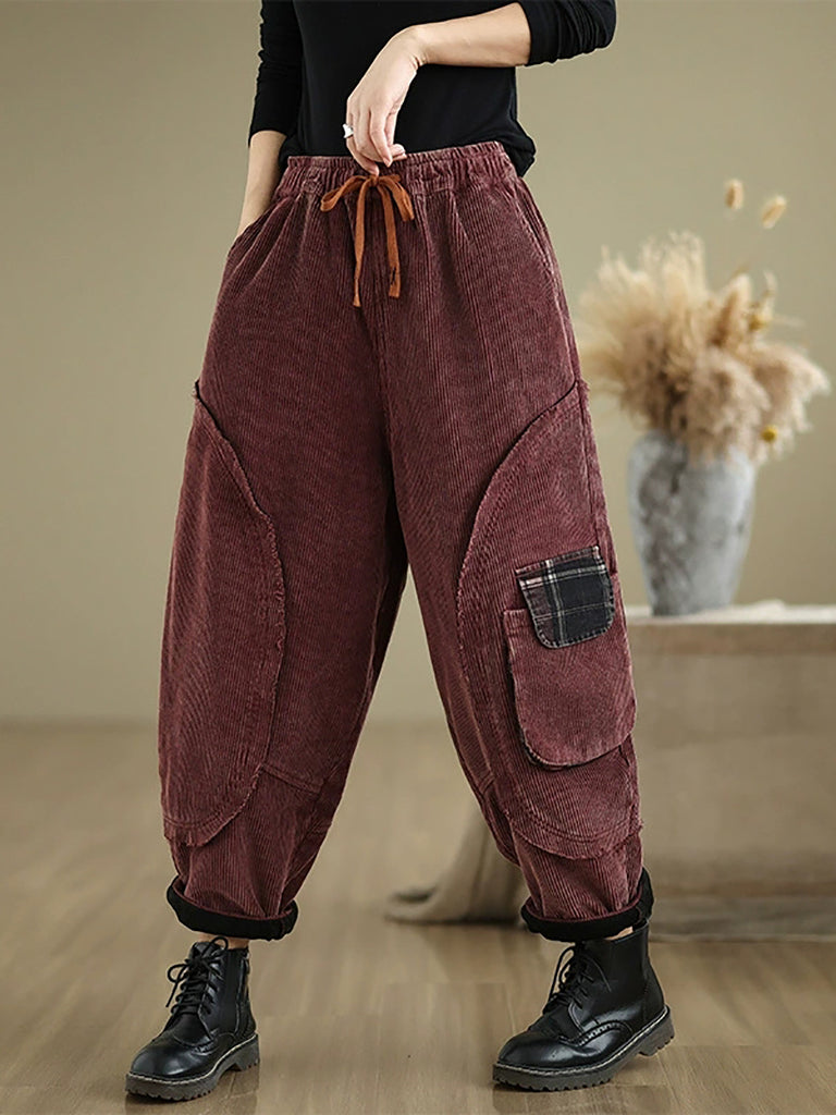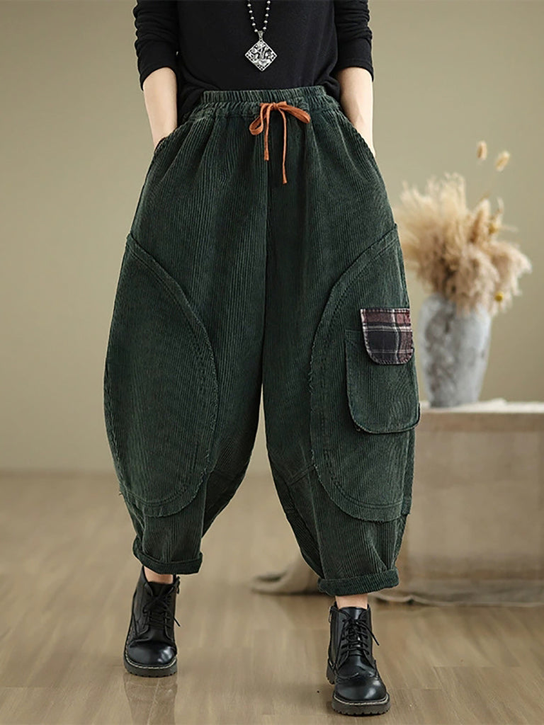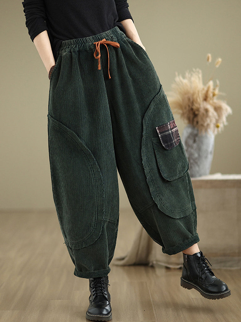 Pantalones harén de pana de color puro retro de otoño para mujer