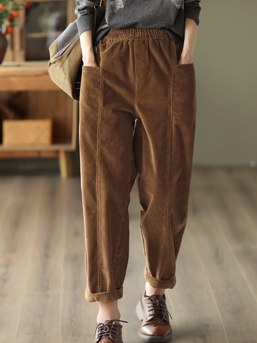 Pantalones harén de pana de color puro retro de otoño para mujer