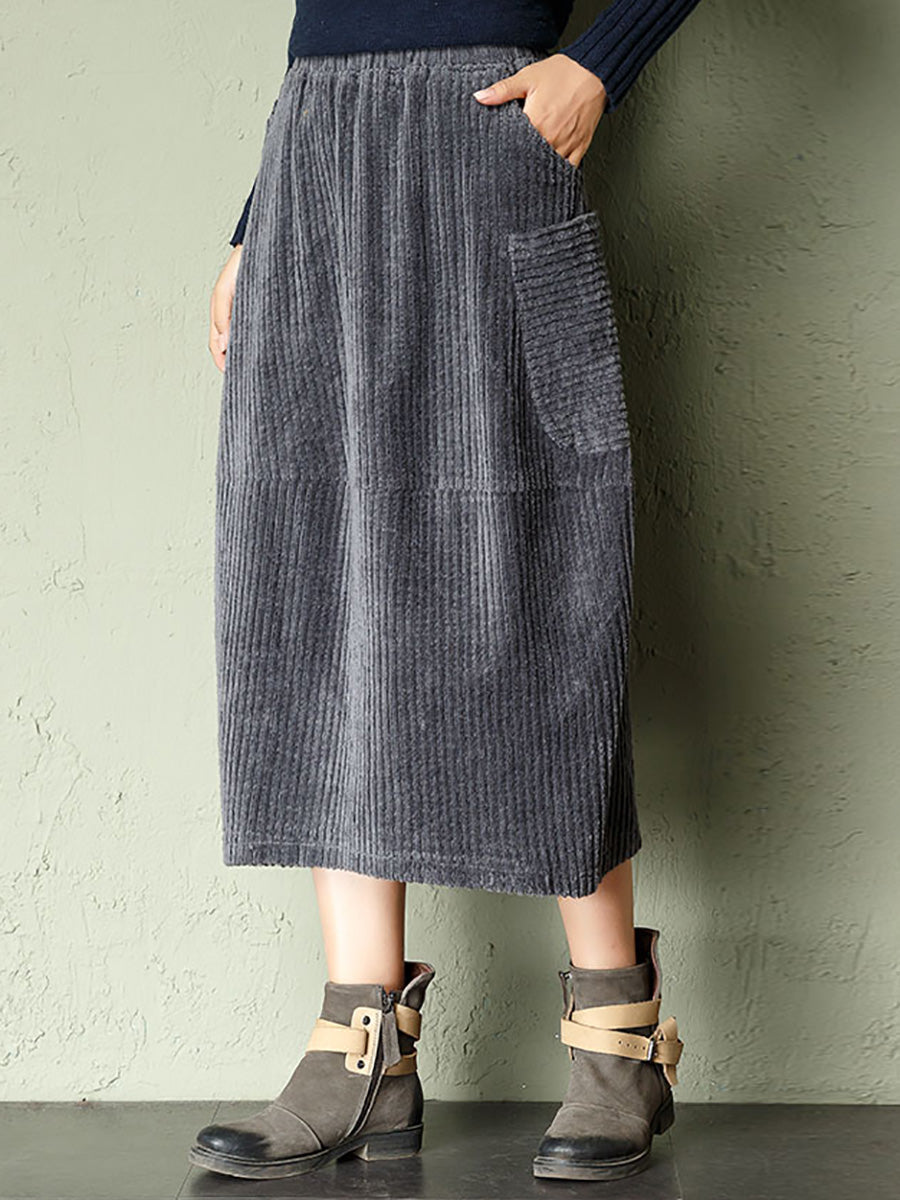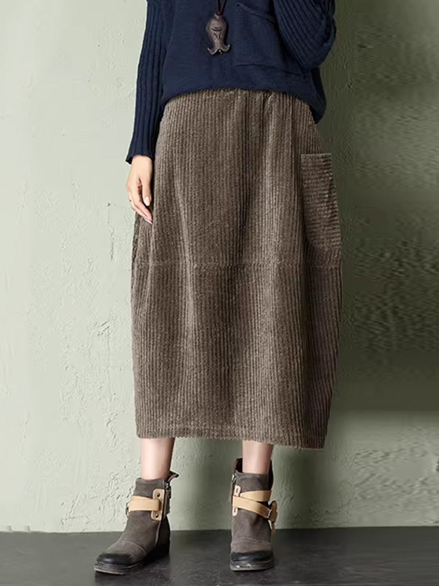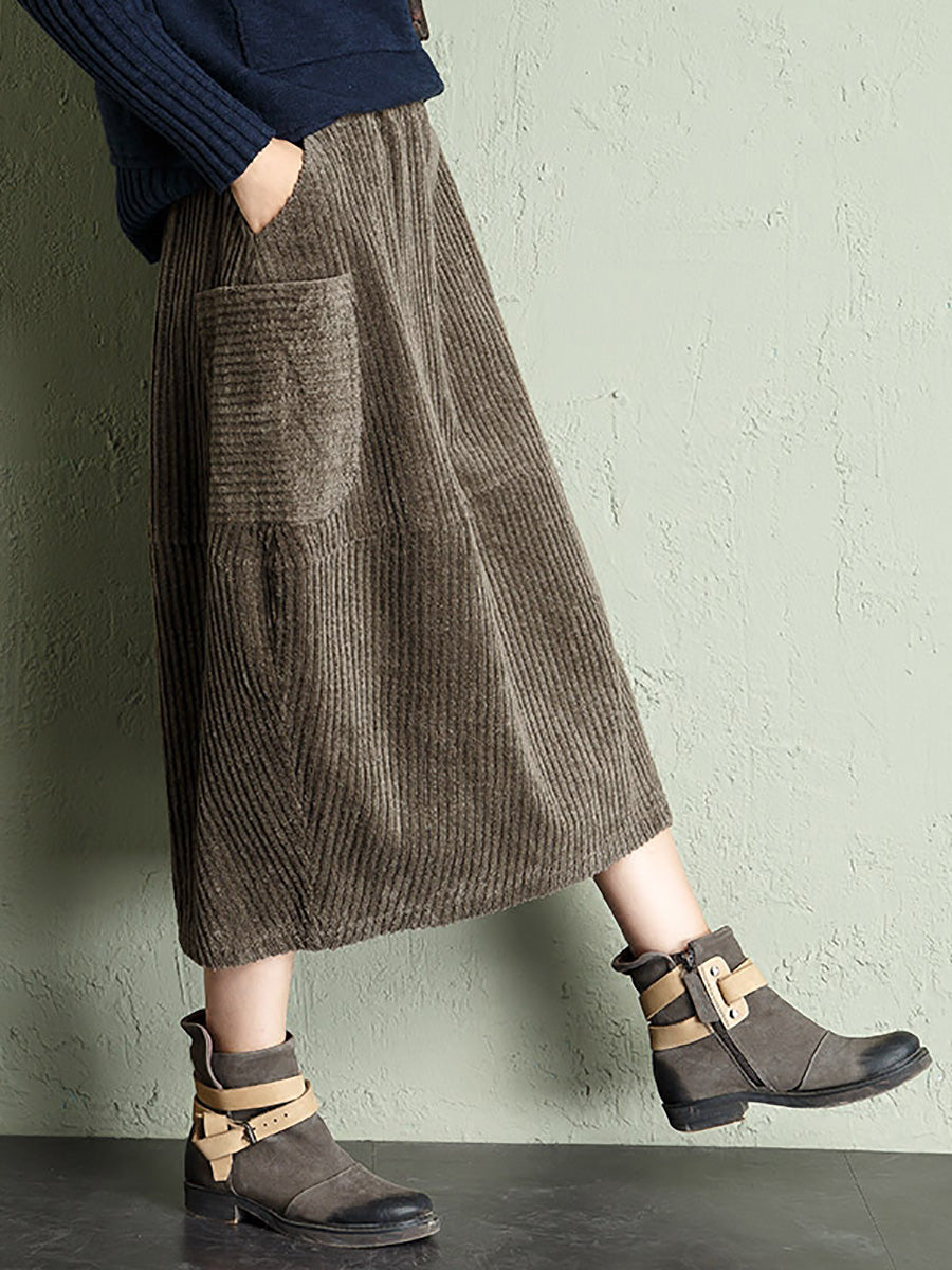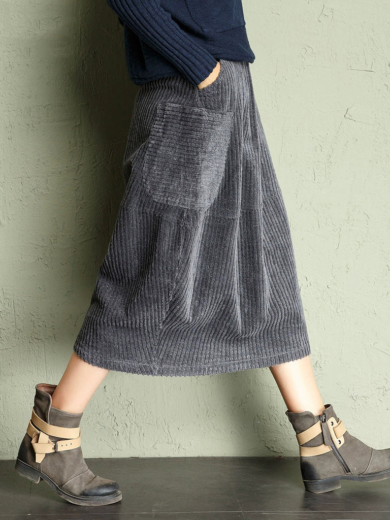 Falda de pana de color liso estilo retro otoñal para mujer