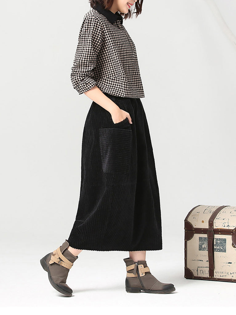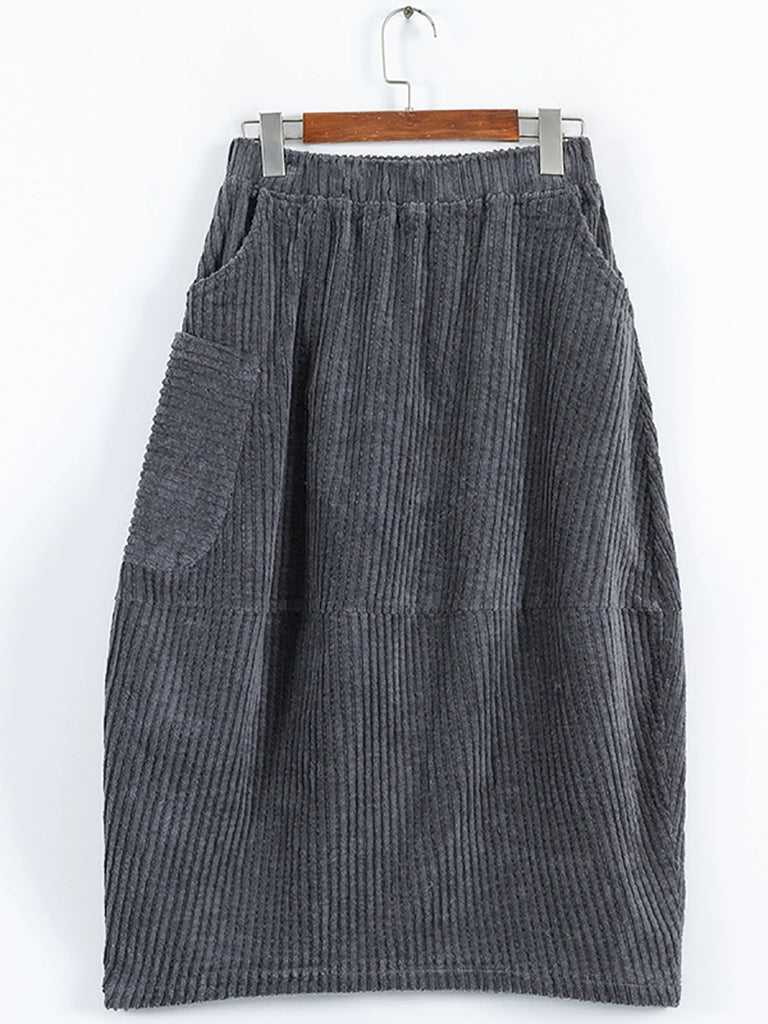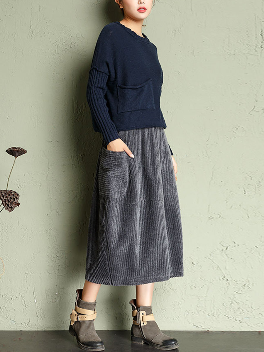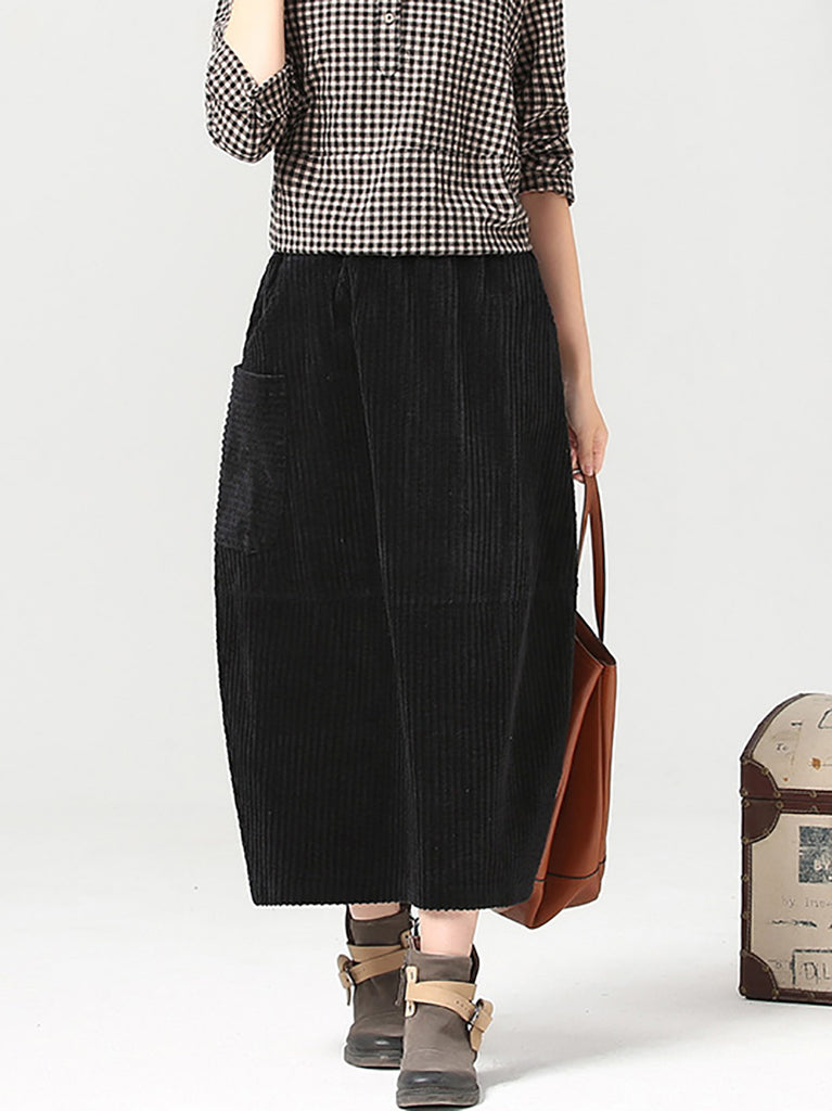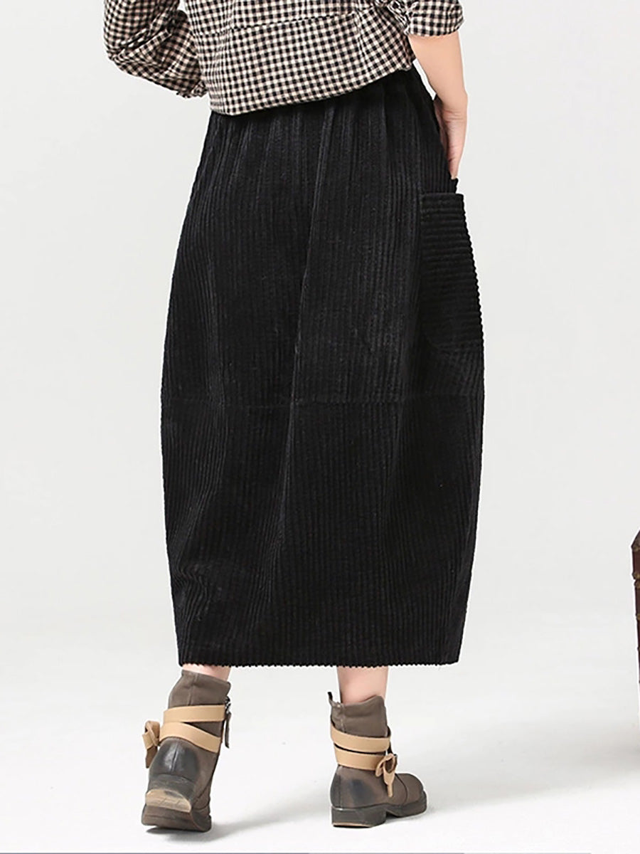Falda de pana de color liso estilo retro otoñal para mujer