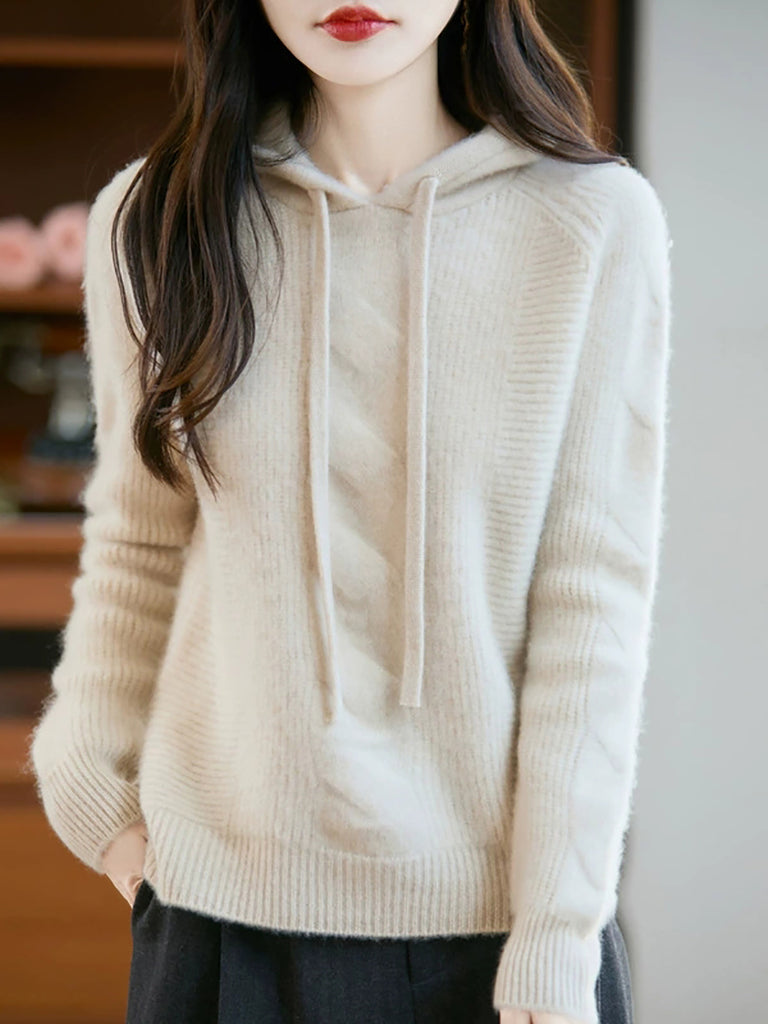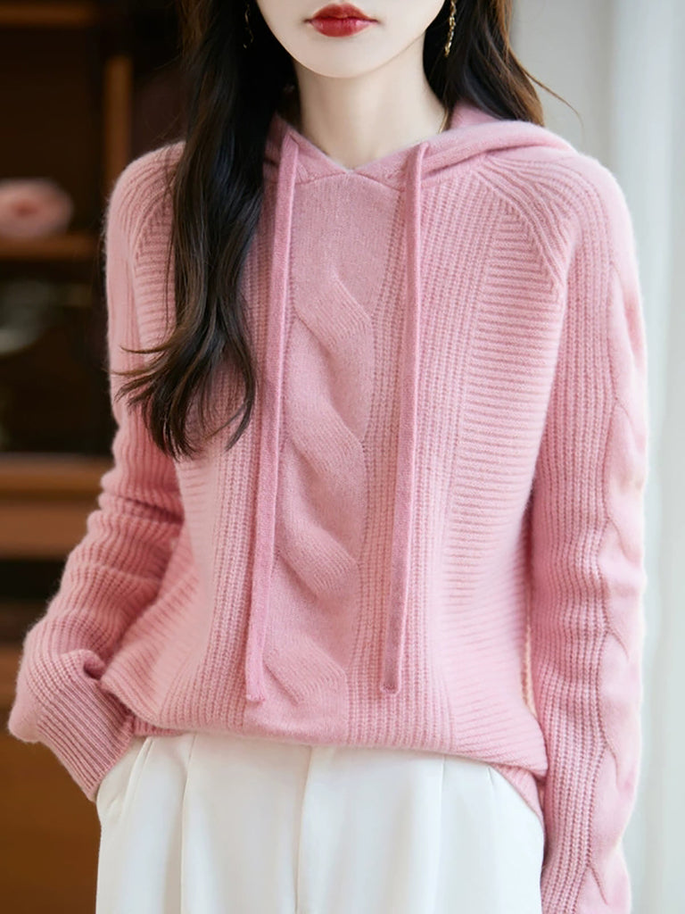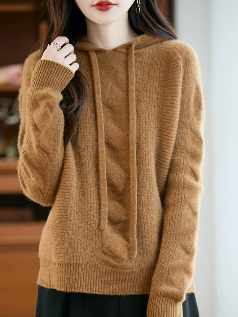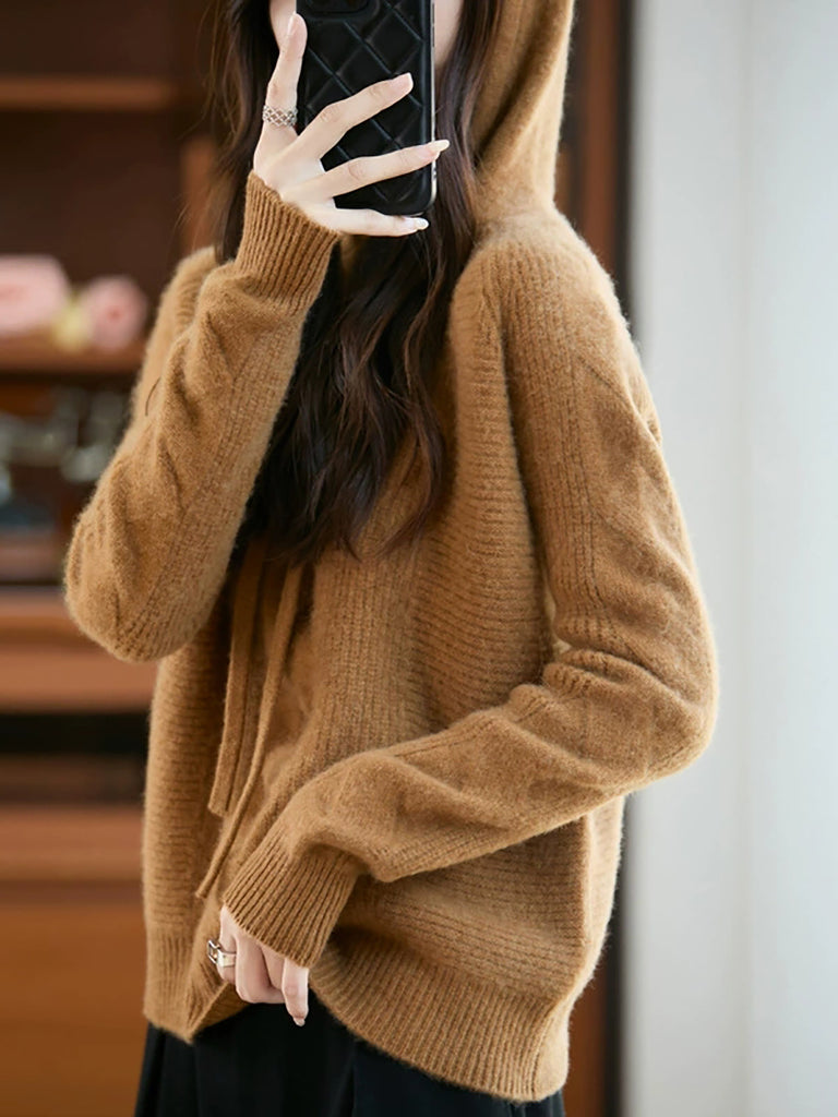 Suéter con capucha de punto de color puro retro de otoño para mujer