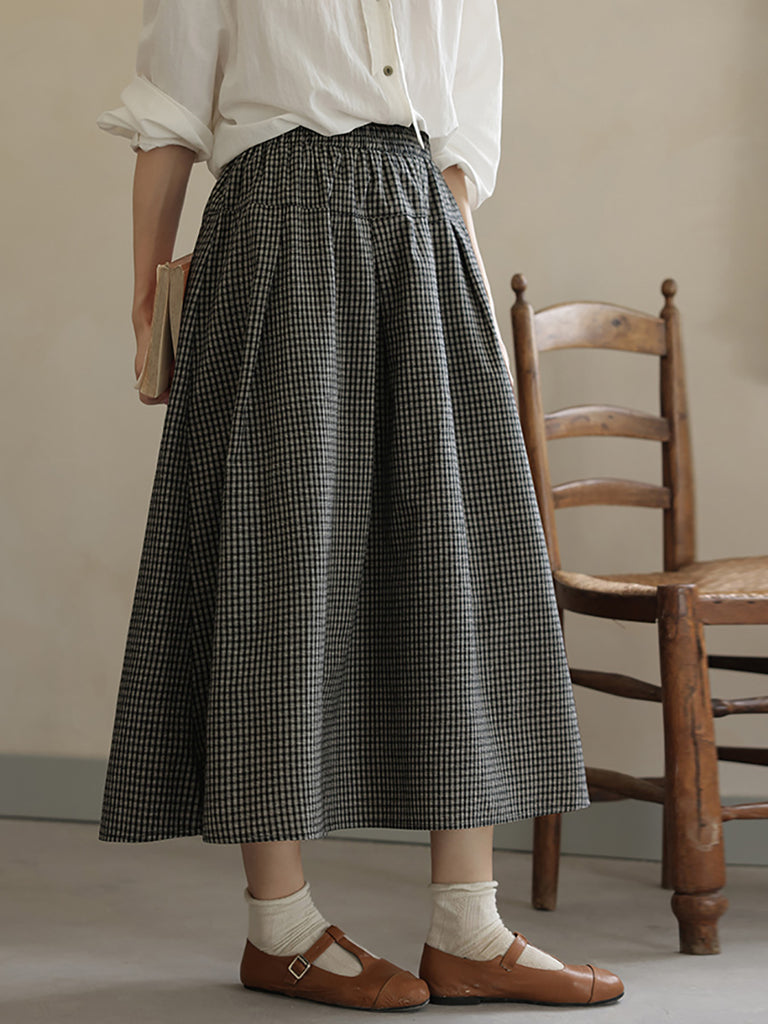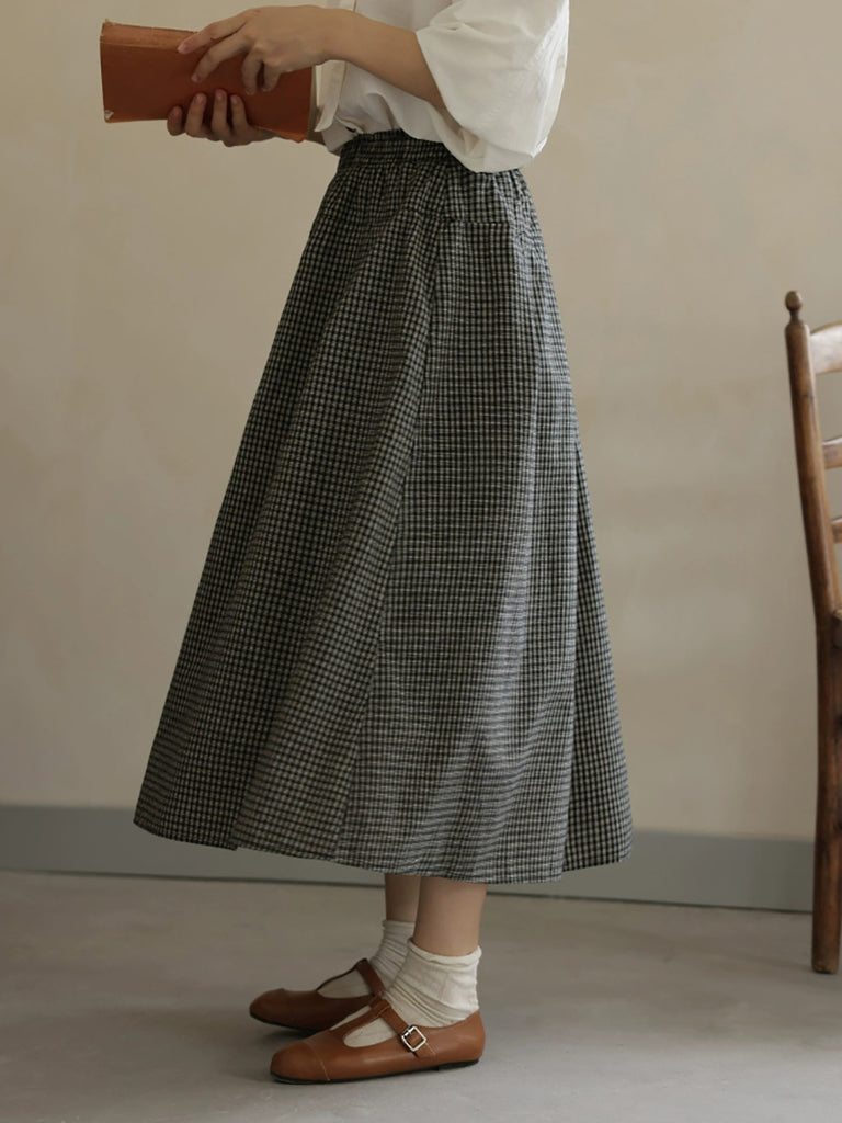 Falda vintage de otoño con diseño en forma de A para mujer, 100 % algodón