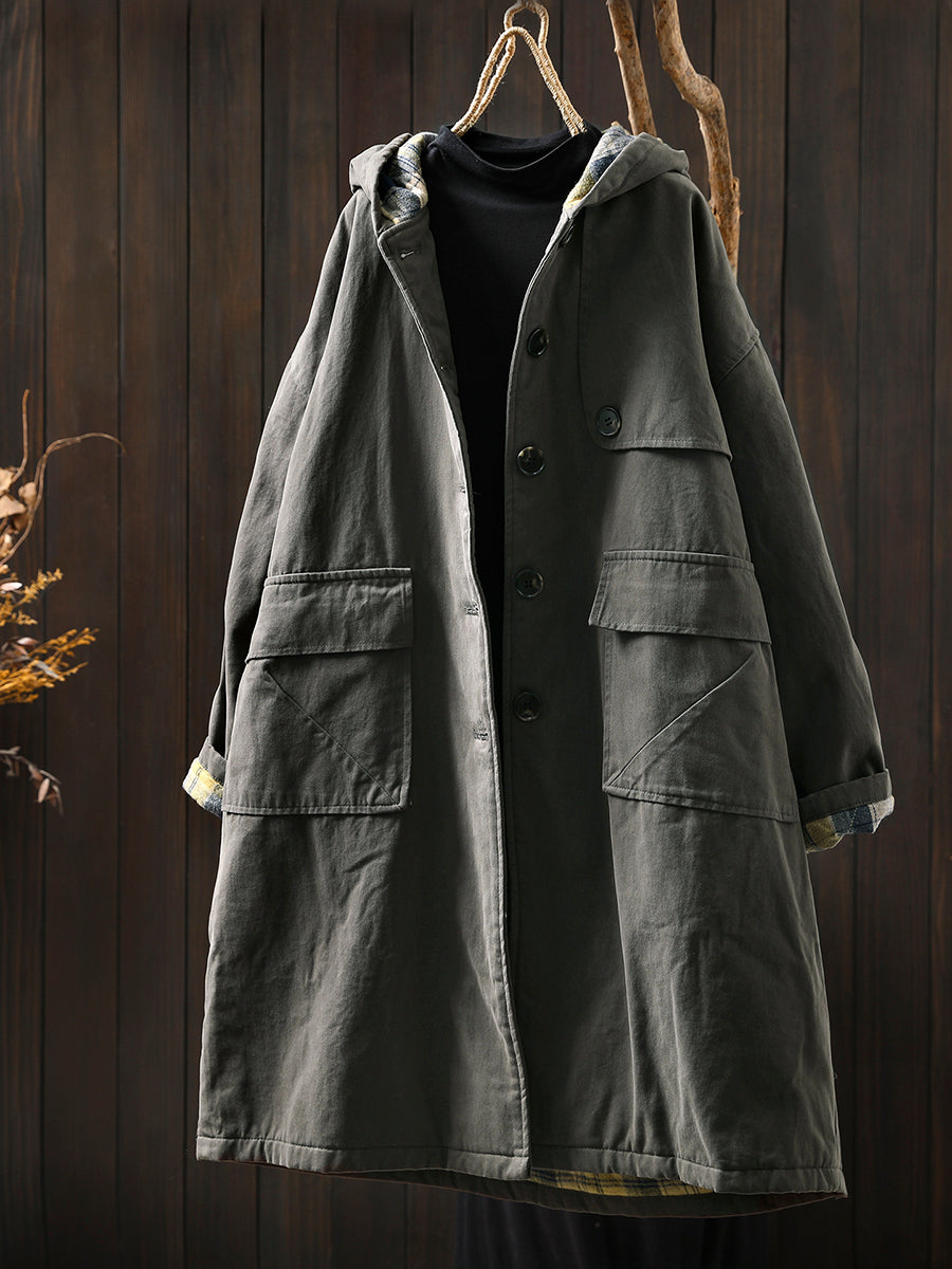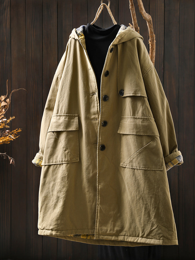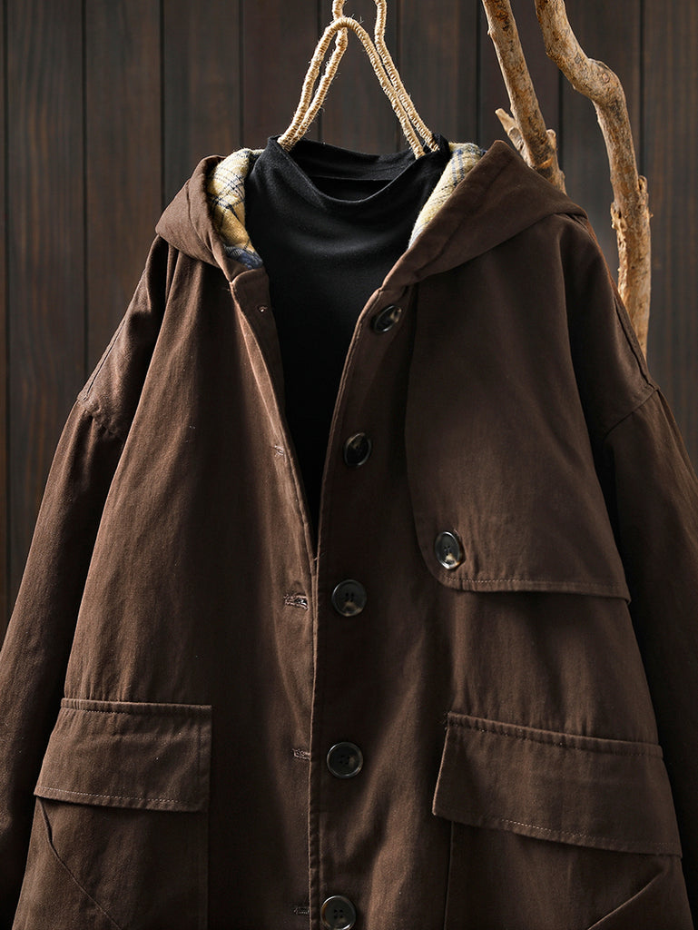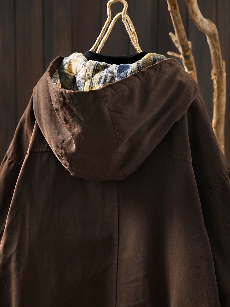 Abrigo con capucha de algodón de color puro vintage de otoño para mujer