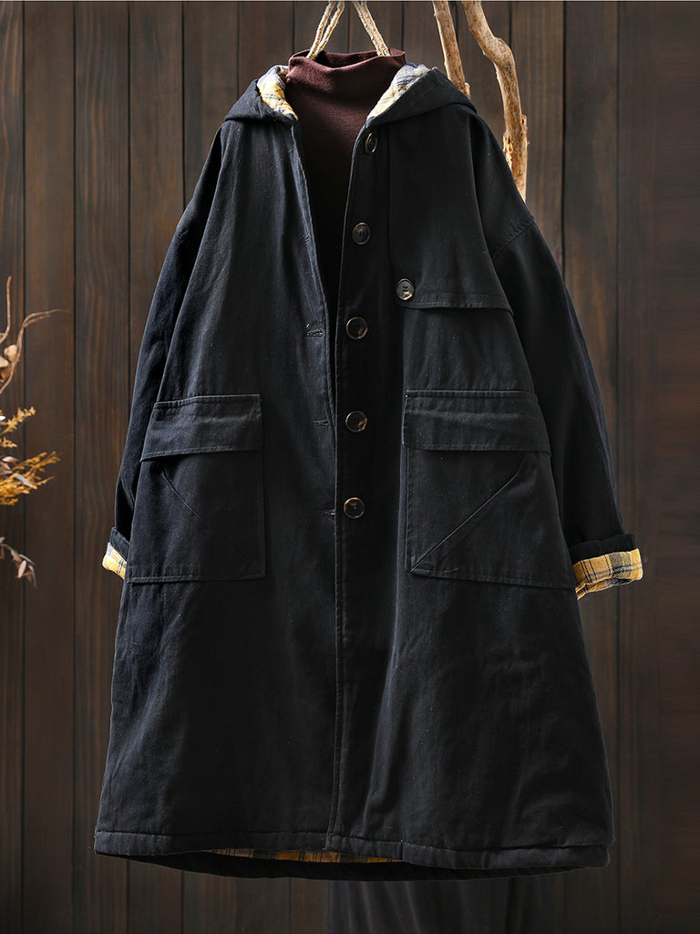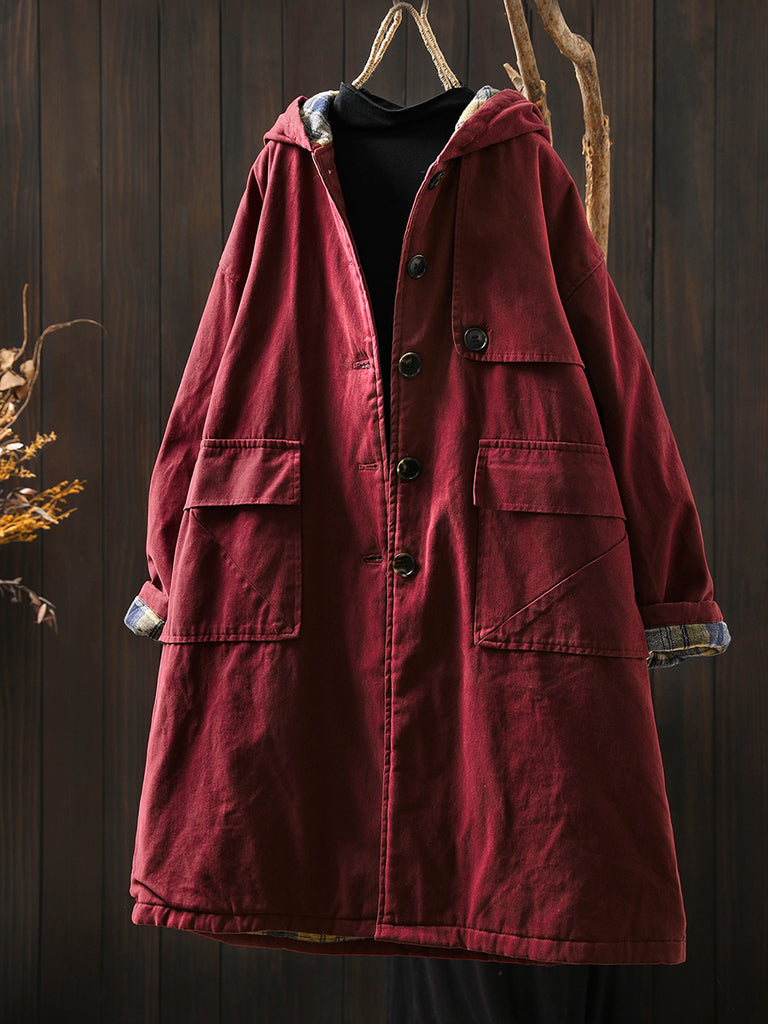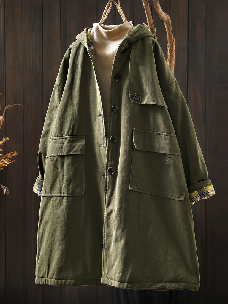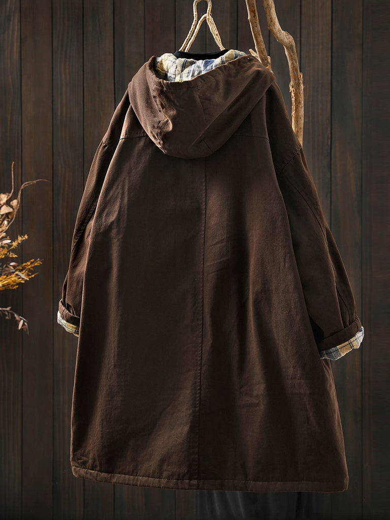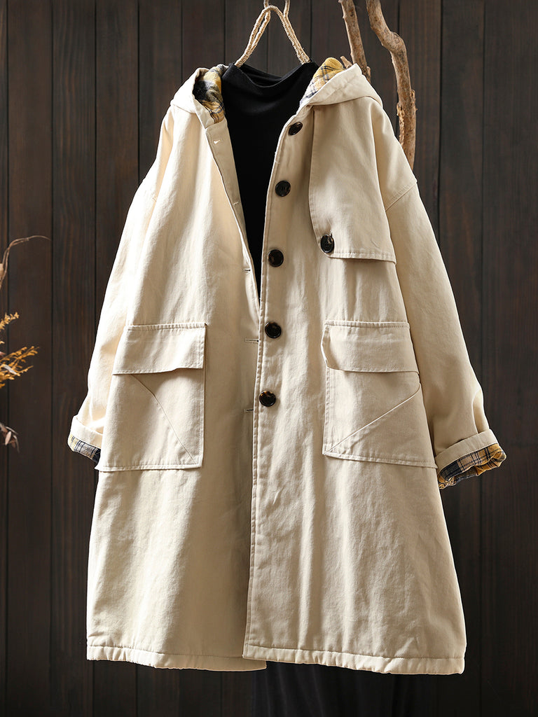 Abrigo con capucha de algodón de color puro vintage de otoño para mujer