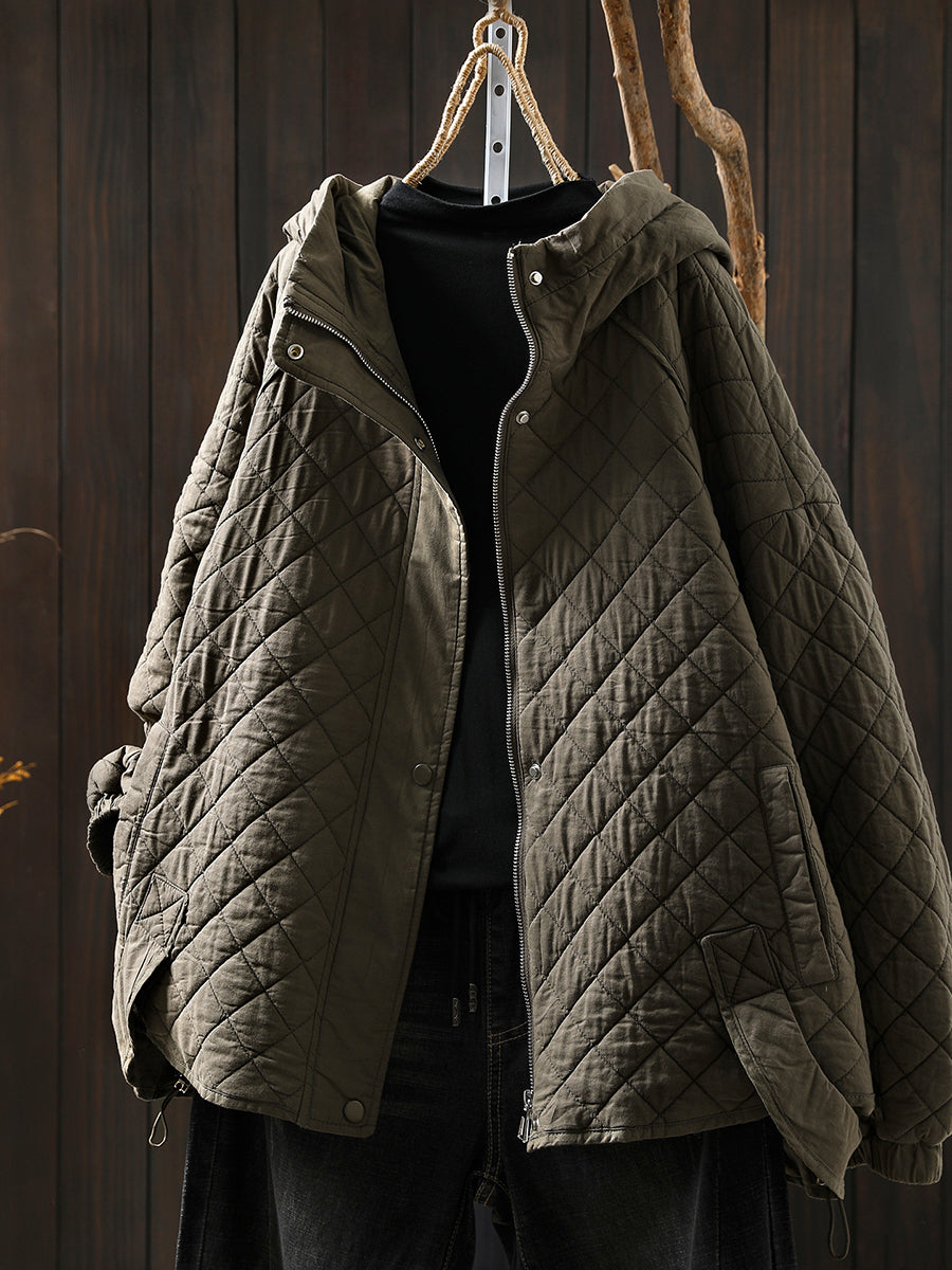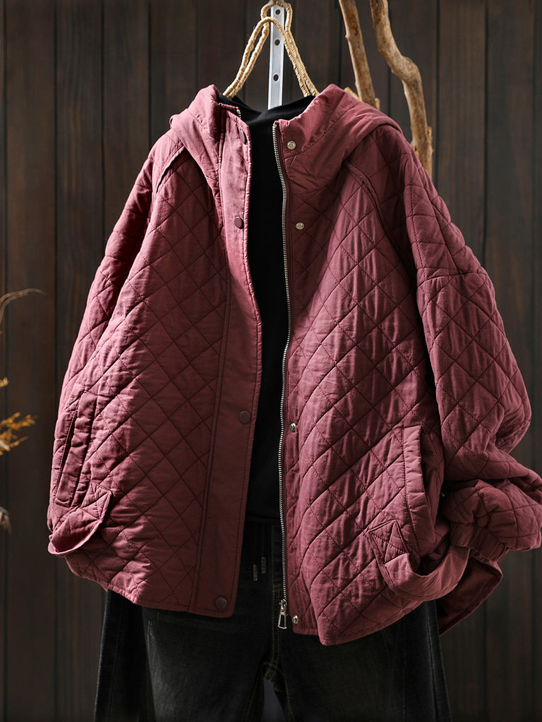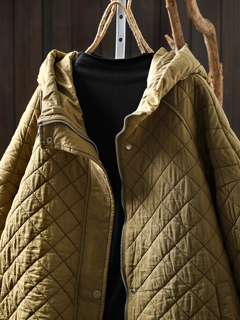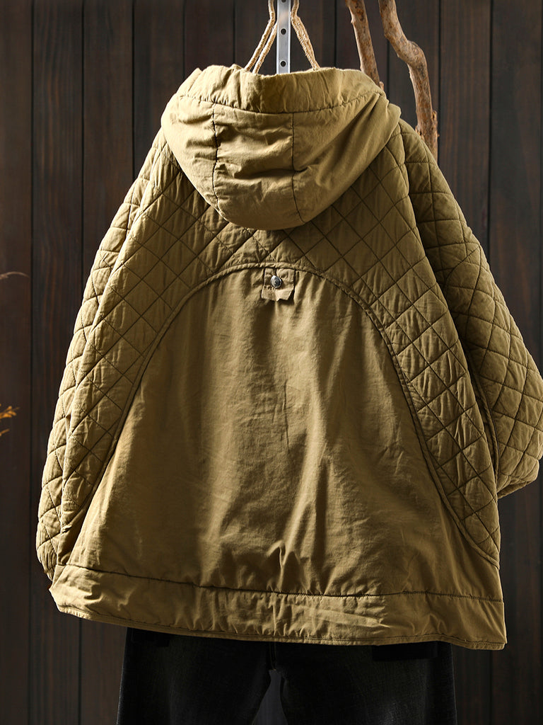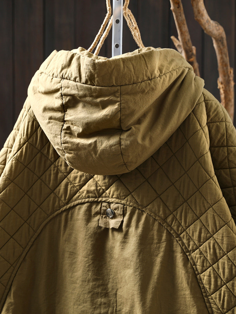 Chaqueta con capucha de algodón de color puro vintage de otoño para mujer