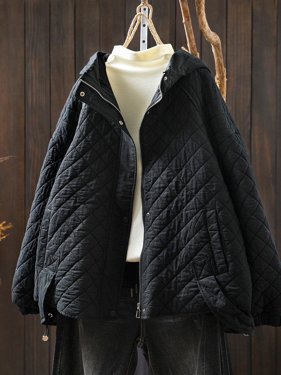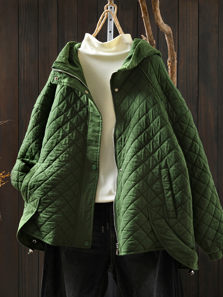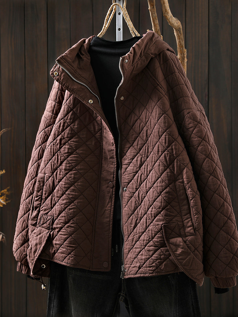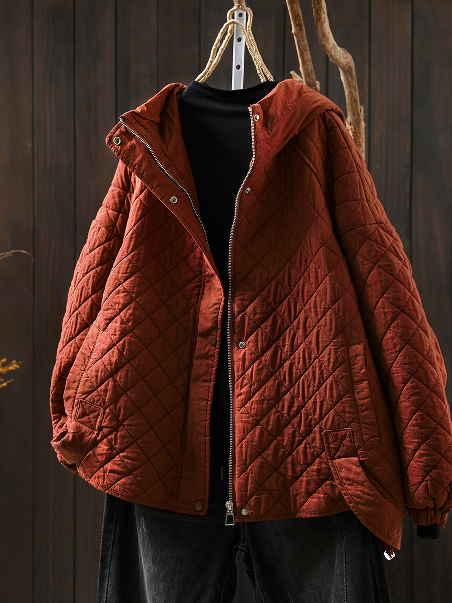 Chaqueta con capucha de algodón de color puro vintage de otoño para mujer