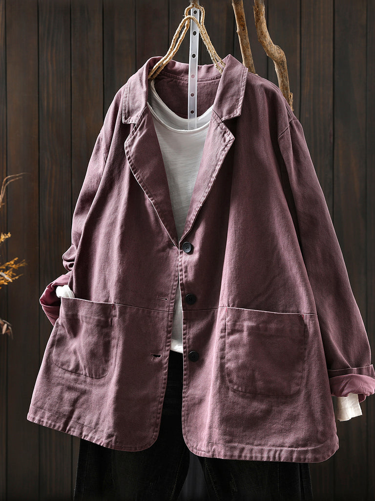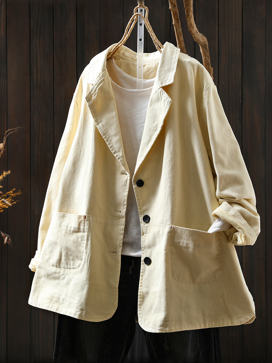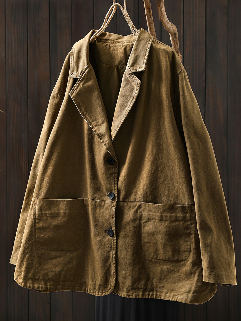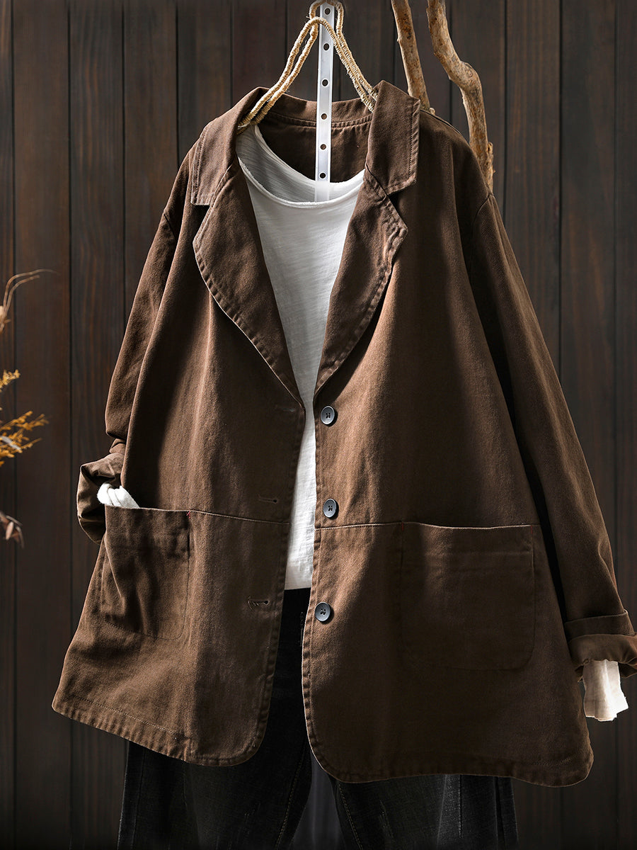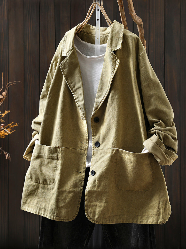 Chaqueta vintage de algodón de color puro para mujer, otoño