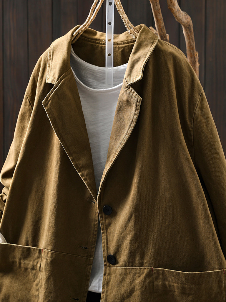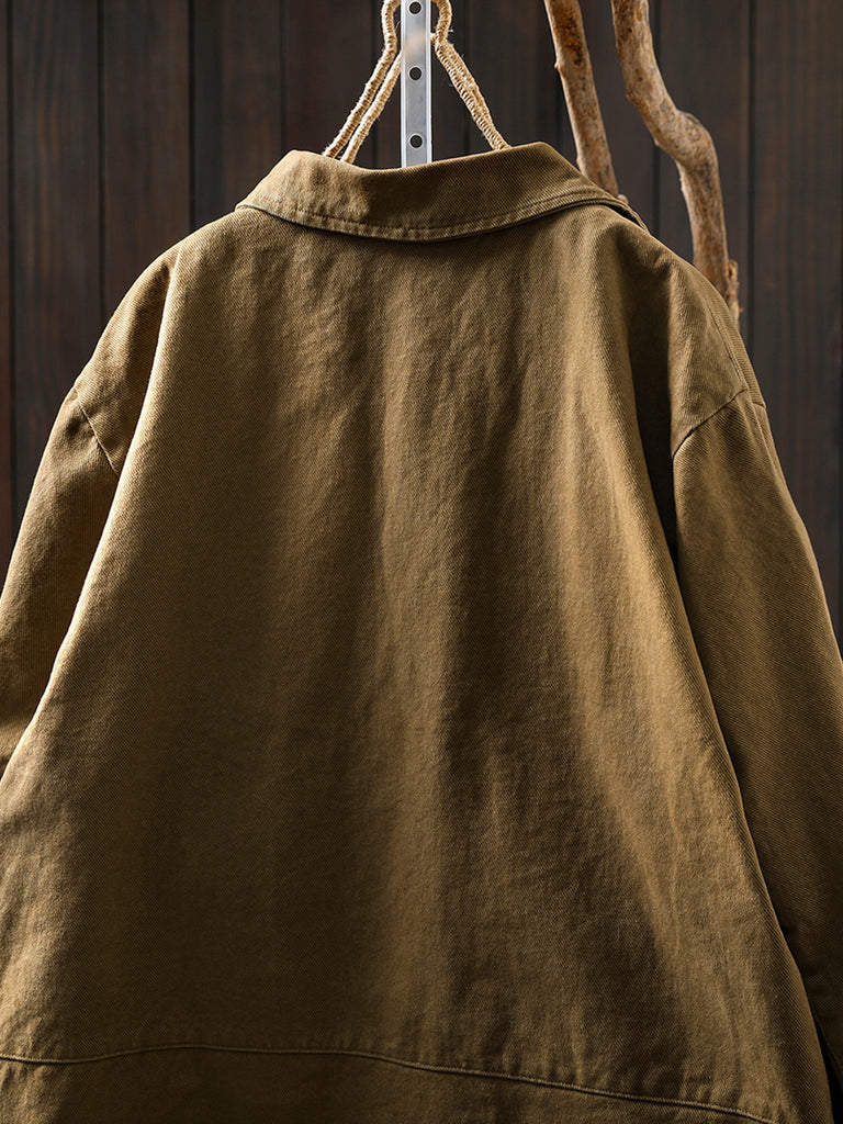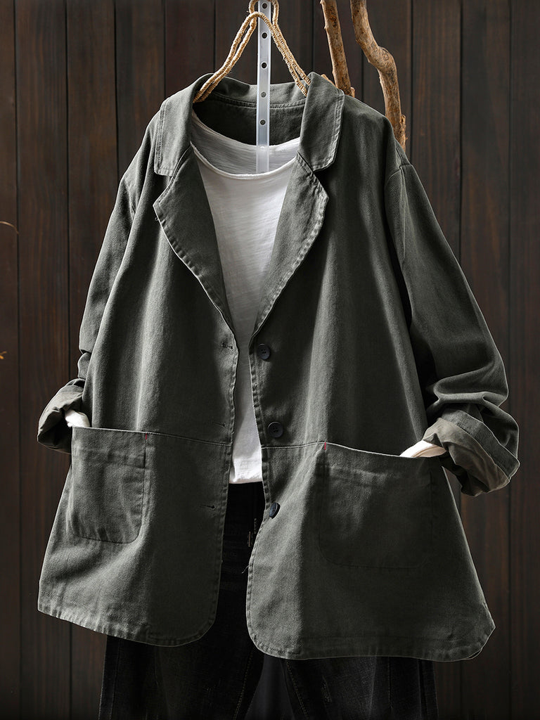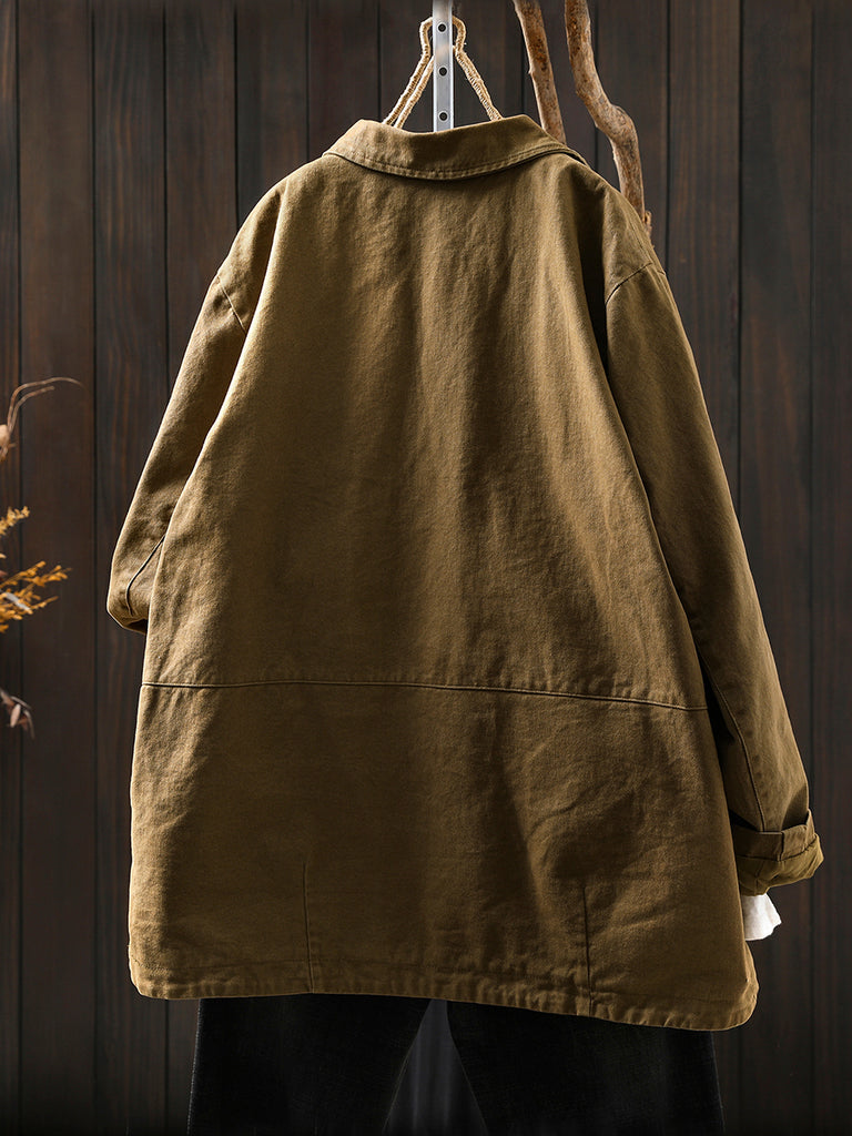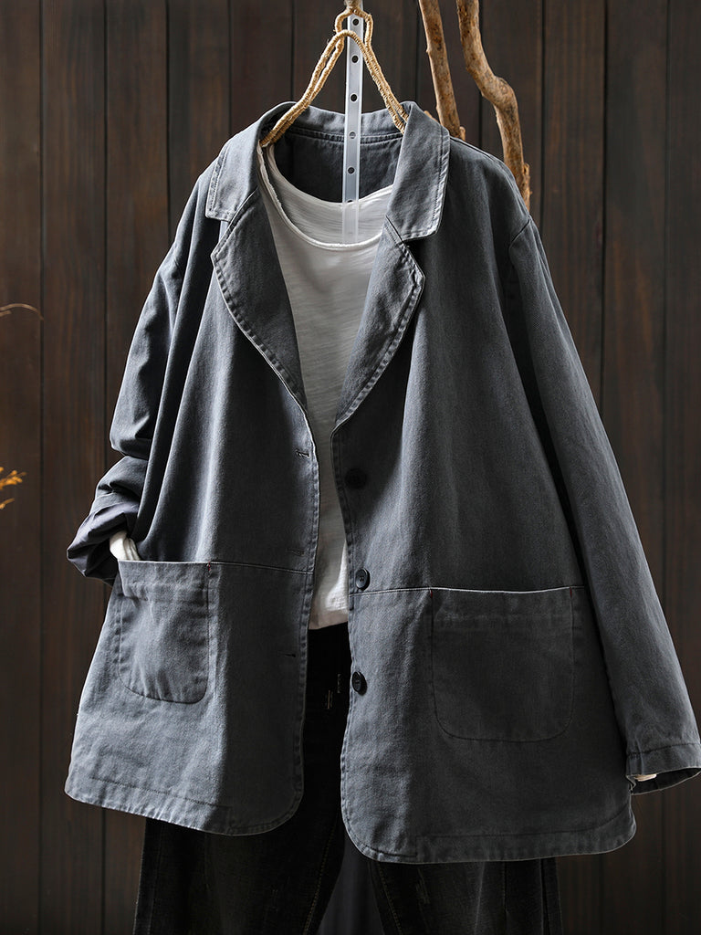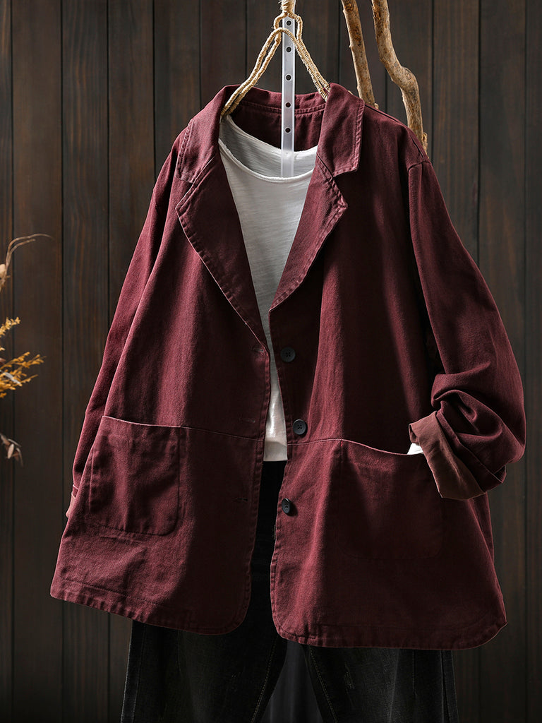 Chaqueta vintage de algodón de color puro para mujer, otoño