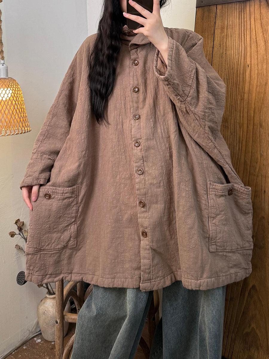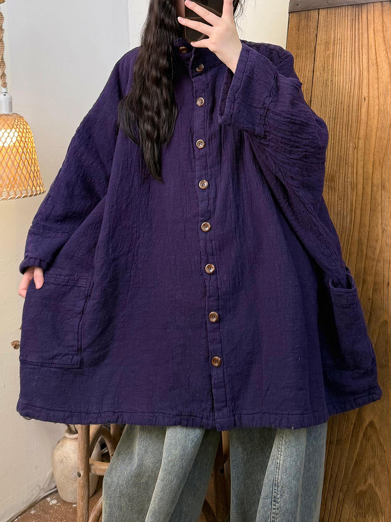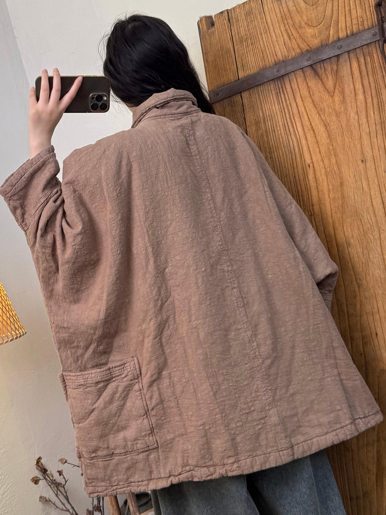 Abrigo acolchado con cuello alto de color puro vintage de otoño para mujer