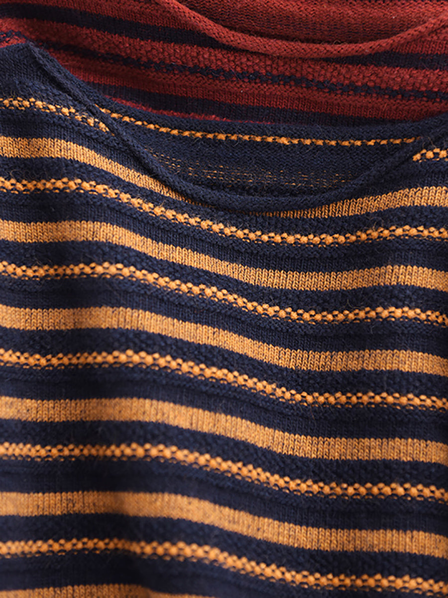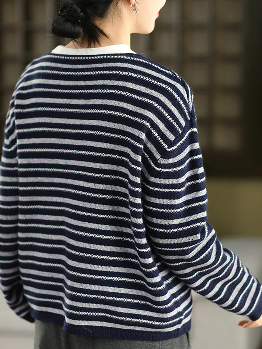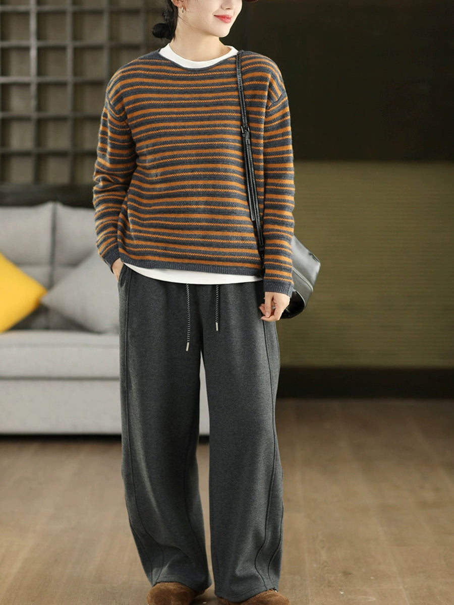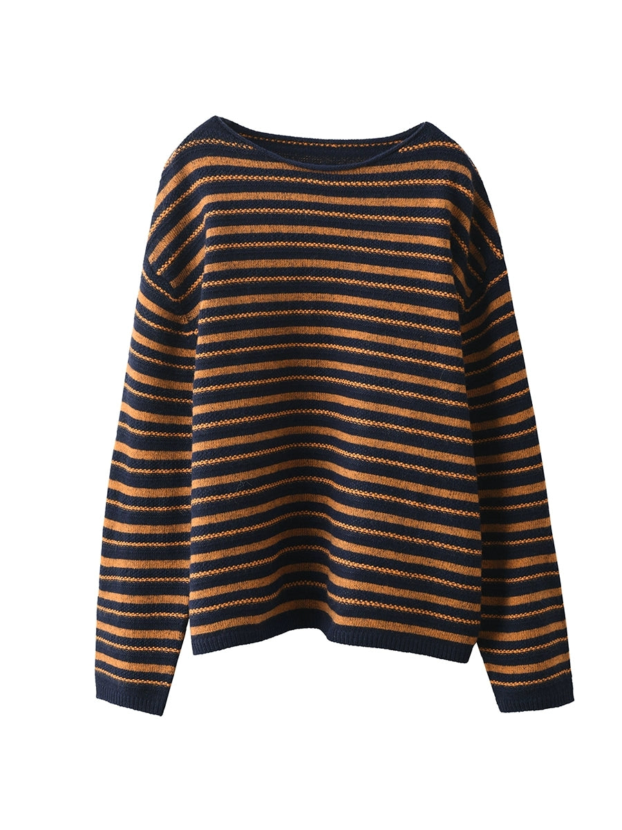 Suéter de punto con cuello redondo y rayas vintage de otoño para mujer
