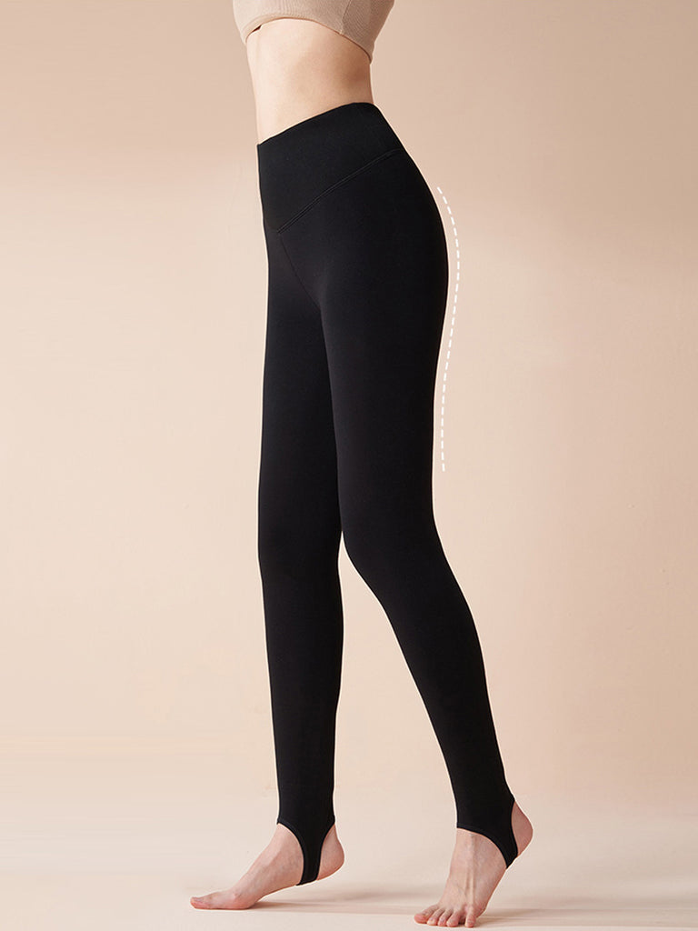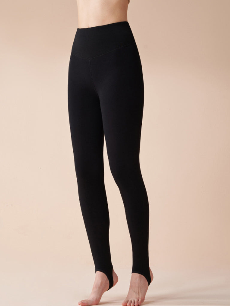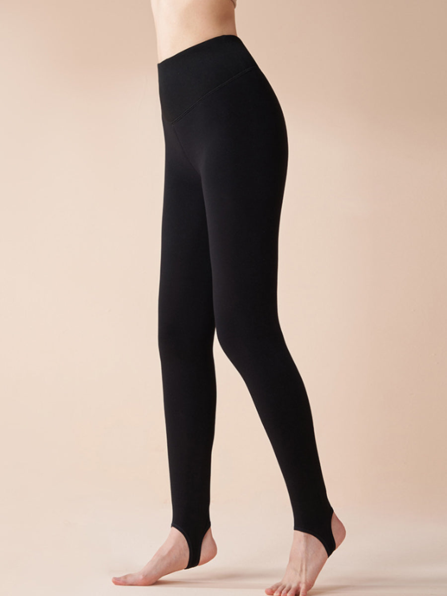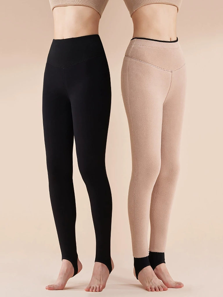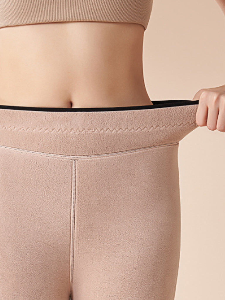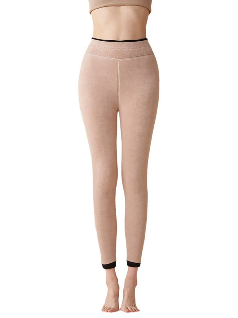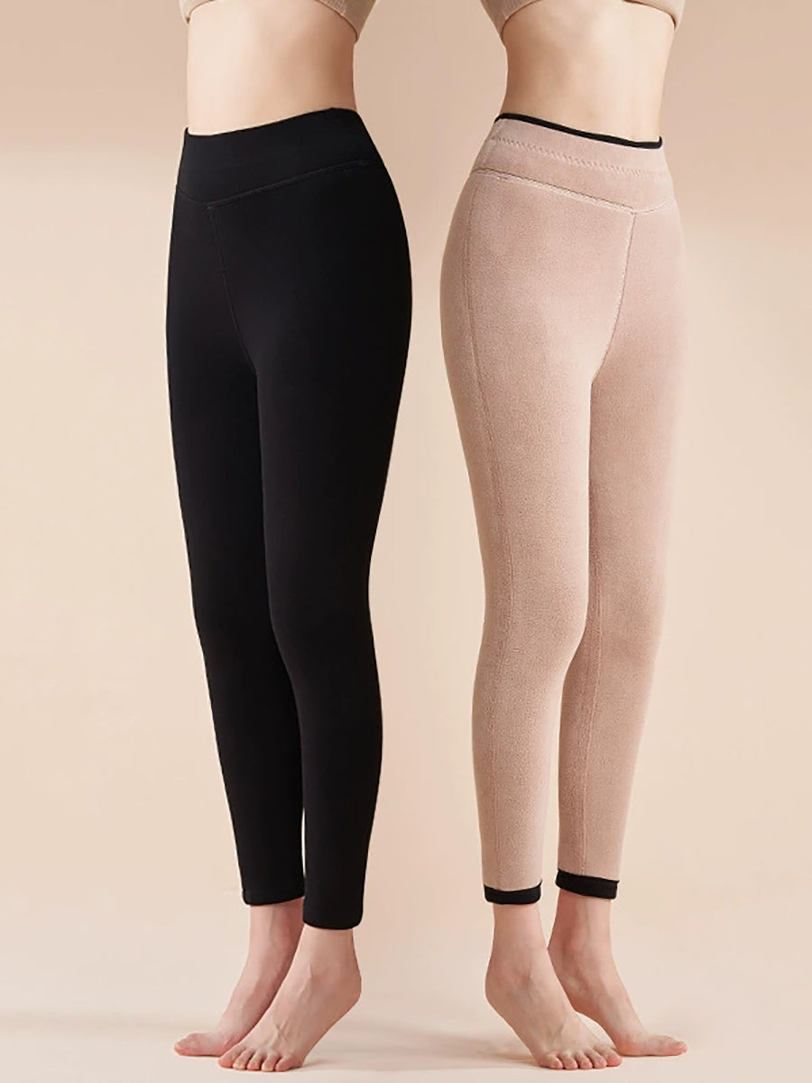 Leggings de otoño para mujer con forro polar de color puro y cálido