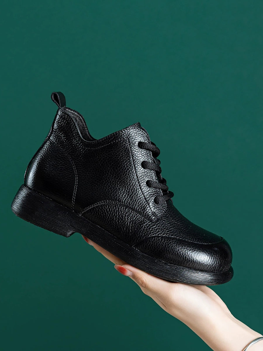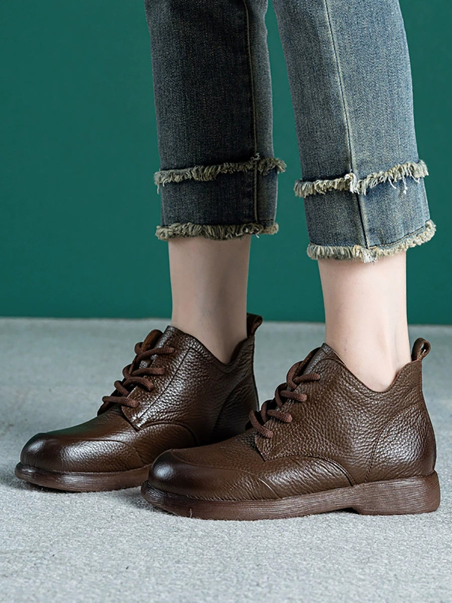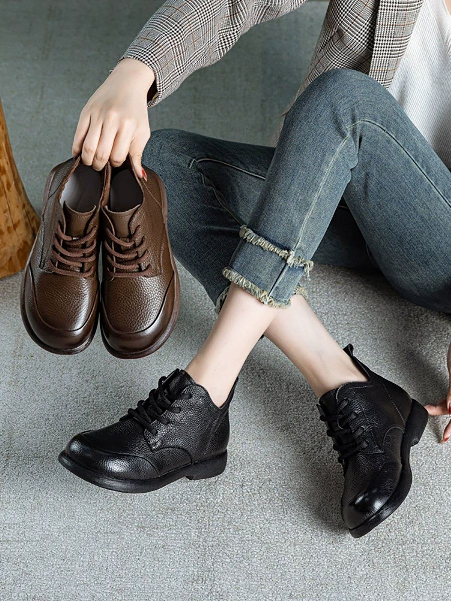 Botines casuales de piel auténtica de color puro para mujer