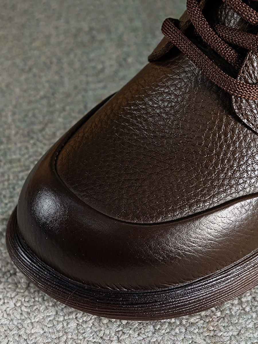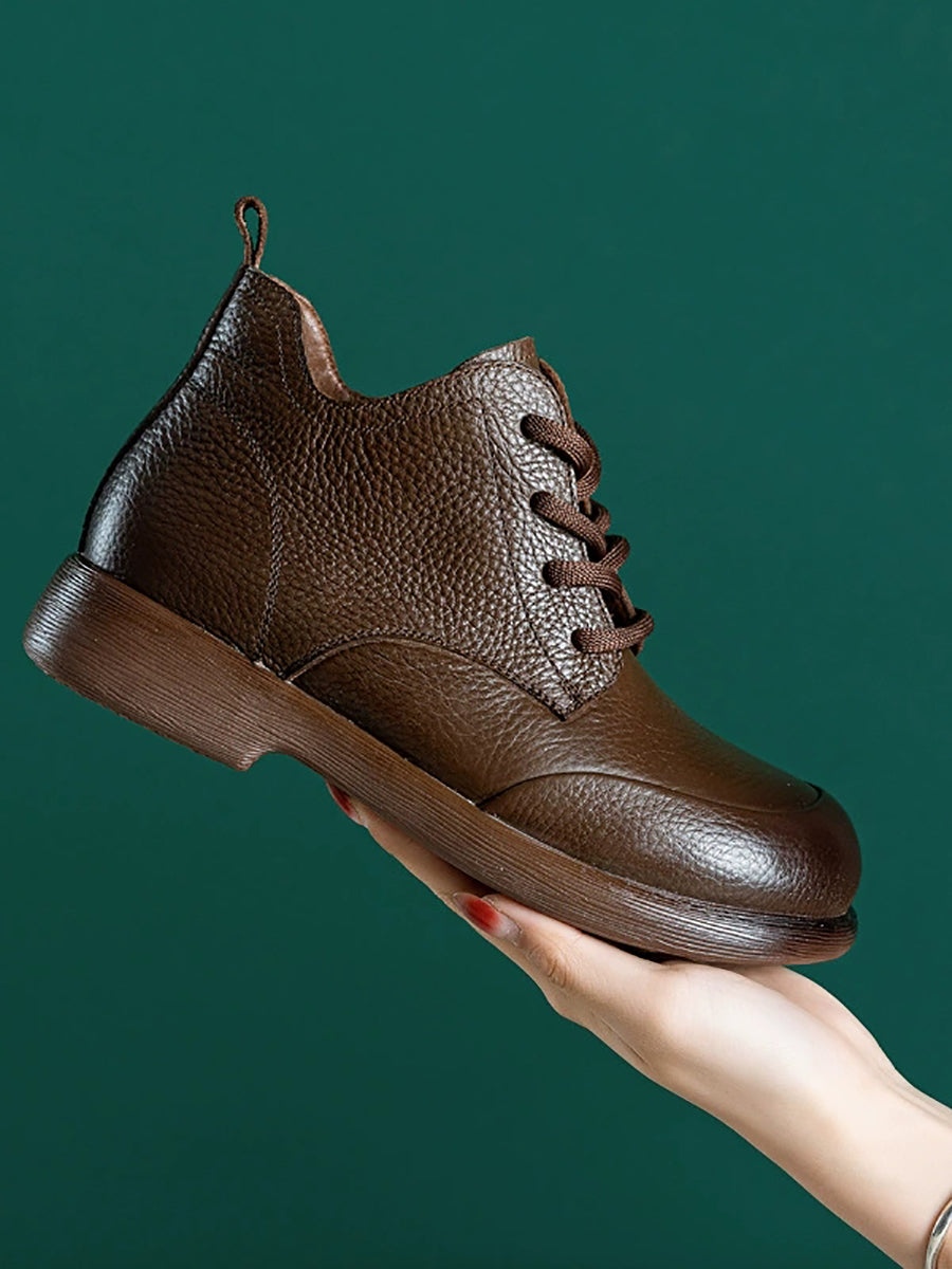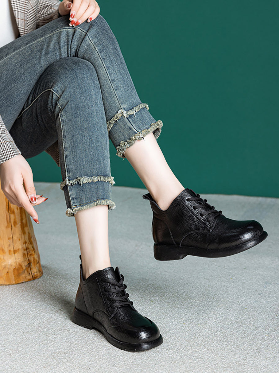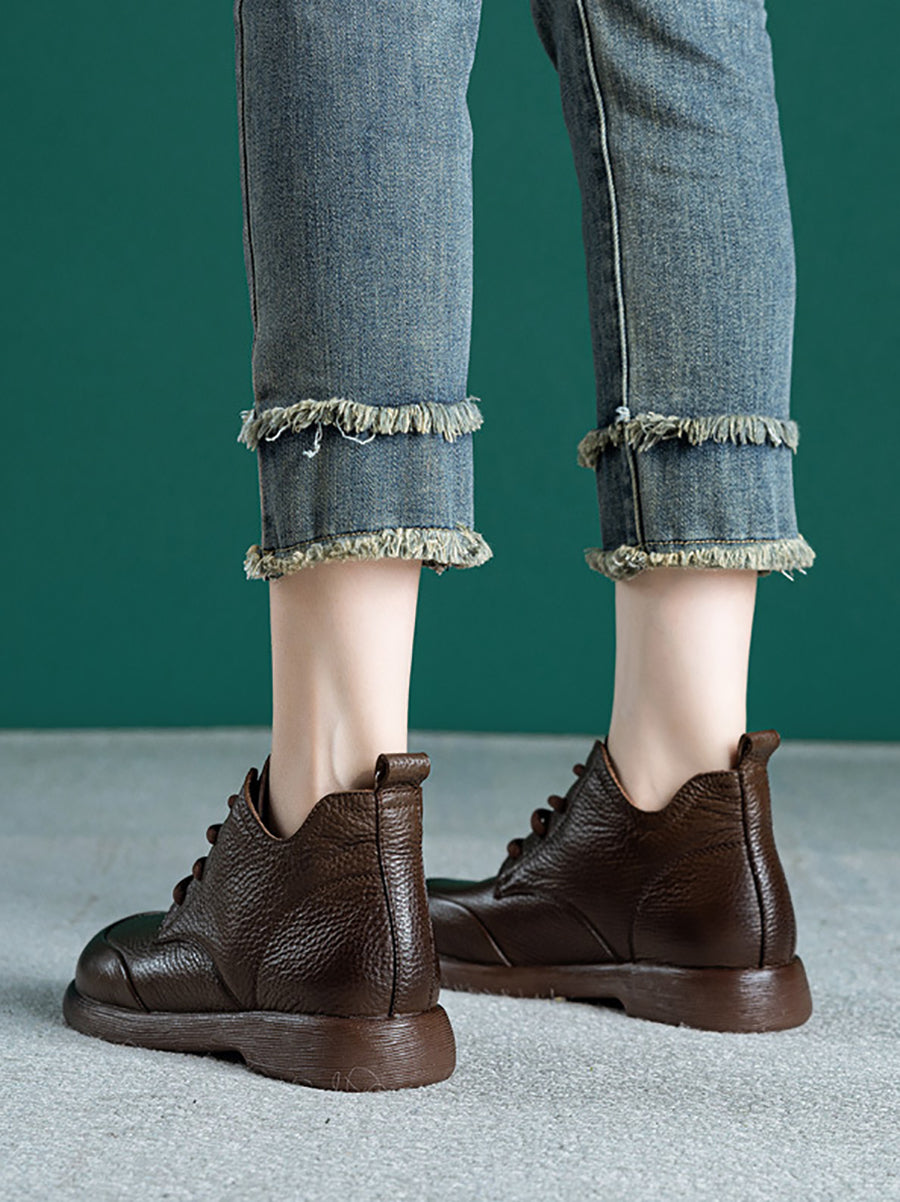 Botines casuales de piel auténtica de color puro para mujer