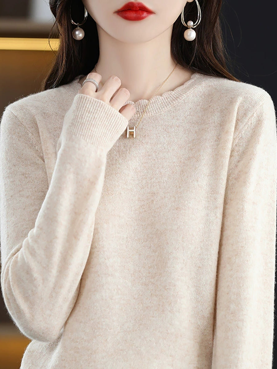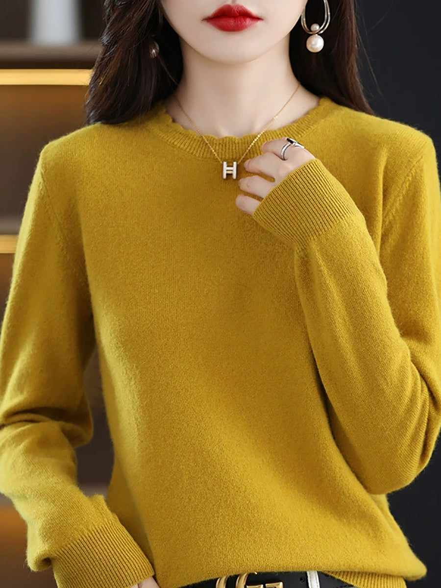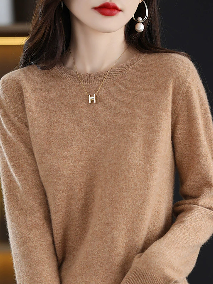 Suéter casual de primavera para mujer, color puro, cuello redondo