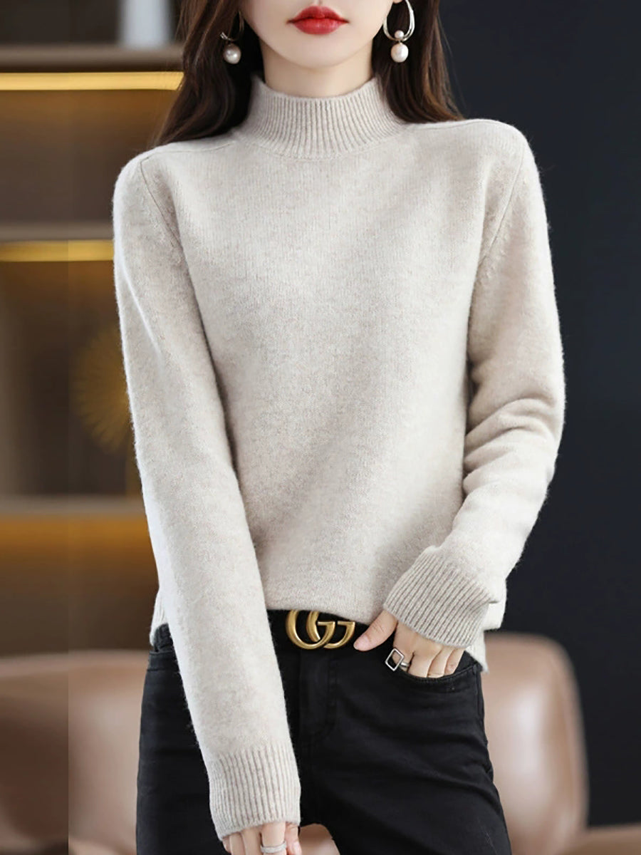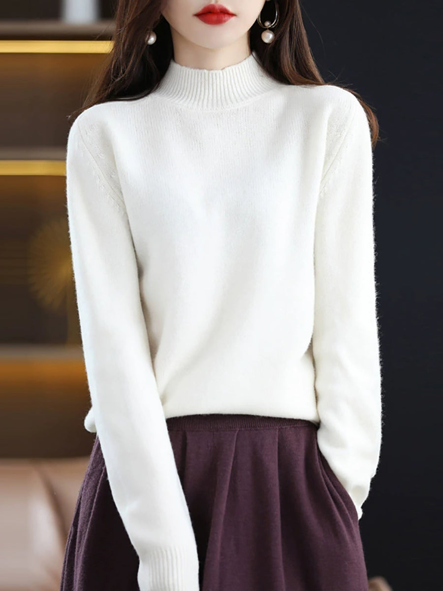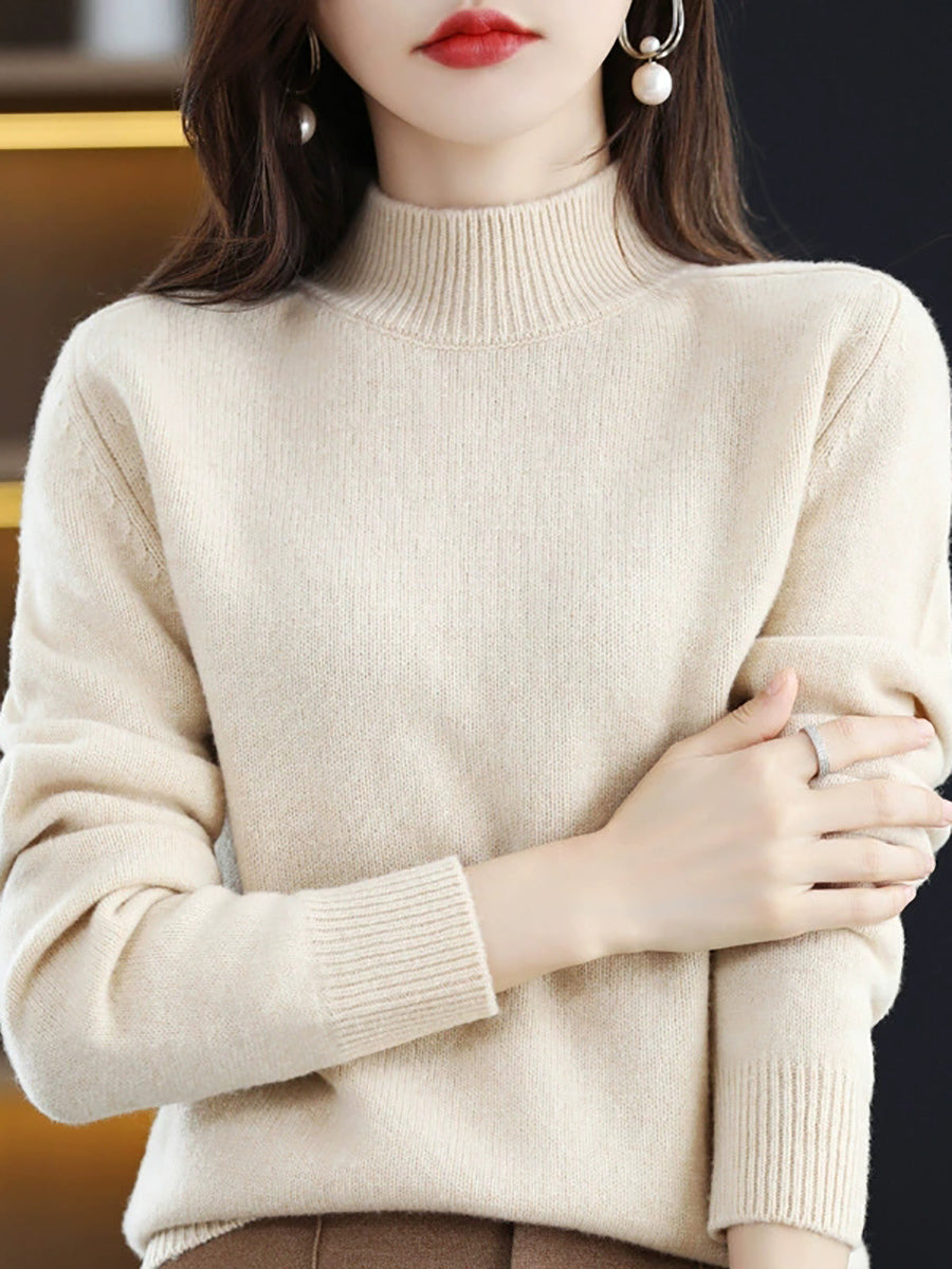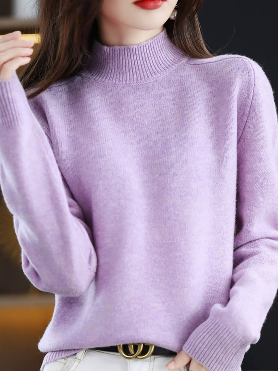 Suéter informal de invierno de color puro con cuello alto medio para mujer
