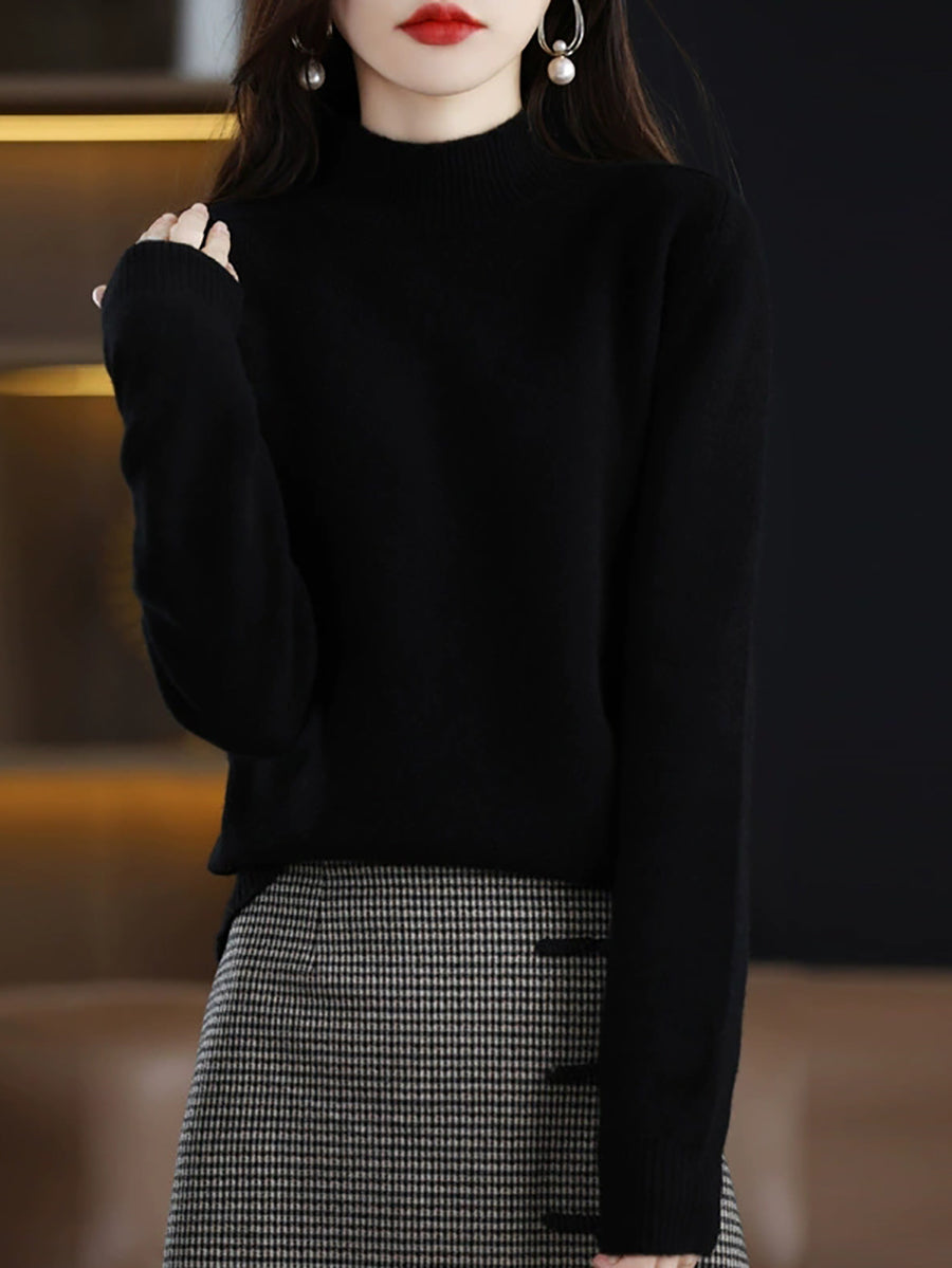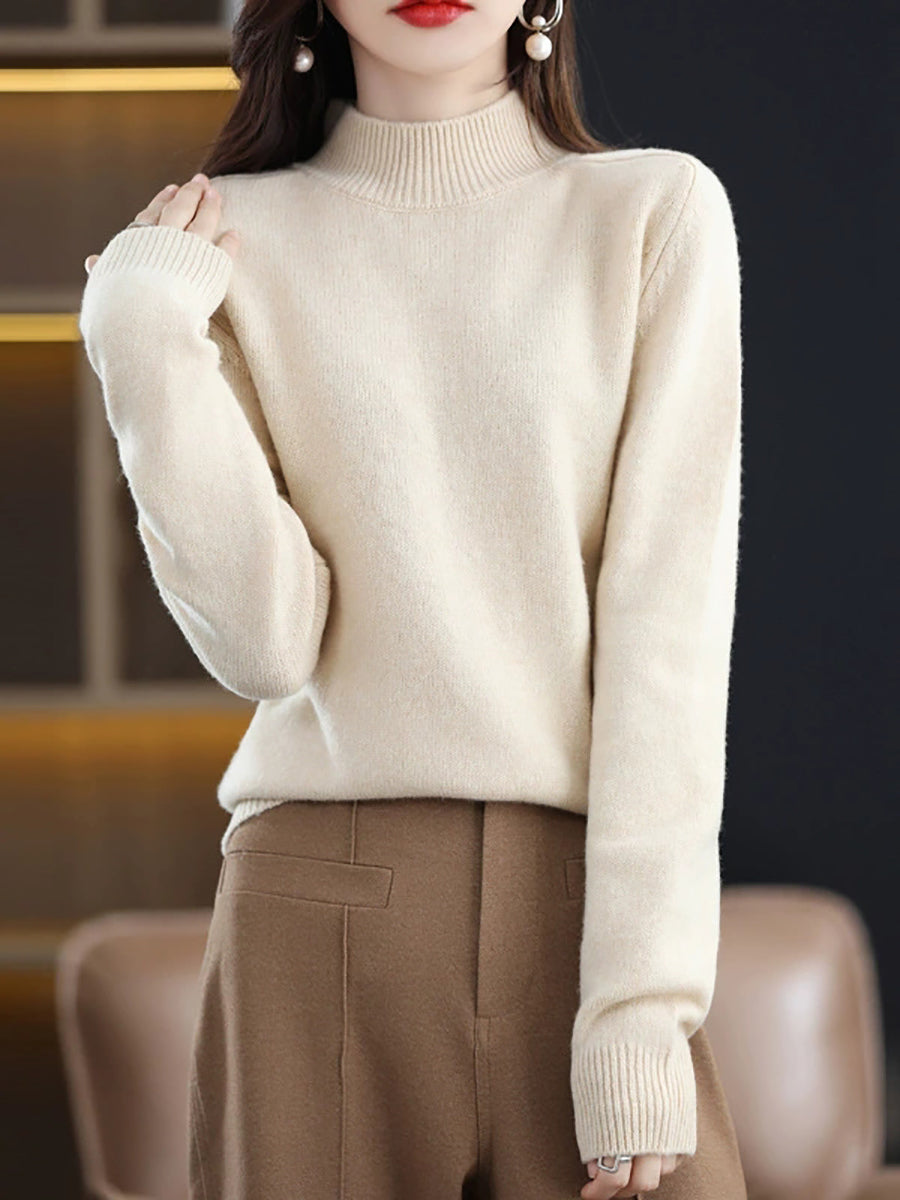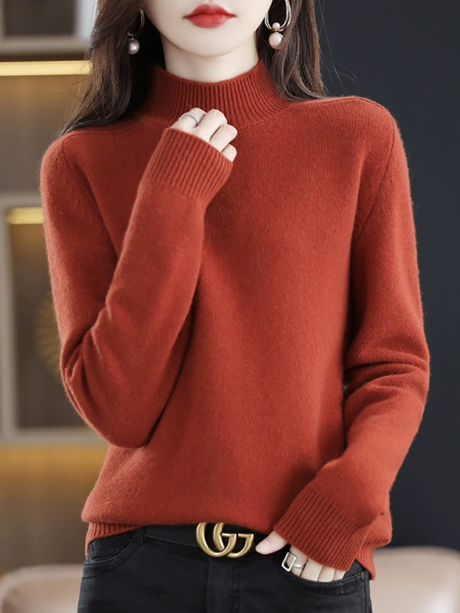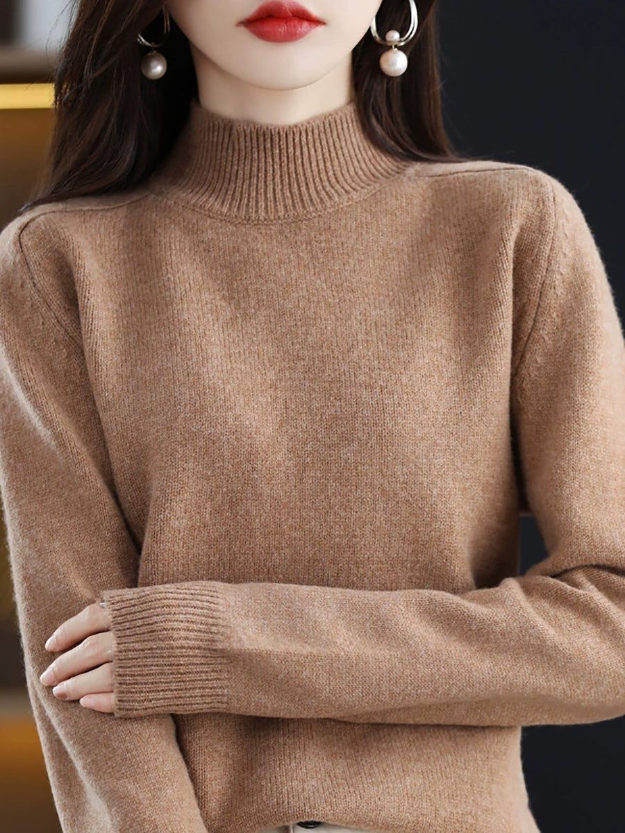 Suéter informal de invierno de color puro con cuello alto medio para mujer