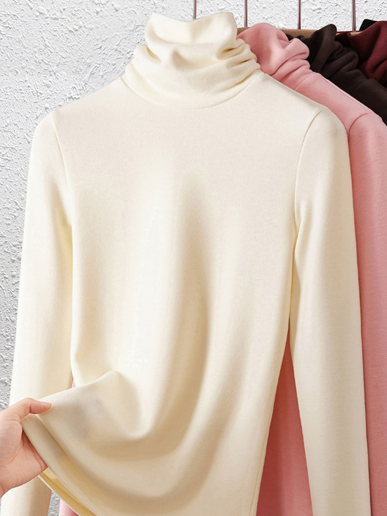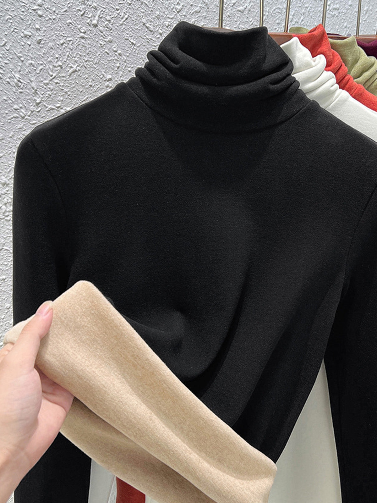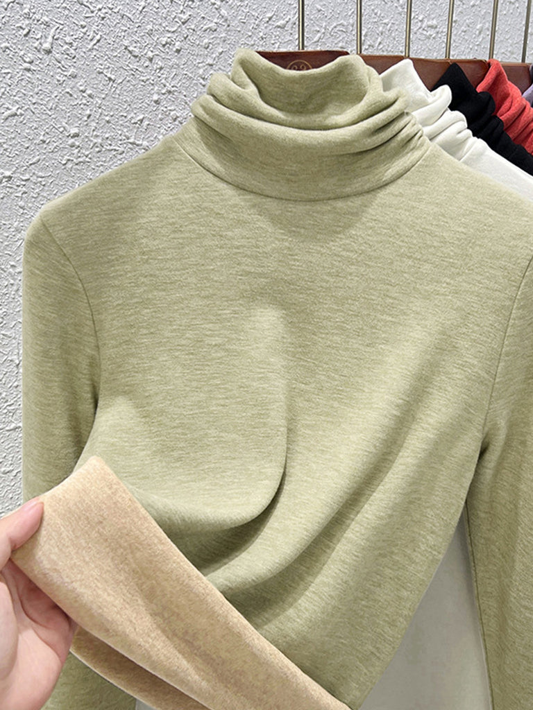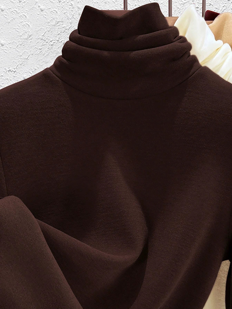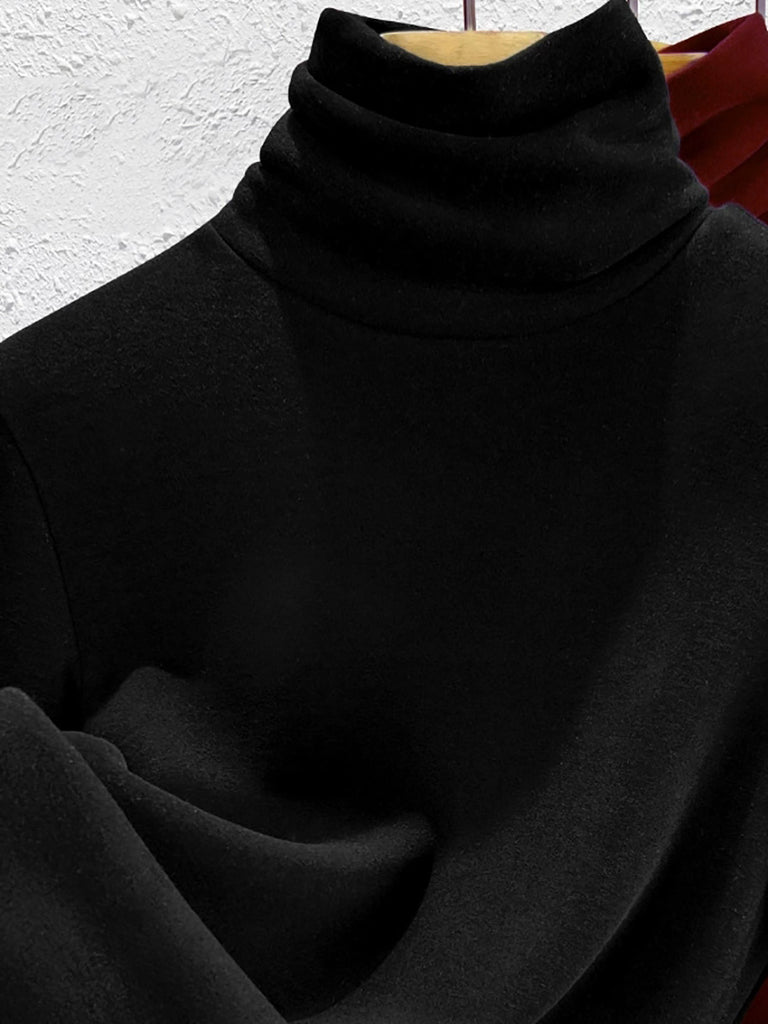 Blusa básica de cuello alto de color liso para mujer, estilo casual de invierno.