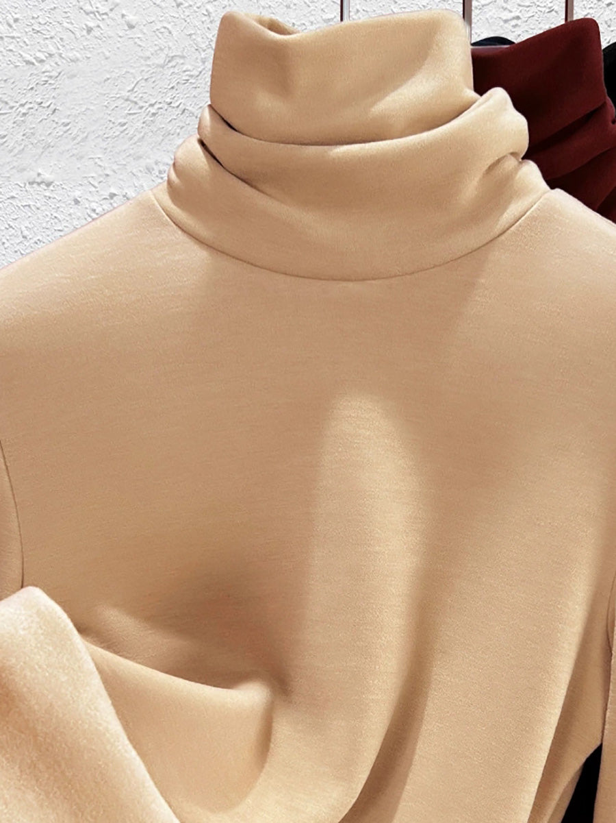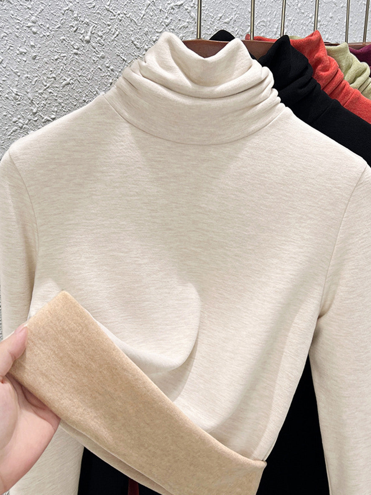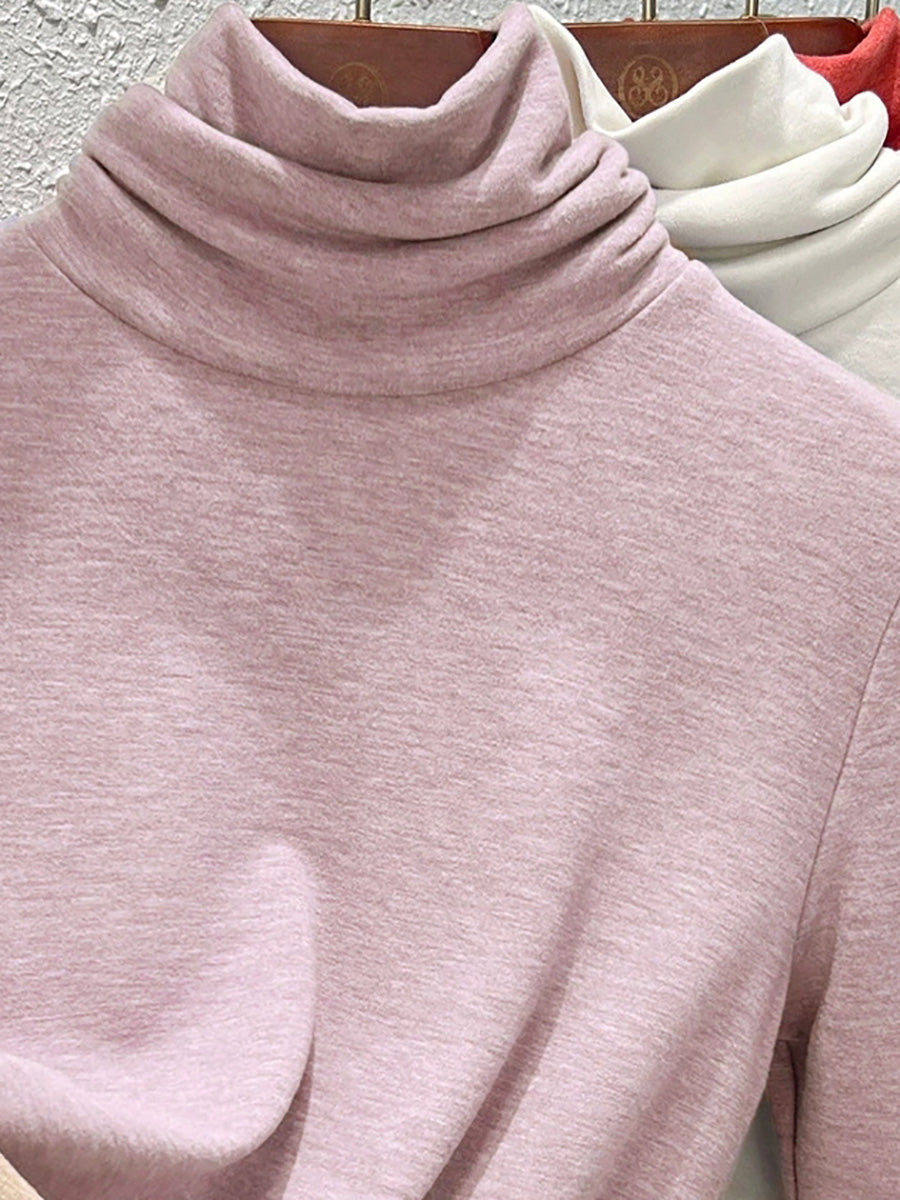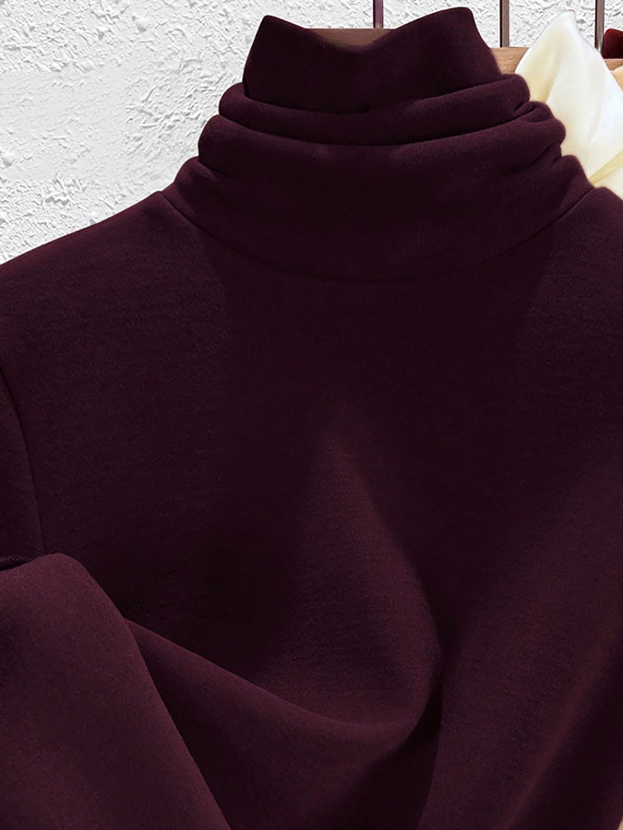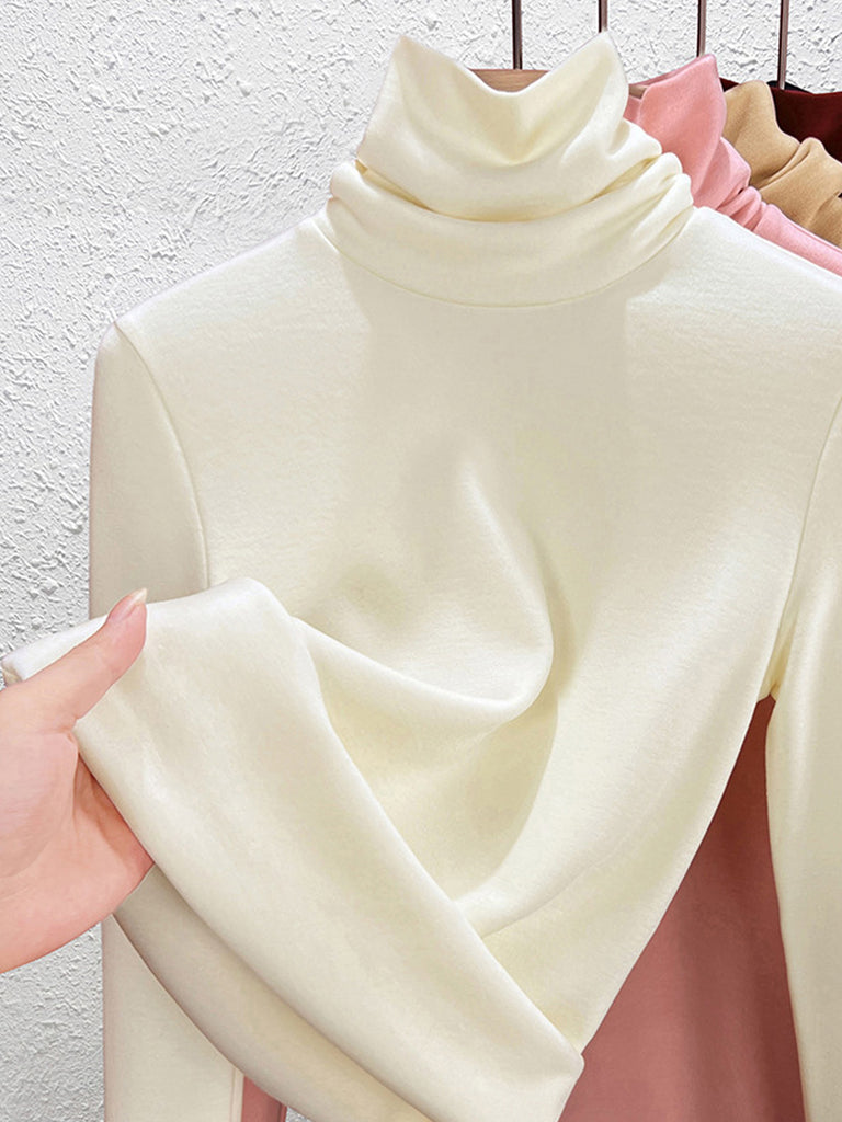 Blusa básica de cuello alto de color liso para mujer, estilo casual de invierno.