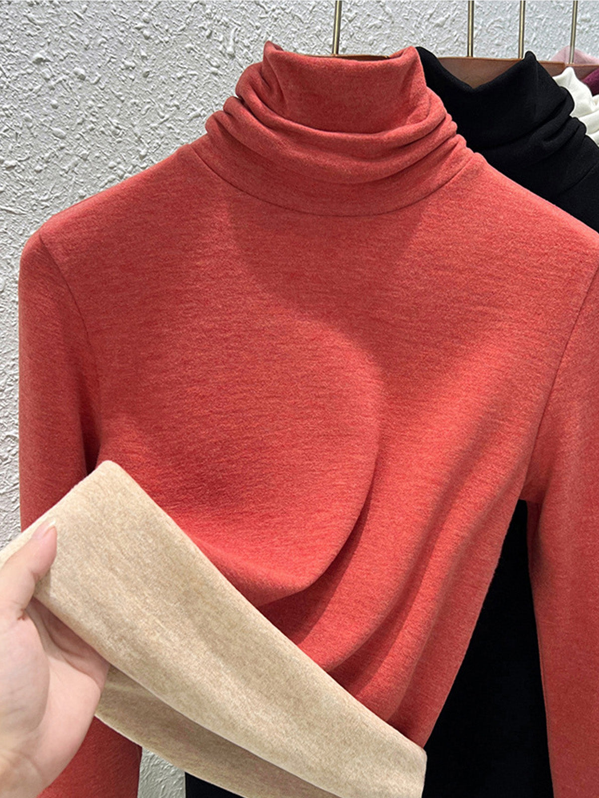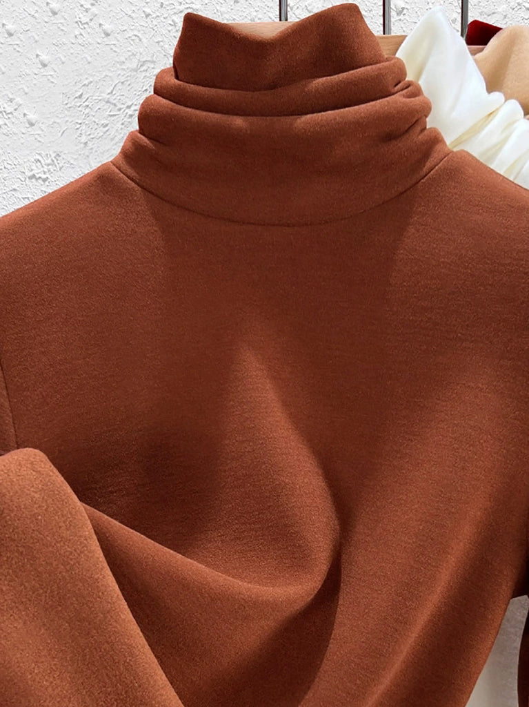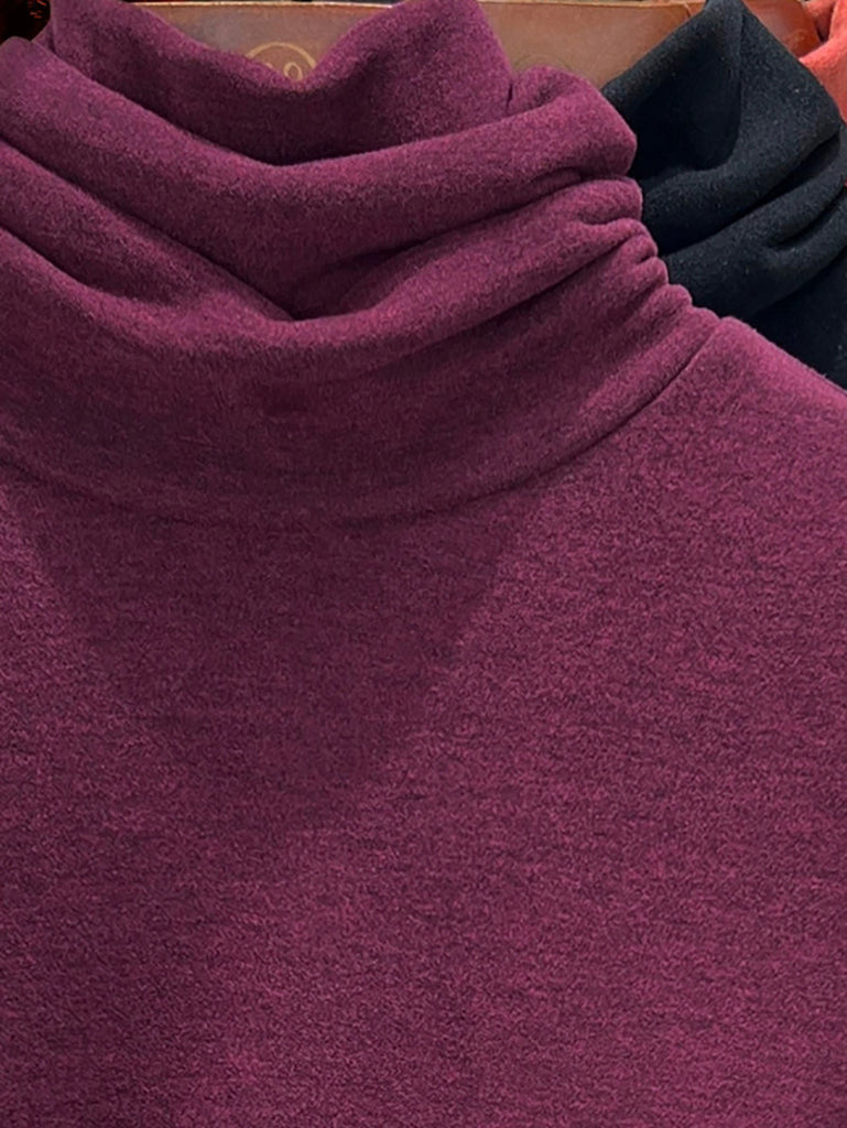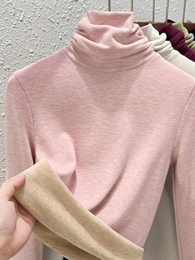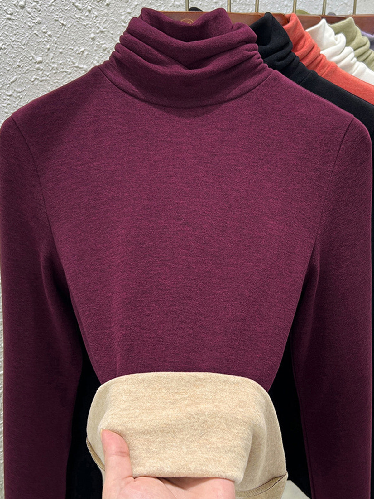 Blusa básica de cuello alto de color liso para mujer, estilo casual de invierno.