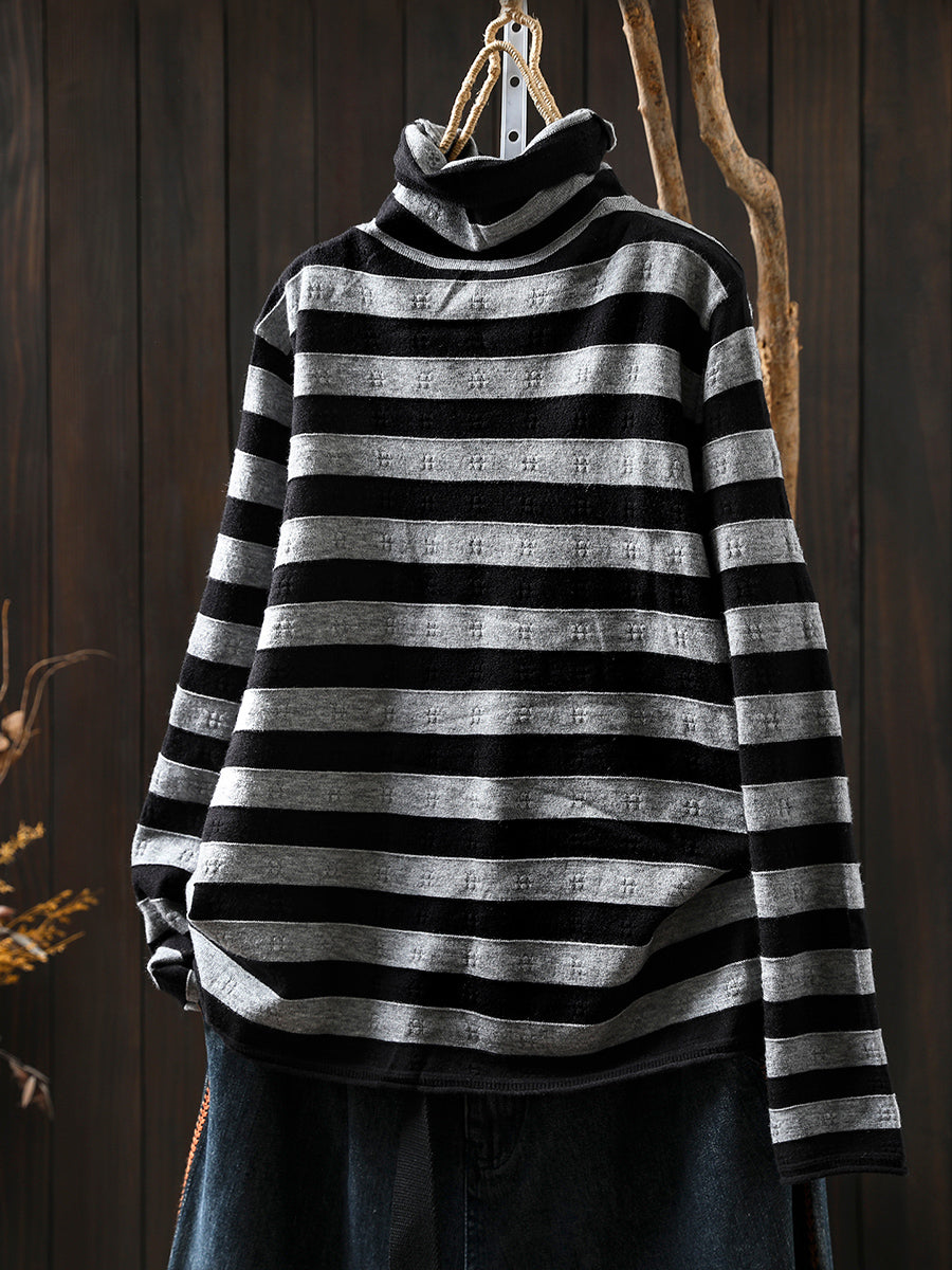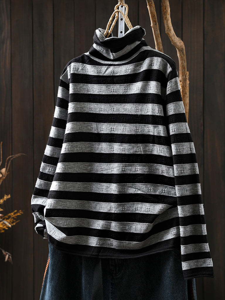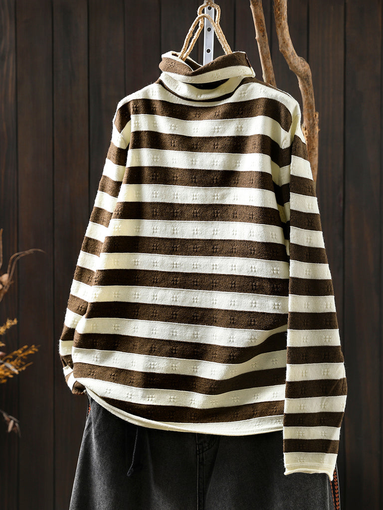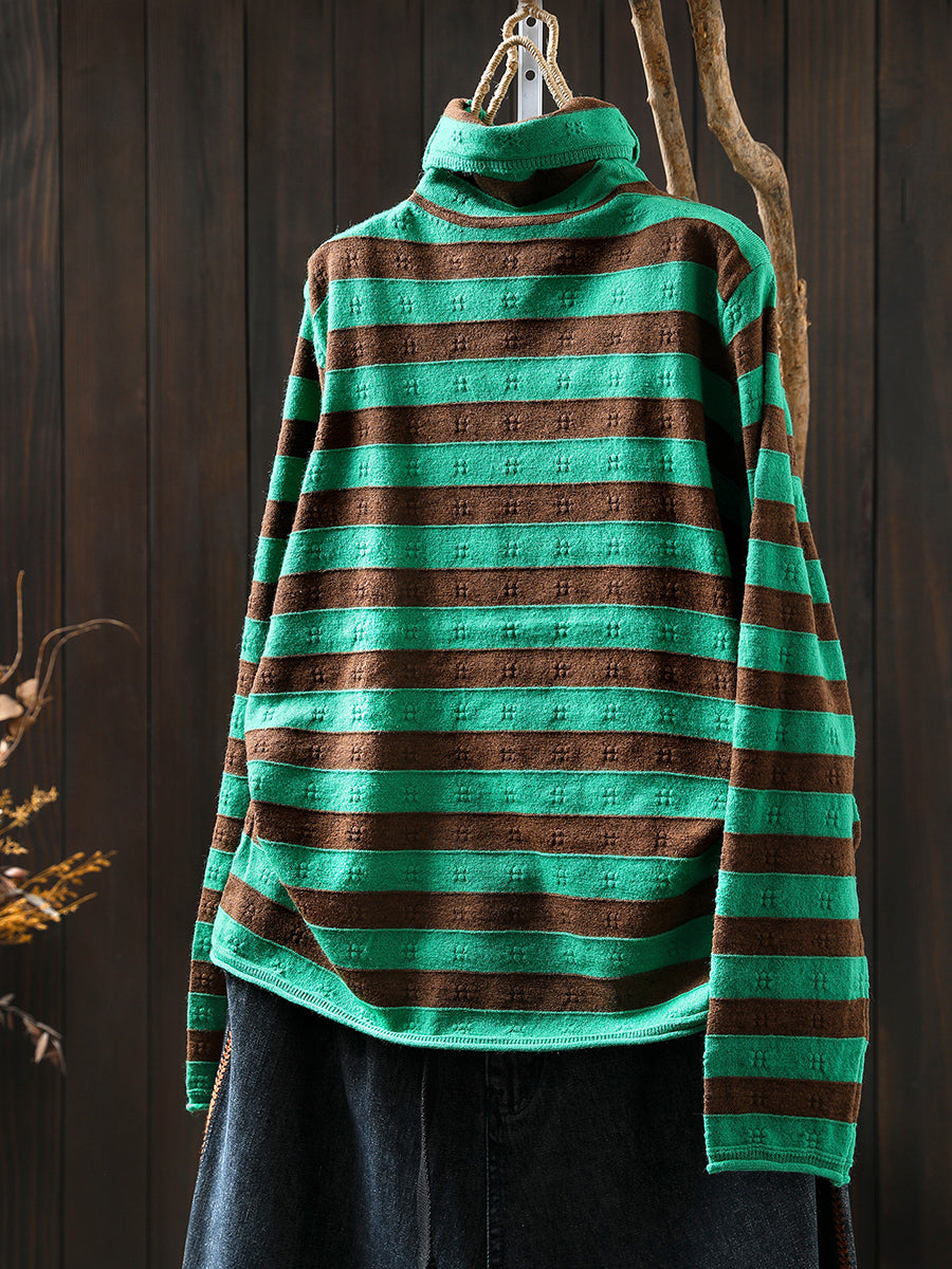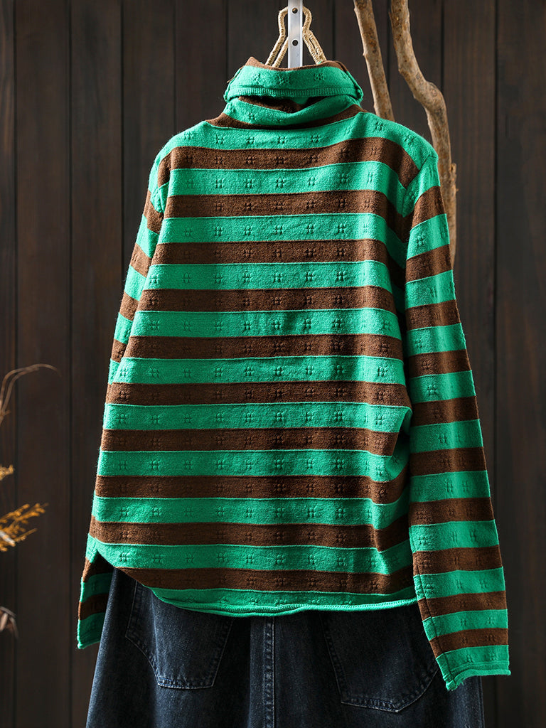 Blusa informal de cuello alto a rayas de invierno para mujer