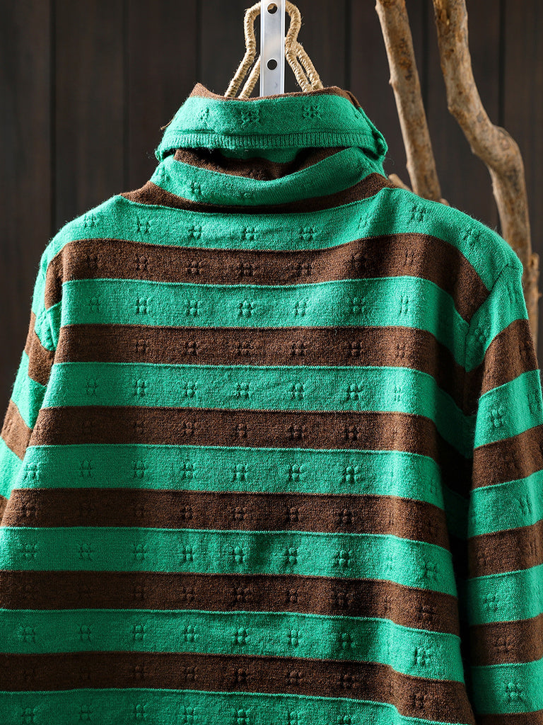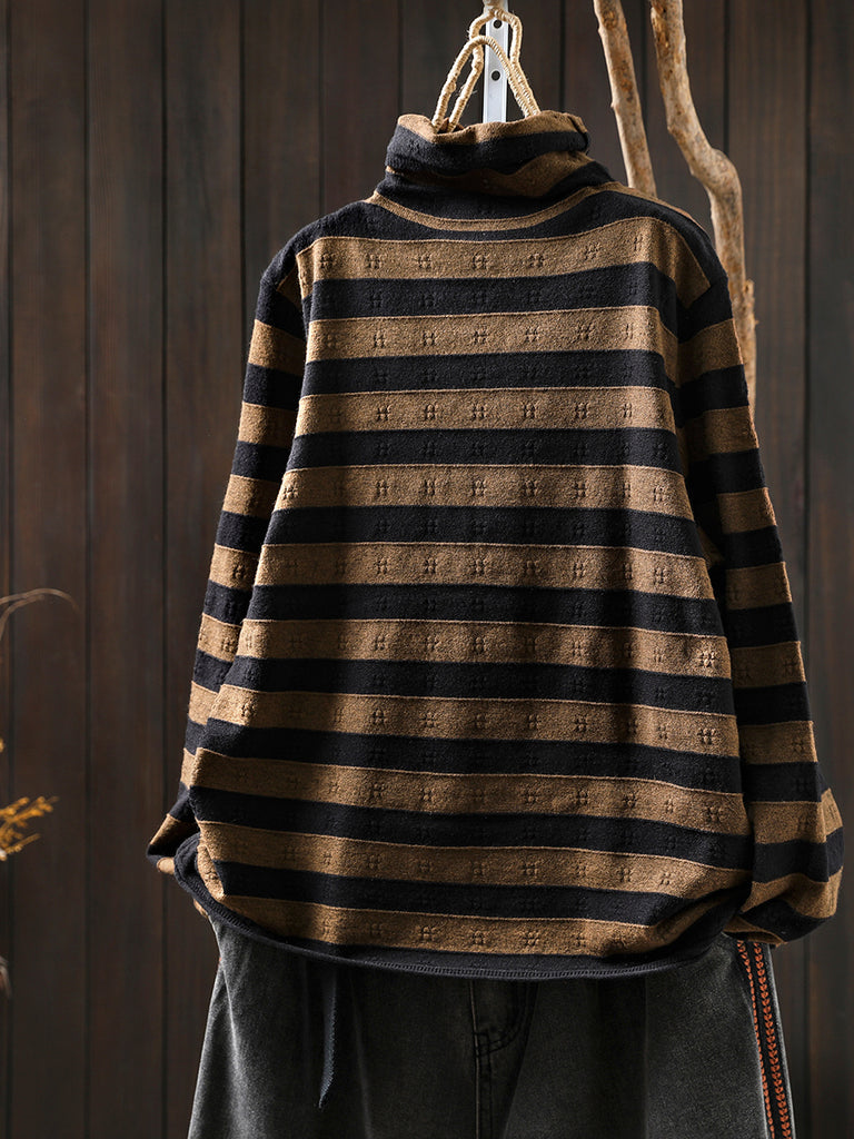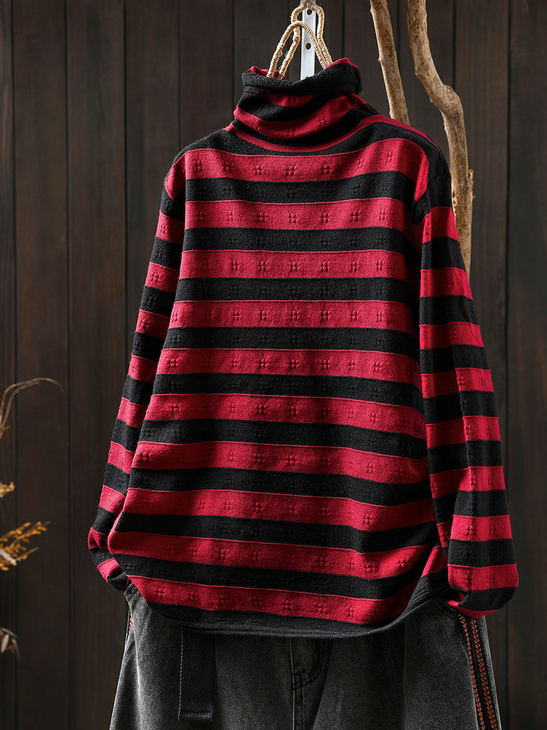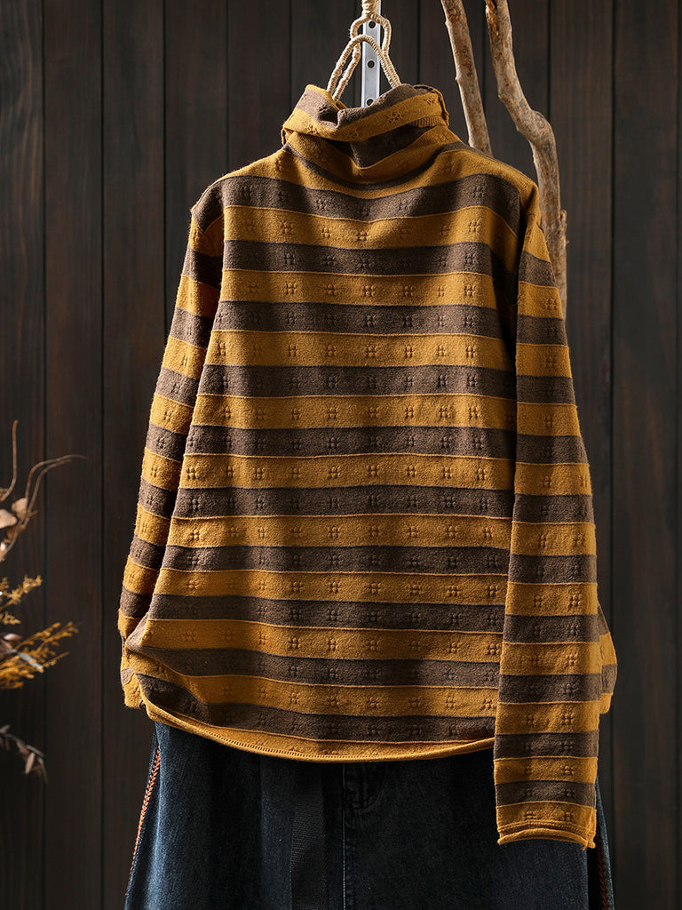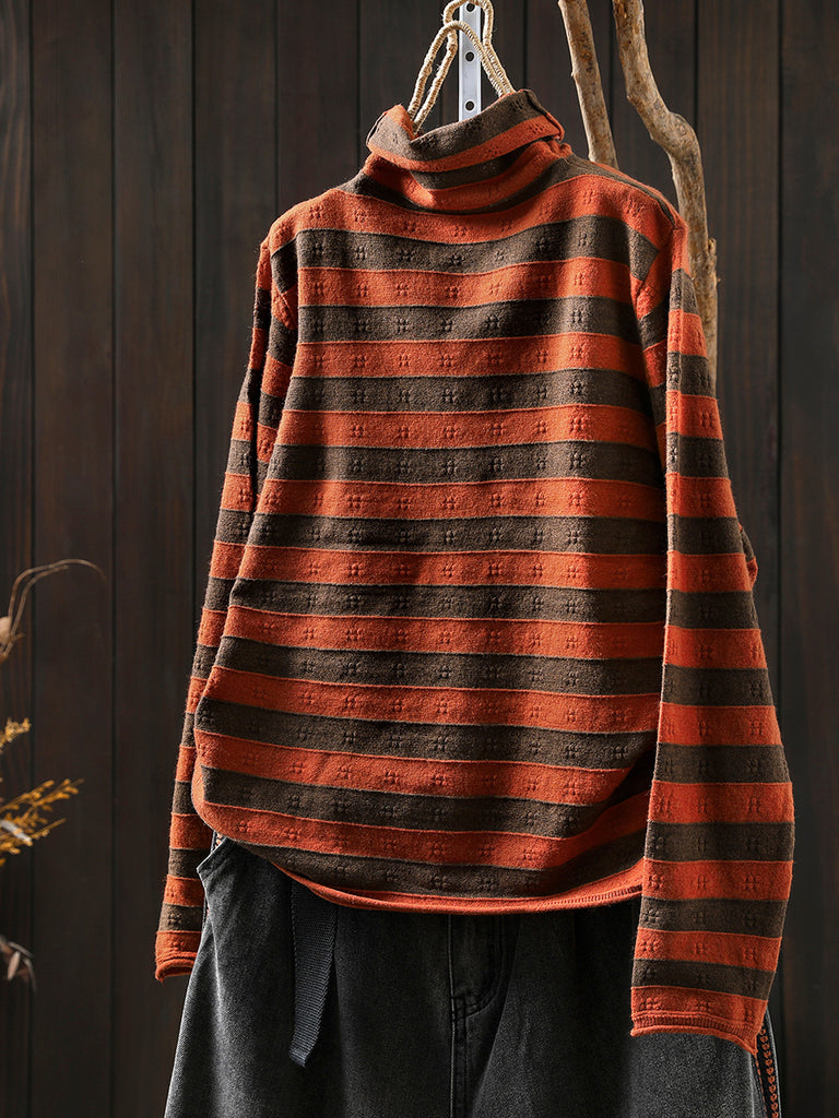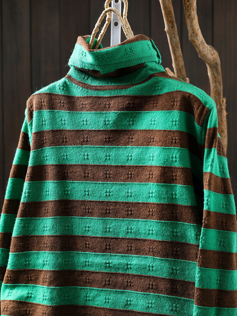 Blusa informal de cuello alto a rayas de invierno para mujer