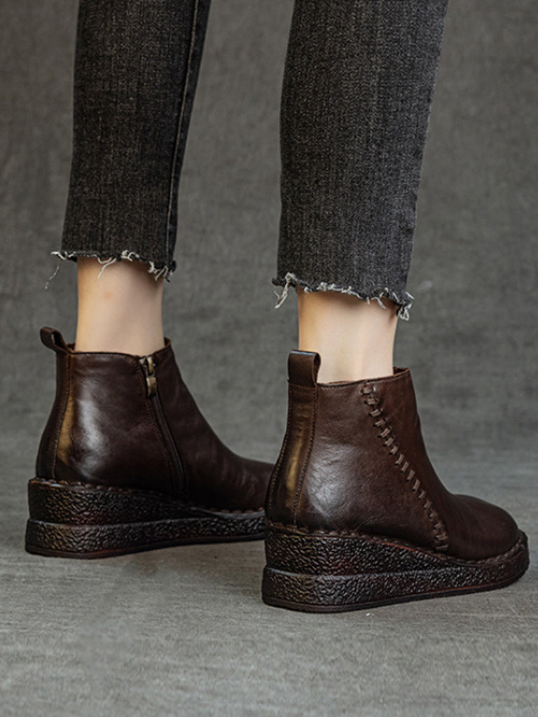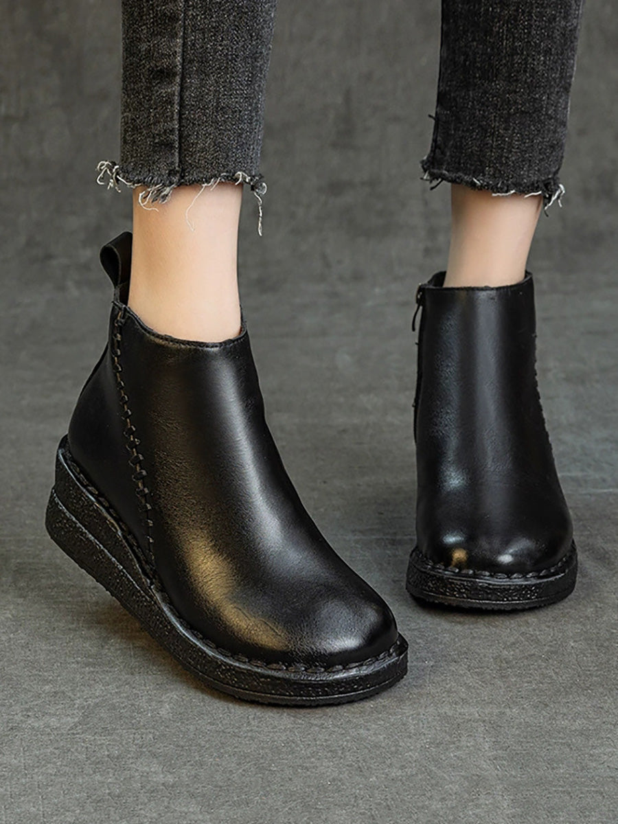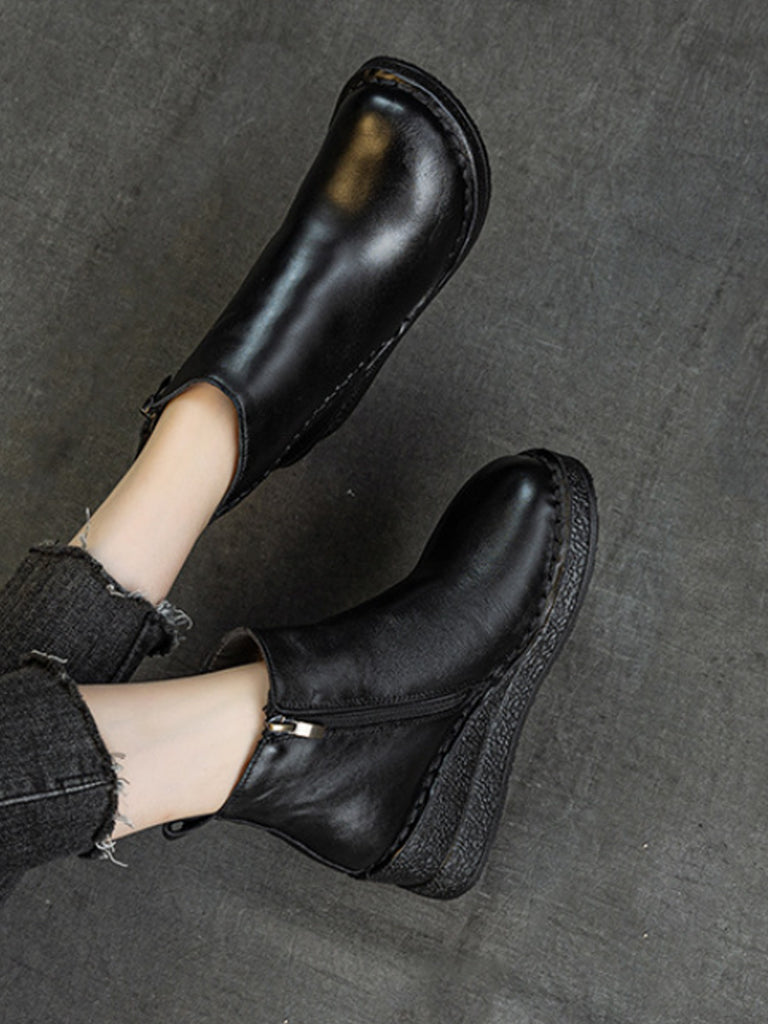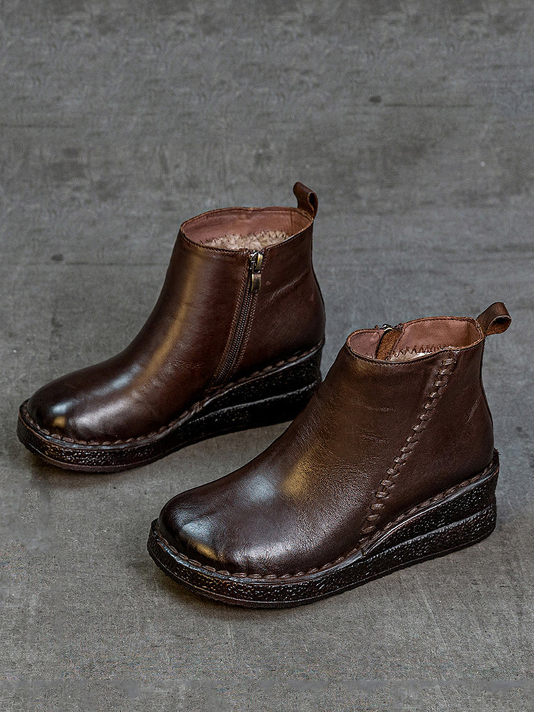 Botines de plataforma de piel auténtica para mujer con forro polar