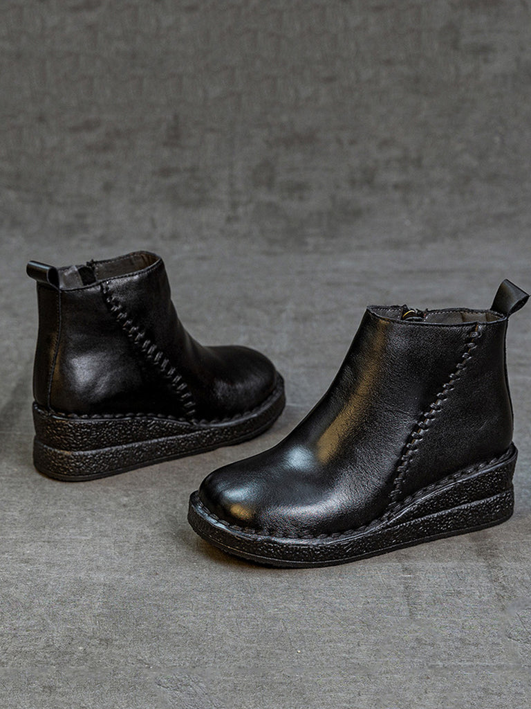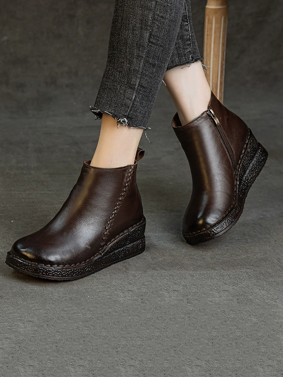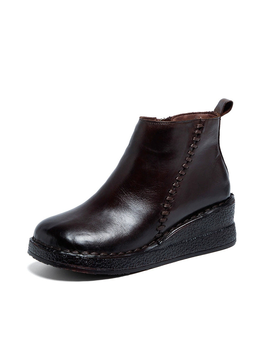 Botines de plataforma de piel auténtica para mujer con forro polar