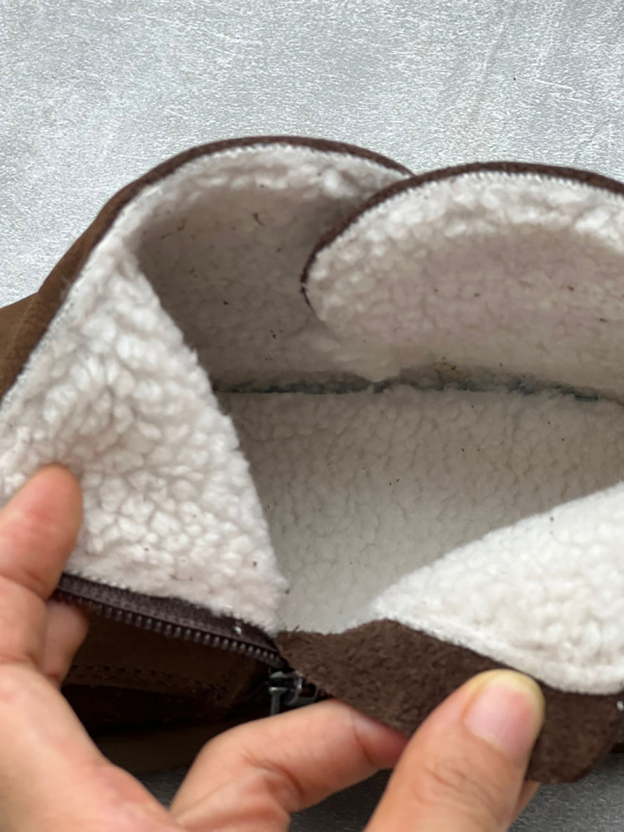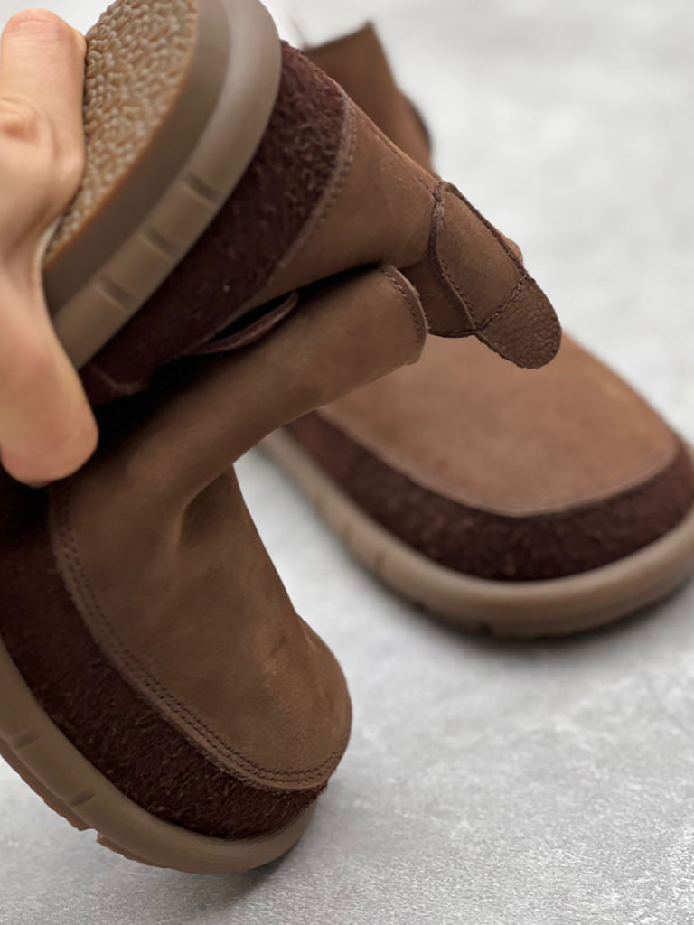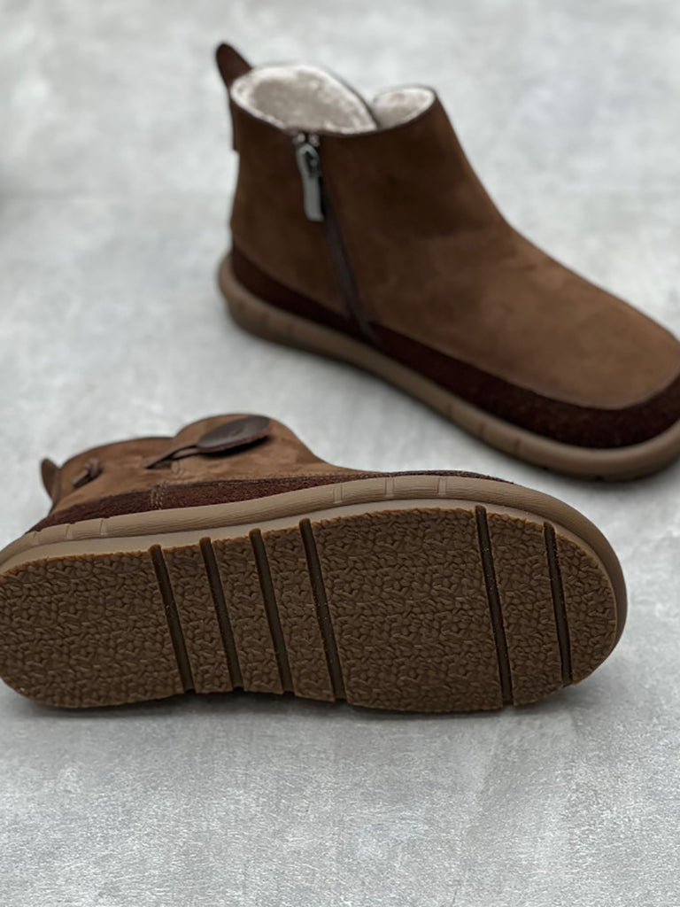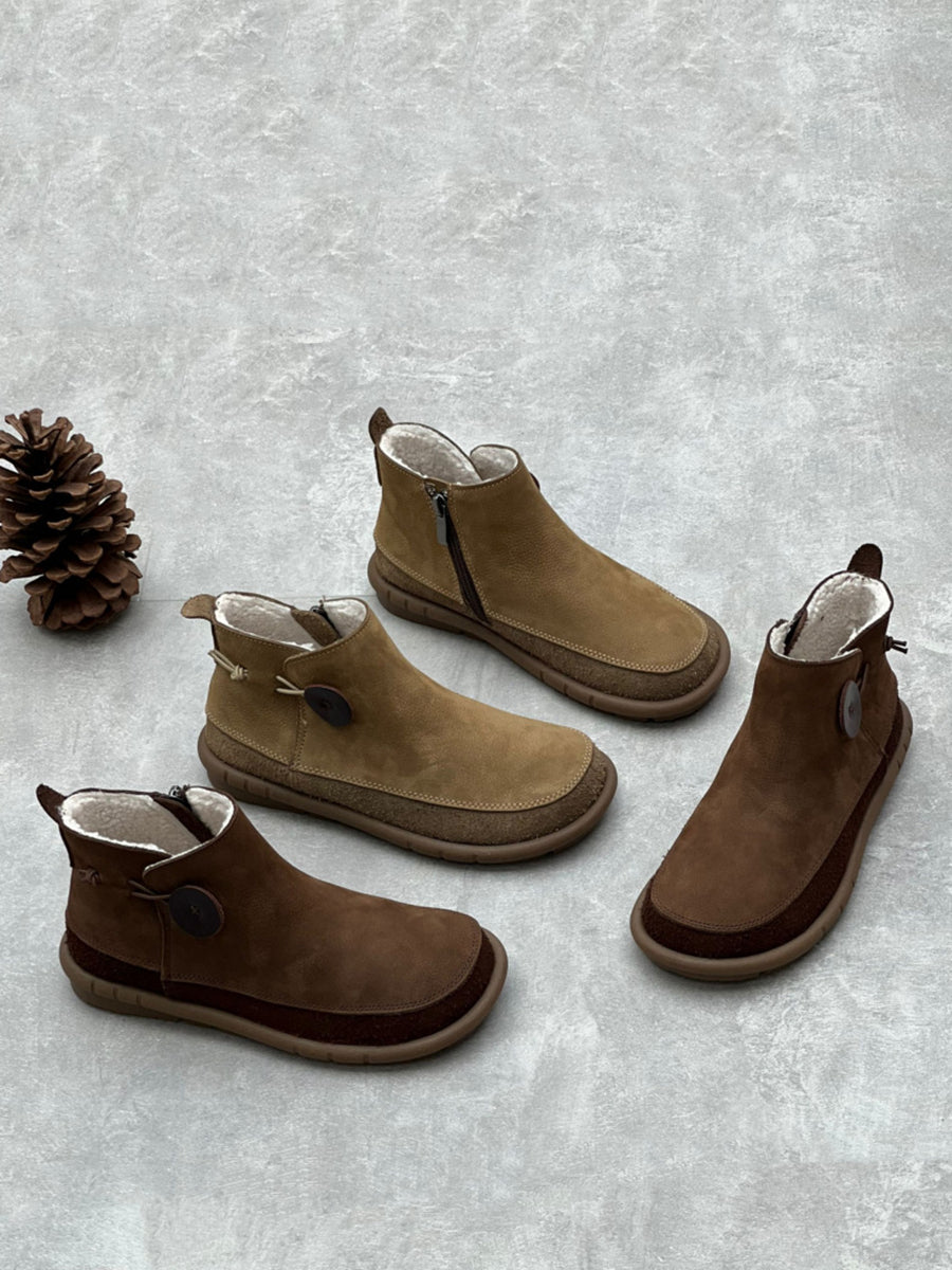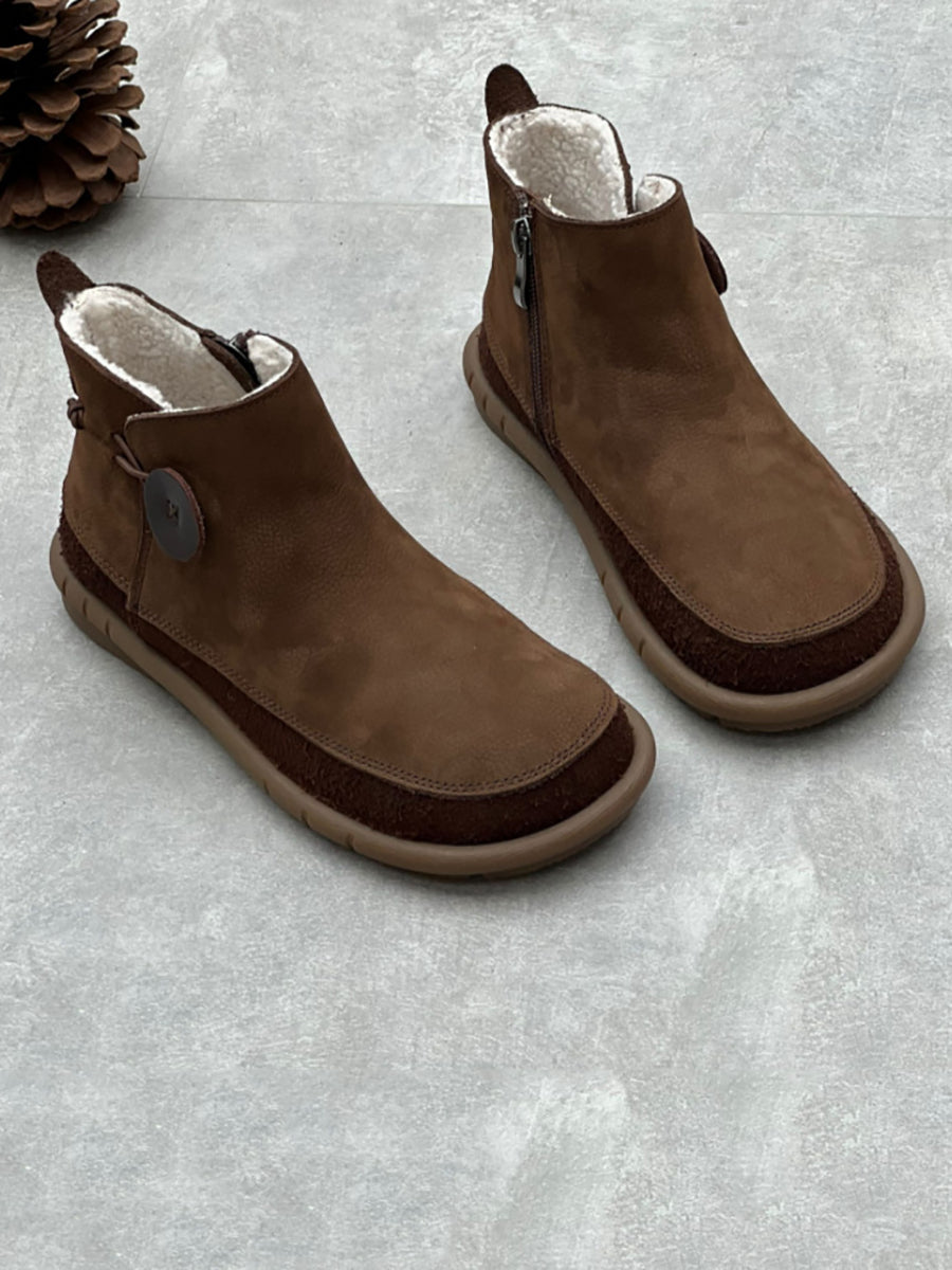 Zapatos planos retro de piel auténtica con forro polar para mujer
