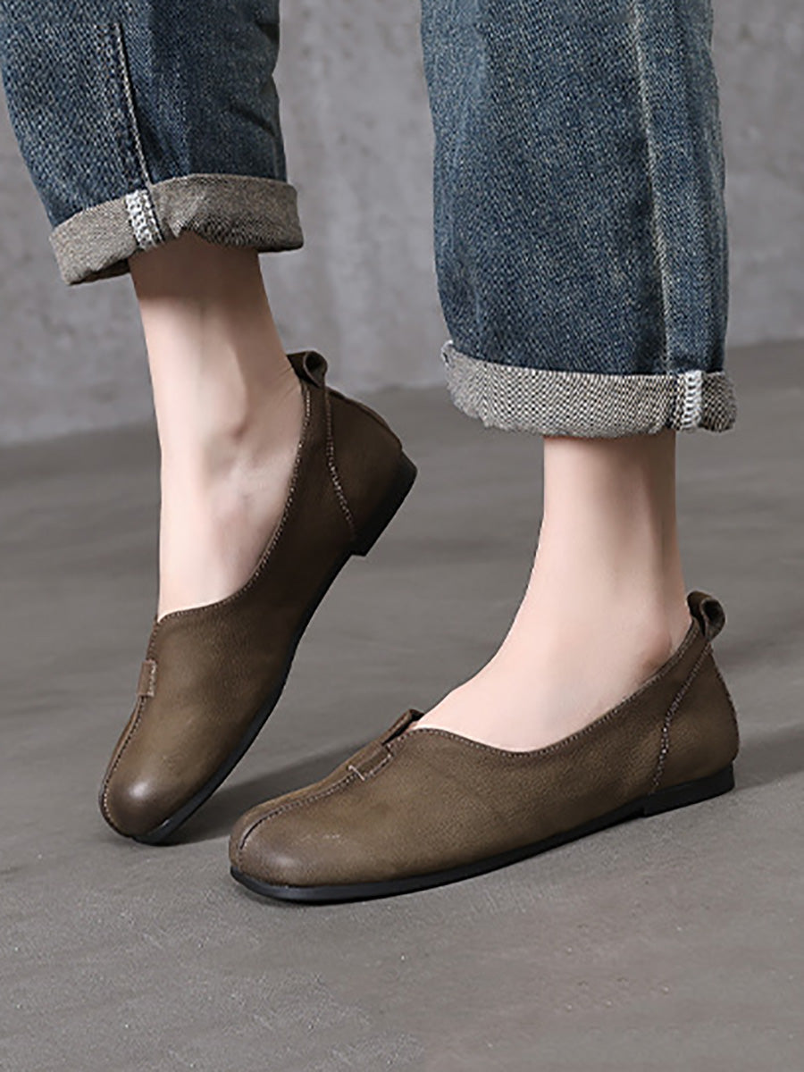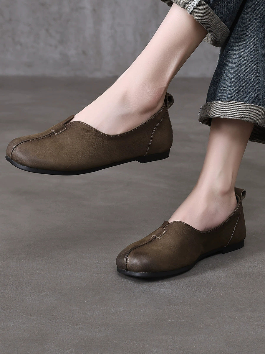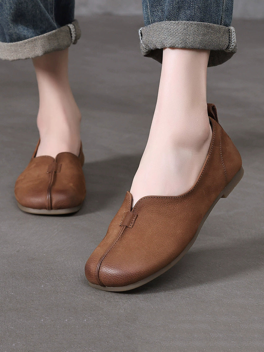 Zapatos retro de piel auténtica con detalles suaves para mujer