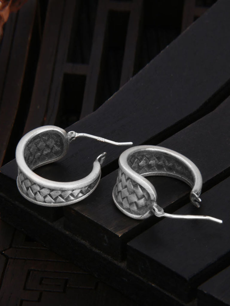 Pendientes de tuerca con diseño retro de plata S925 para mujer