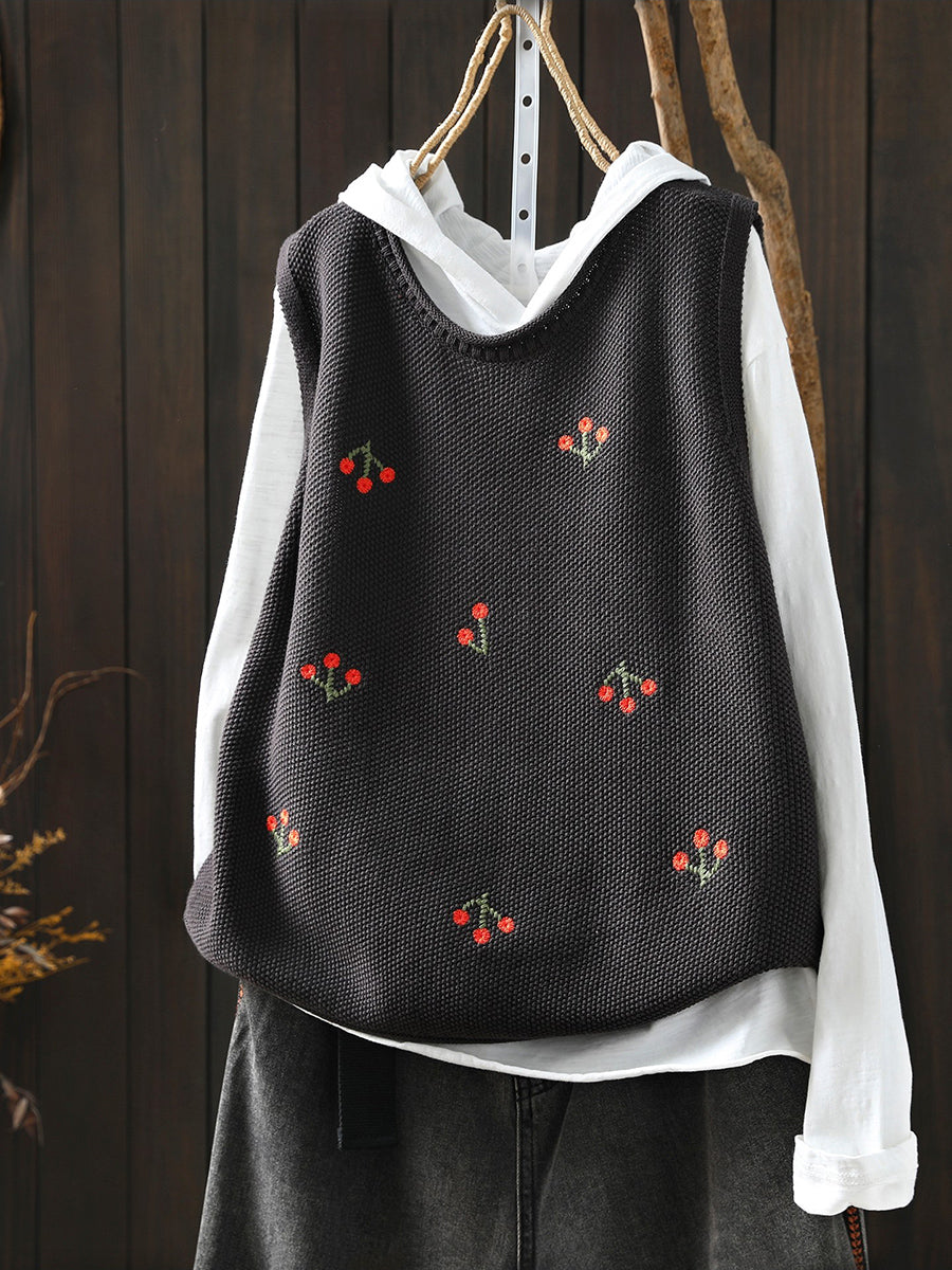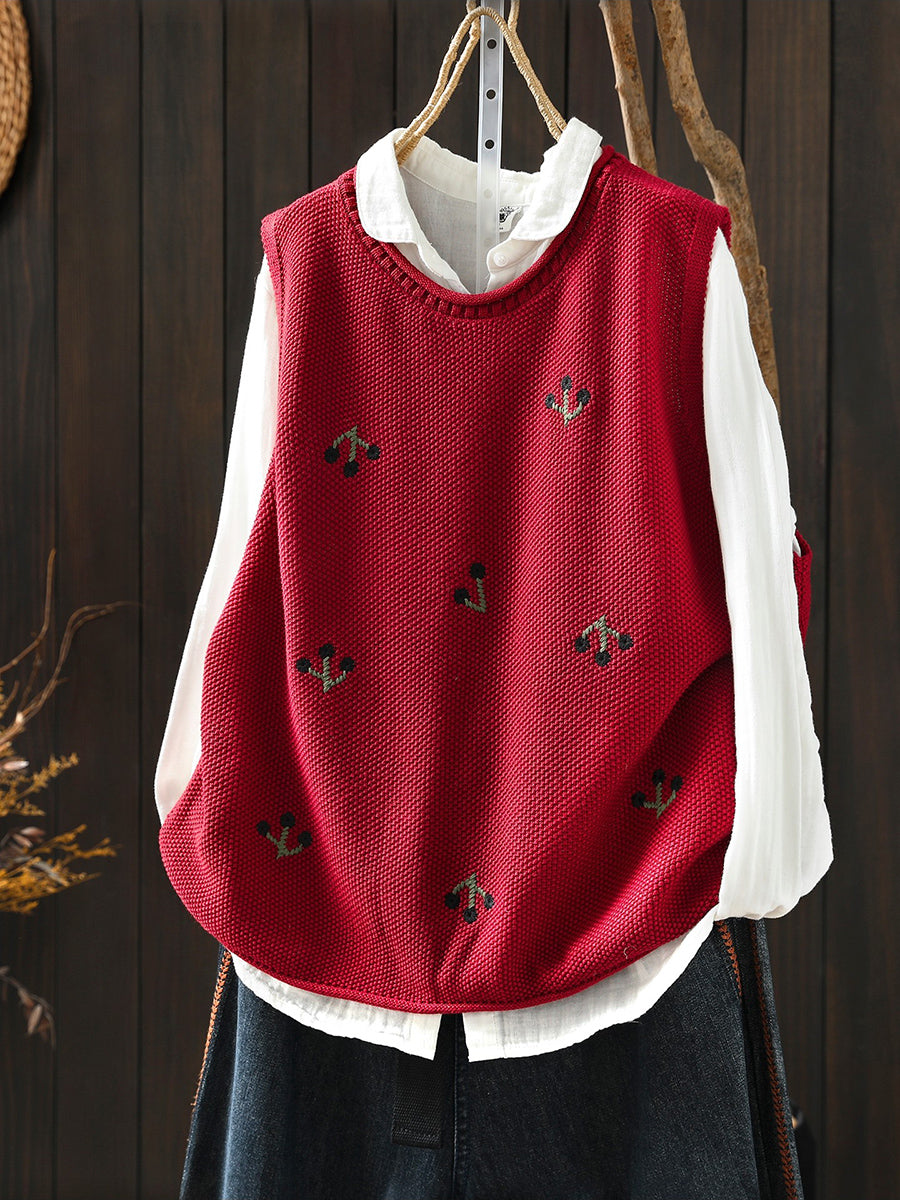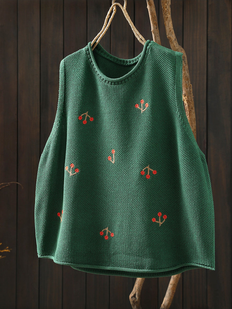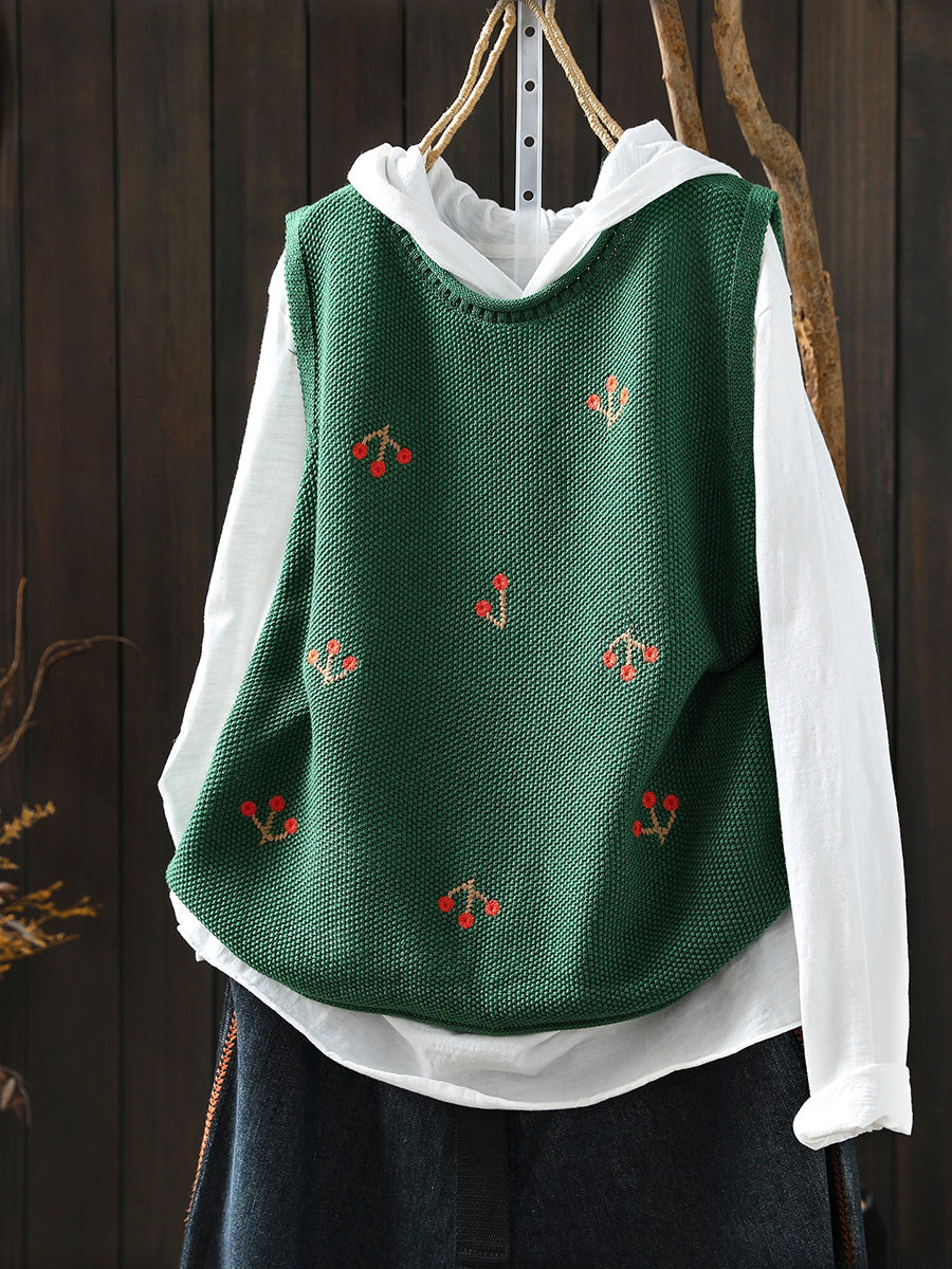Chaleco de primavera con cuello redondo y bordado de cerezas artísticas para mujer