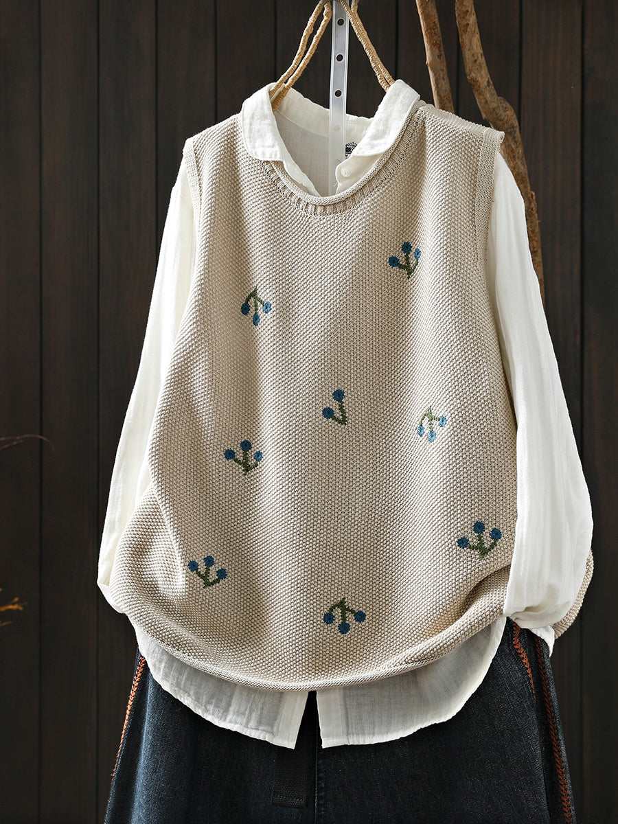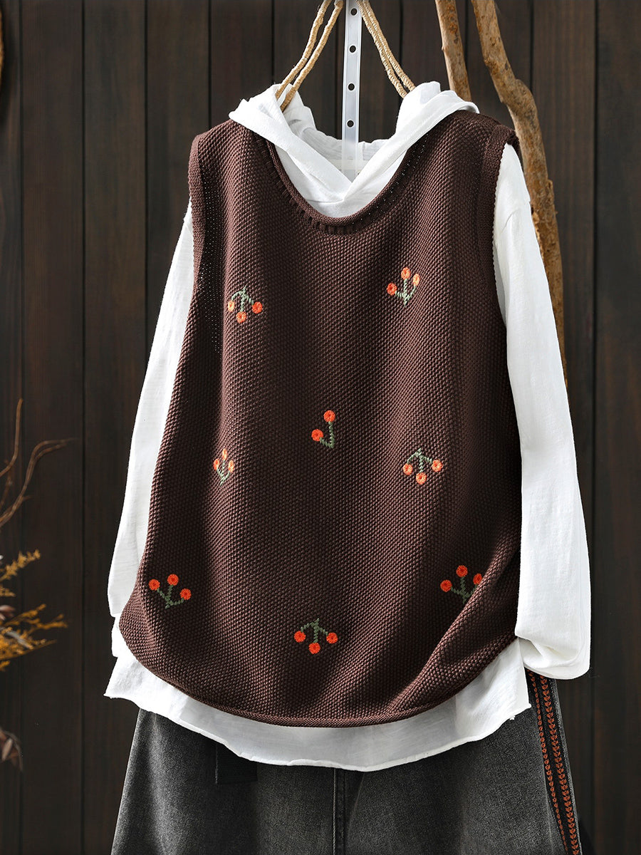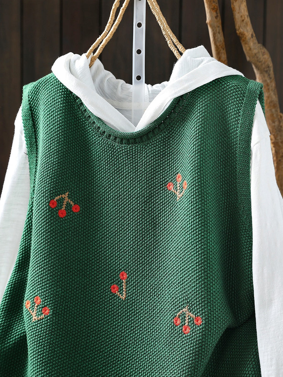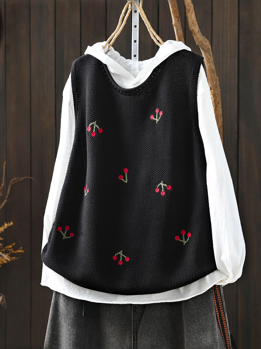 Chaleco de primavera con cuello redondo y bordado de cerezas artísticas para mujer