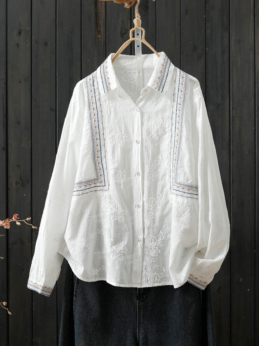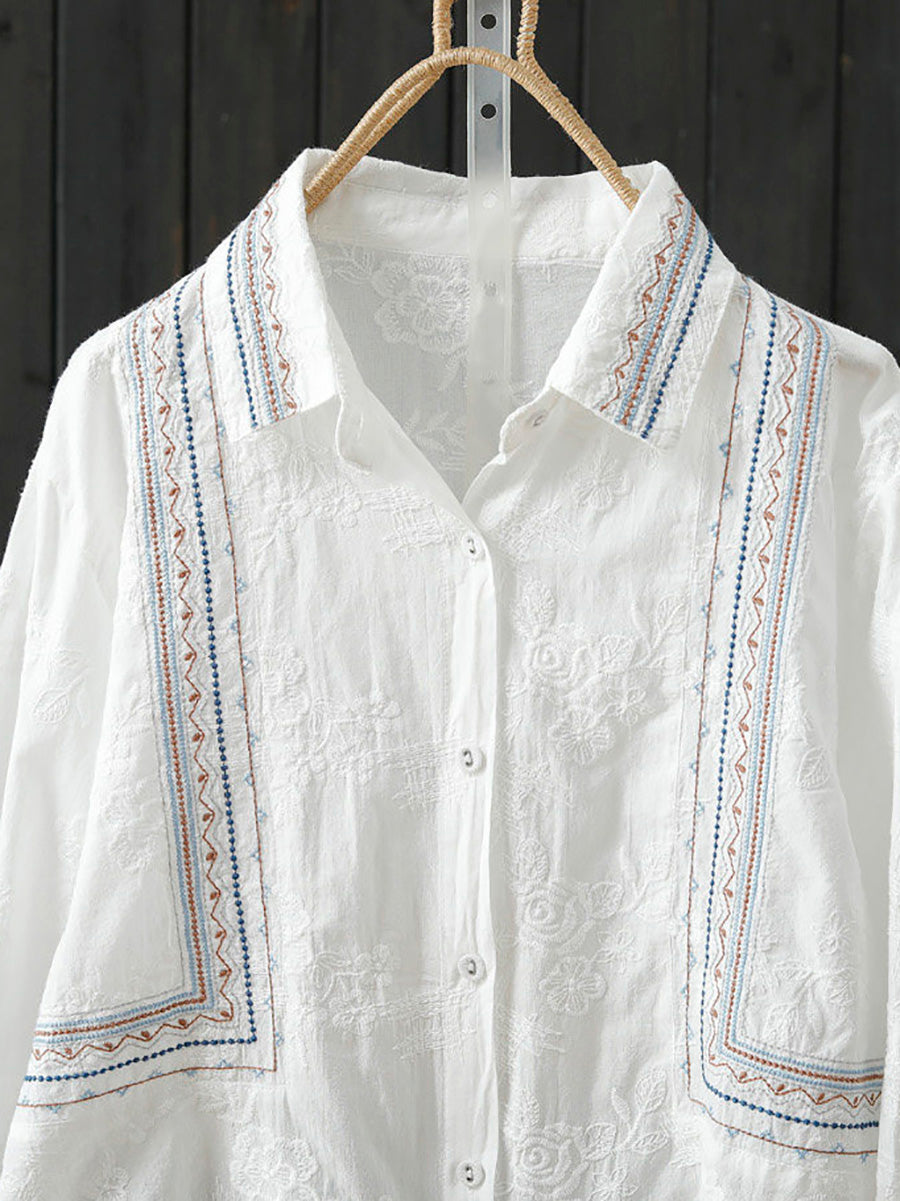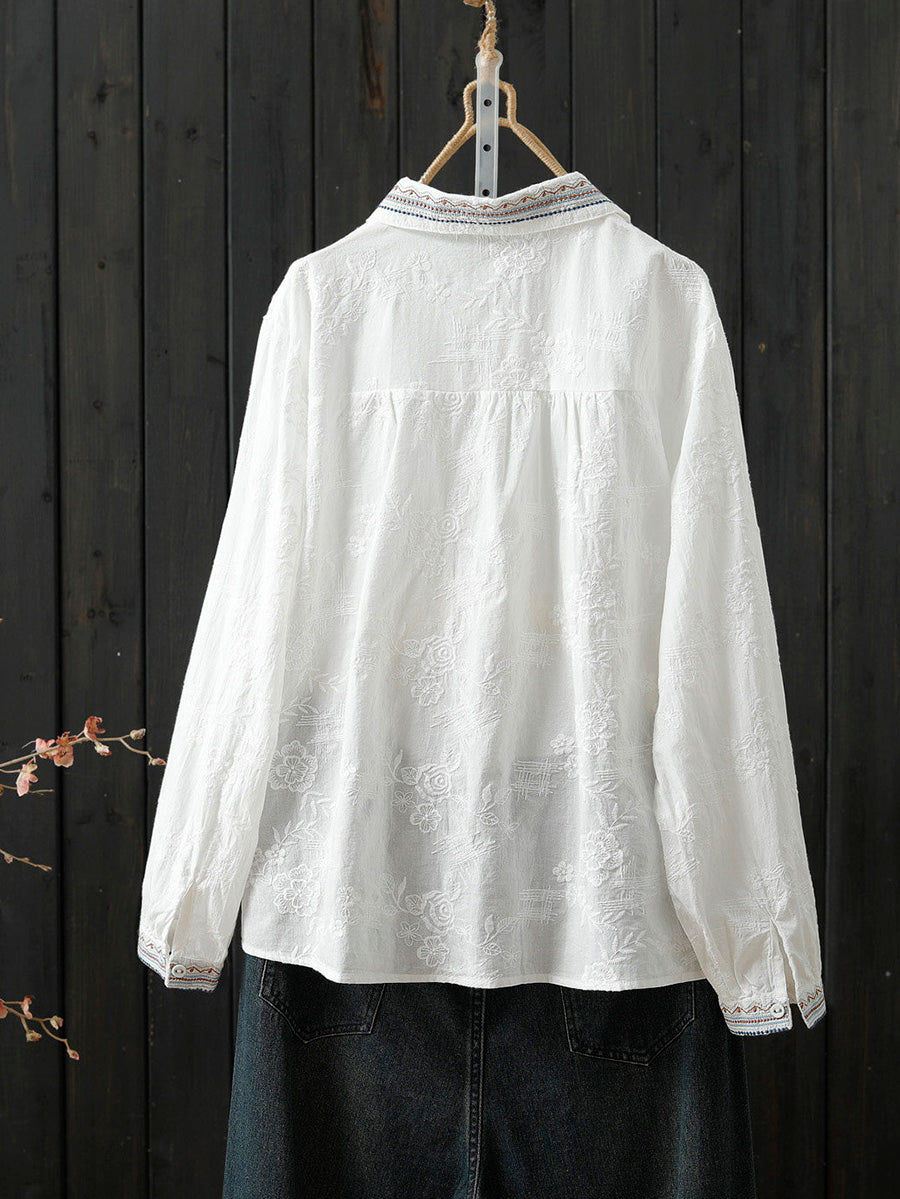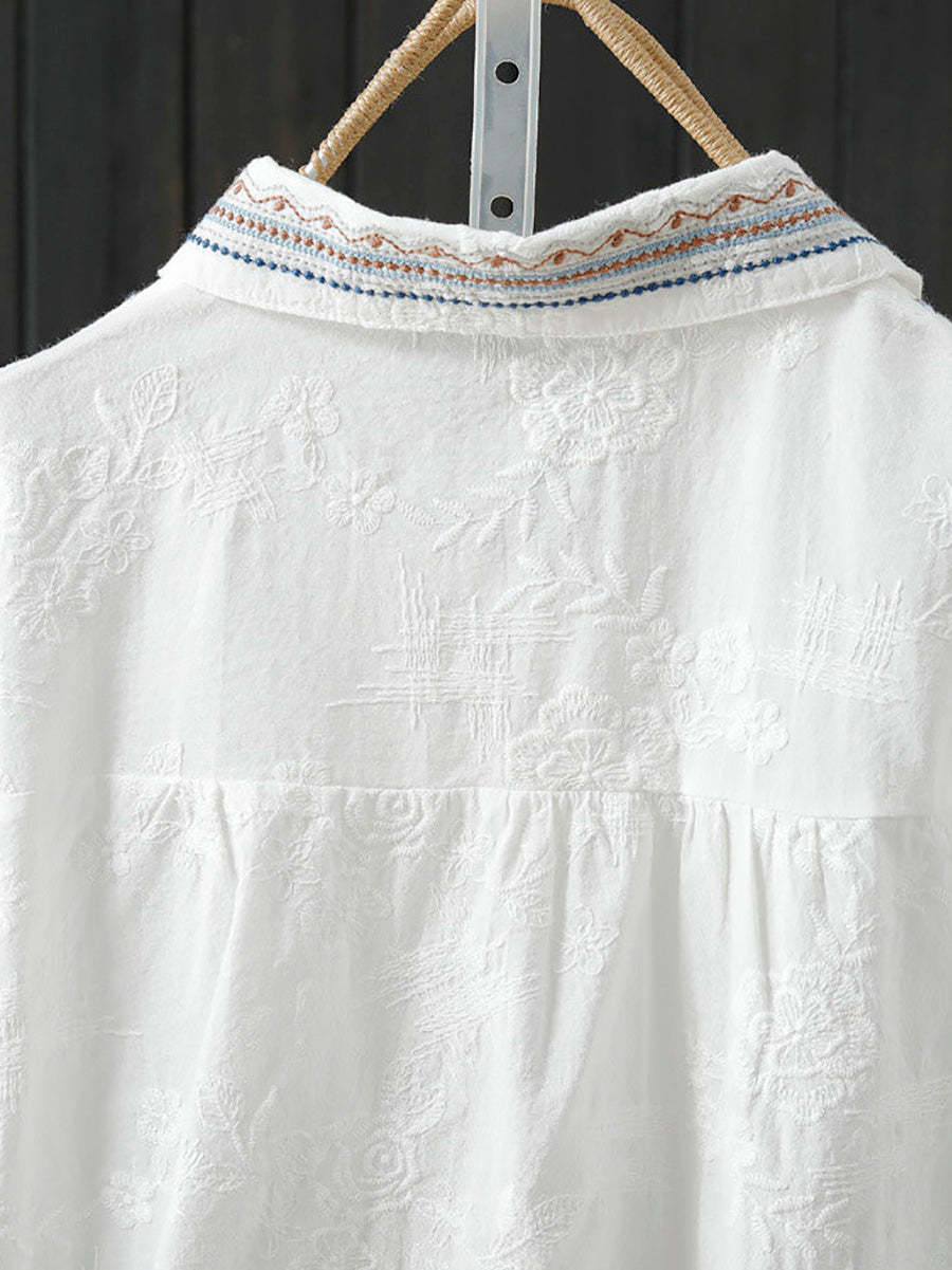 Camisa de mujer 100 % algodón con bordado artístico de primavera